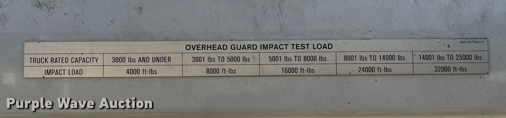 2017 UniCarriers CFS40 forklift. Hours: 4,567 on meter, Serial: CP1F1-9N20945, Unit #: SFS2884. Engine GCT, Displacement: 2.1L, Cylinders: 4, Fuel type: LPG LP bottle: Not included. Transmission Automatic. Operators station OROPS. Features Maximum lift capacity: 3,000 lbs, Maximum lift height: 203", Collapsed mast height: 88", Mast stages: 3, Side shift, Mast tilt, Fork length: 48". Tires Front: 18x6x12 1/8, Rear: 14x5x10, Solid. Notes Warning indicator: Battery warning. Ferguson. Austin, TX 78758
