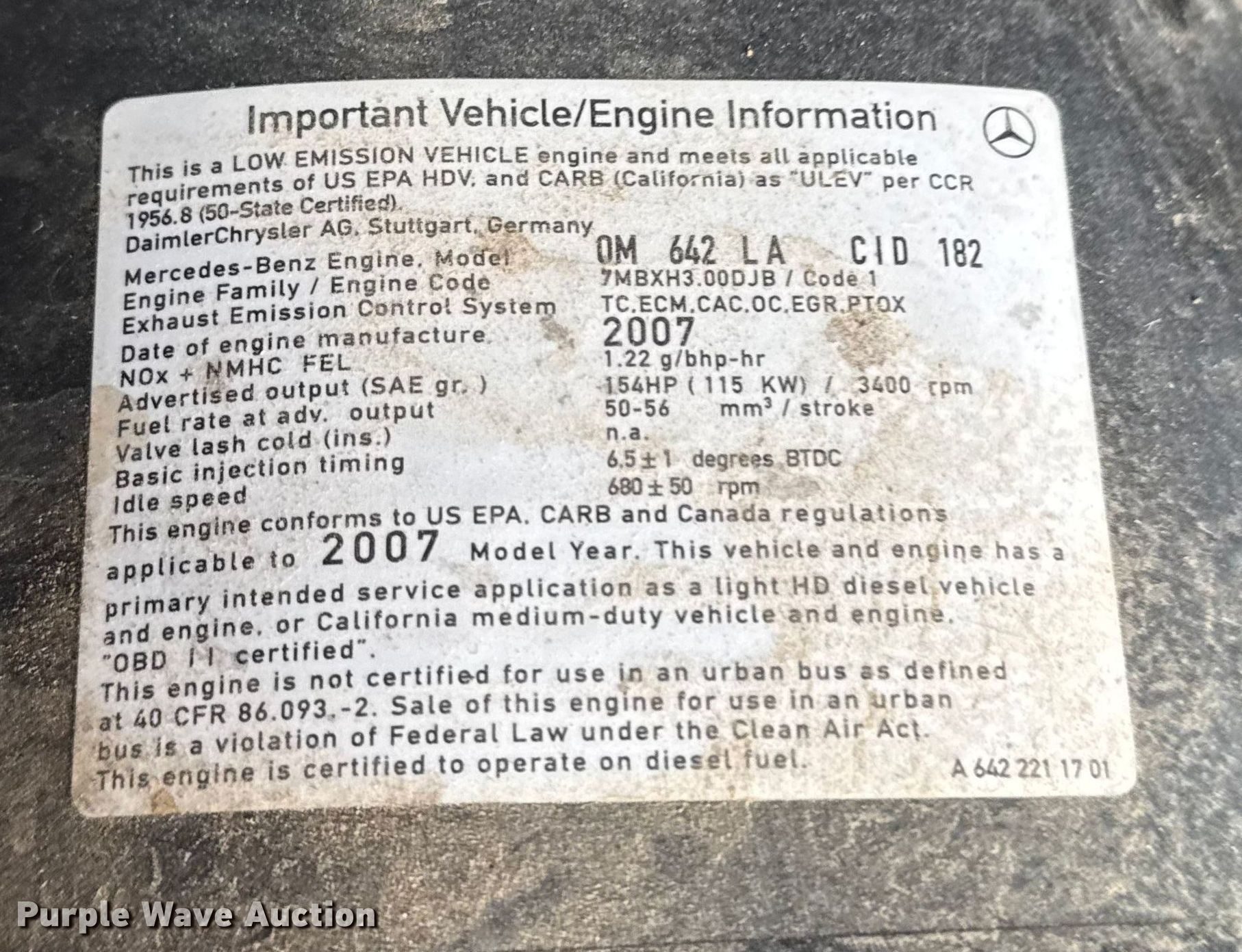 Take a look at this used 2007 Dodge Sprinter 2500 van being sold on February 11th, 2026 in the Wednesday February 11 Vehicles and Equipment Auction made by Dodge. Take a look at all of the item information below or take a look at similar auctions for Pickups and Vans.