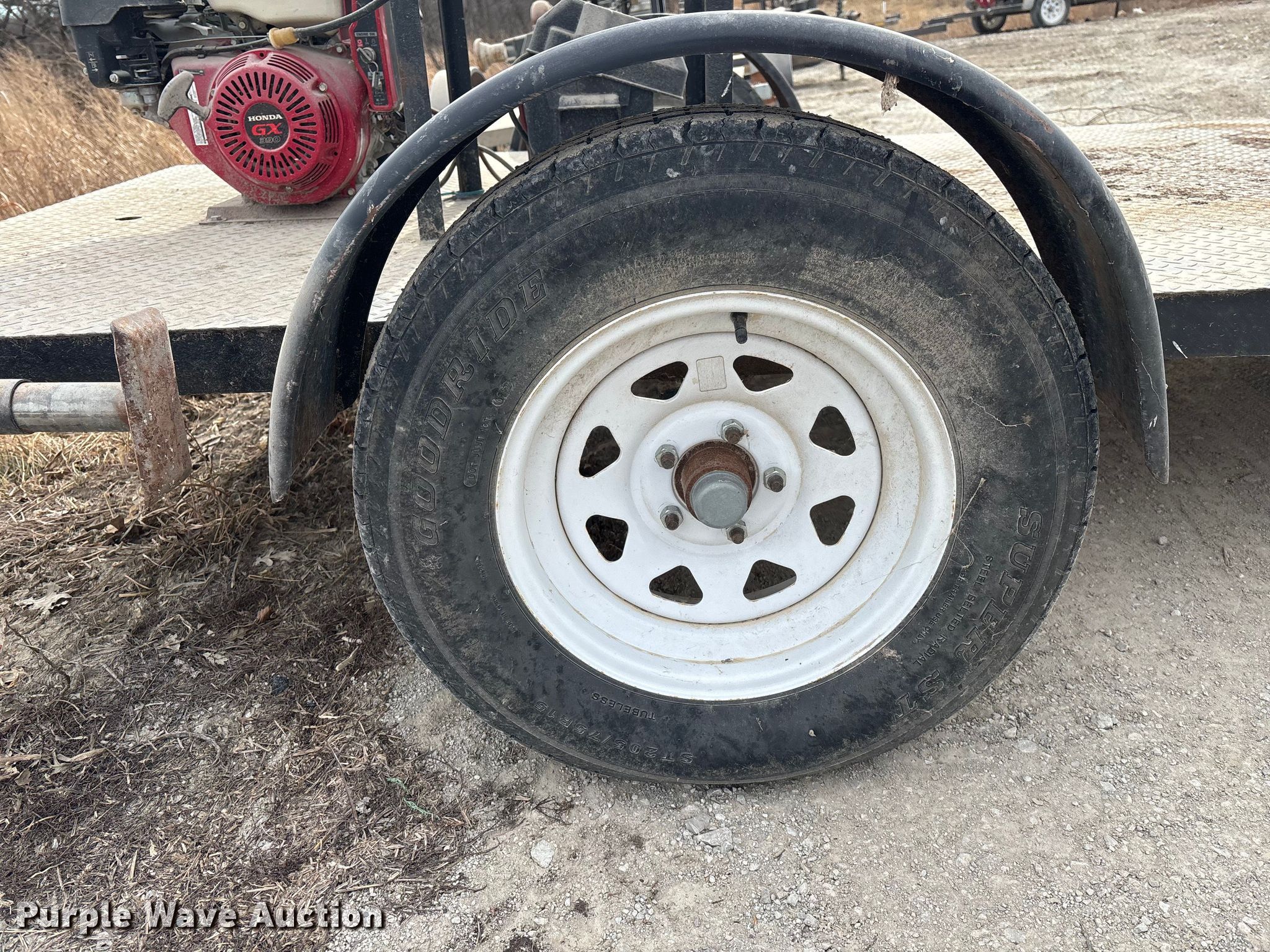 Shop built pump trailer. Dimensions. Overall Length: 177", Width: 84". Engine Honda GX390, Displacement: 389 cc, Cylinders: 1, Fuel type: Gas. Features Franklin Electric FMIG30-13H pump, Serial: 17E19-00023P, Arkal filtration system, Serial: 11060091. Tires Front: 205/75R15. Notes Dead battery, Unknown operating condition. Transfer of ownership documentation will be a bill of sale. ALLENDAN SEED CO. Winterset, IA 50273