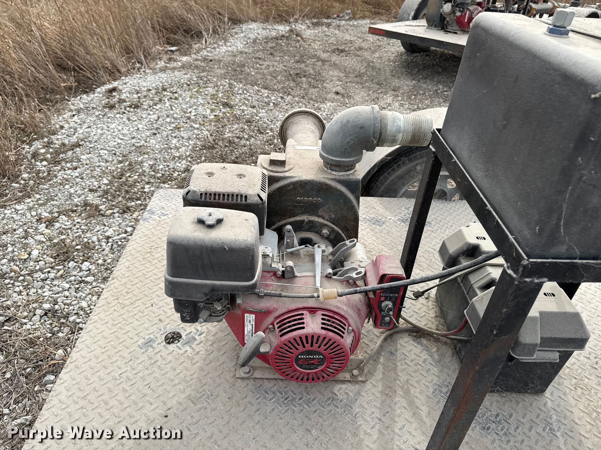 Shop built pump trailer. Dimensions. Overall Length: 176", Width: 84". Engine Honda GX390, Cylinders: 1, Fuel type: Gas. Features Franklin electric pump. Tires Size: 205/75R15. Notes Dead battery, Unknown operating condition. Transfer of ownership documentation will be a bill of sale. ALLENDAN SEED CO. Winterset, IA 50273