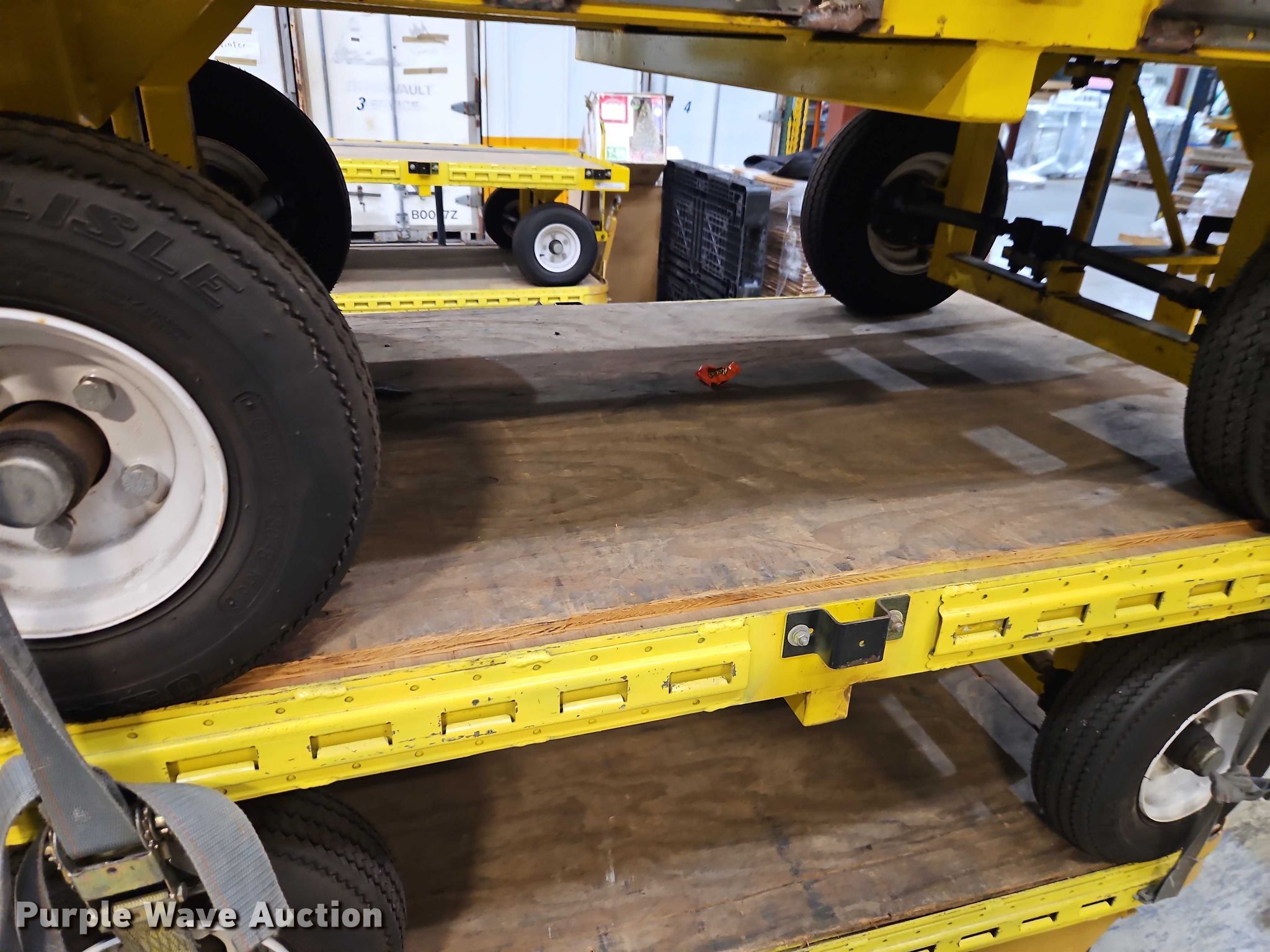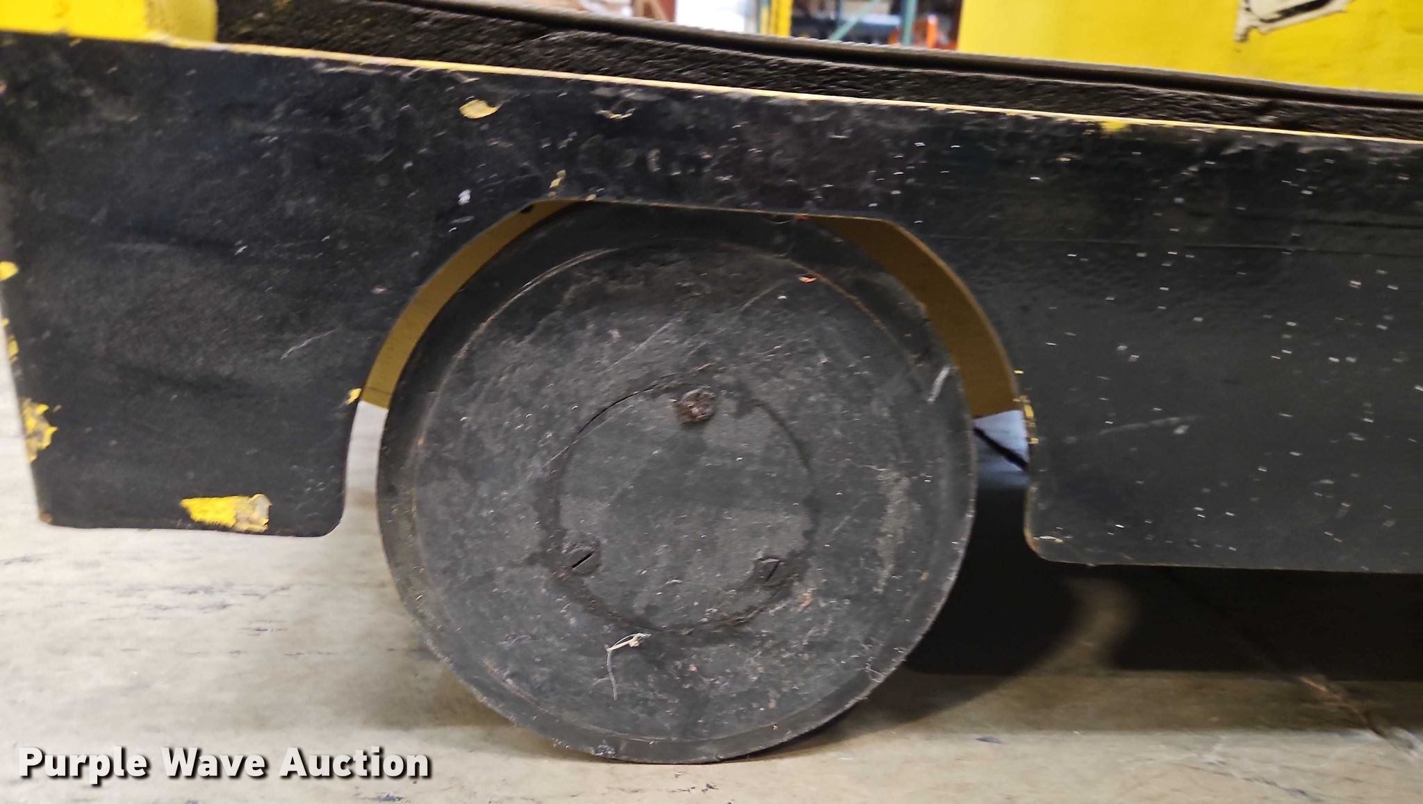 Hyster T5Z tow tractor. Hours: 11,375 on meter, Serial: A476N01628B, Unit #: 4. Dimensions Overall Length: 60", Width: 33", Height: 54". Electric Motor Volts: 24. Transmission Hydrostatic. Features (3) wagons Size: 77" x 43". Fry-Wagner Moving & Storage. Lenexa, KS 66219