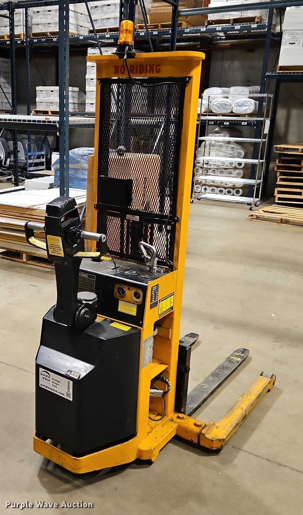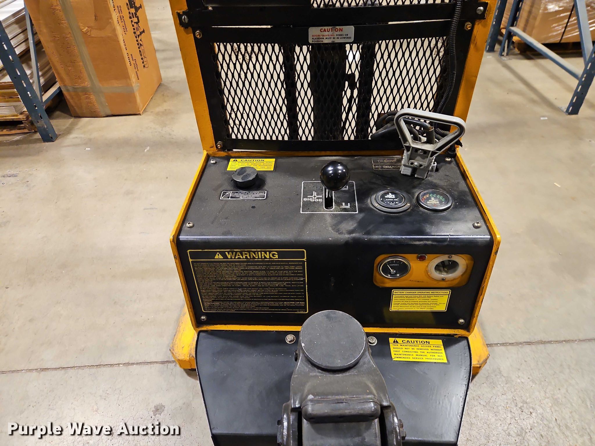Purple Wave is selling a used Warehouse Forklift in Kansas. This item is a Big Joe PDI 24-A05 pallet jack with the following: Hours: 2,635 on meter, Serial: 346105