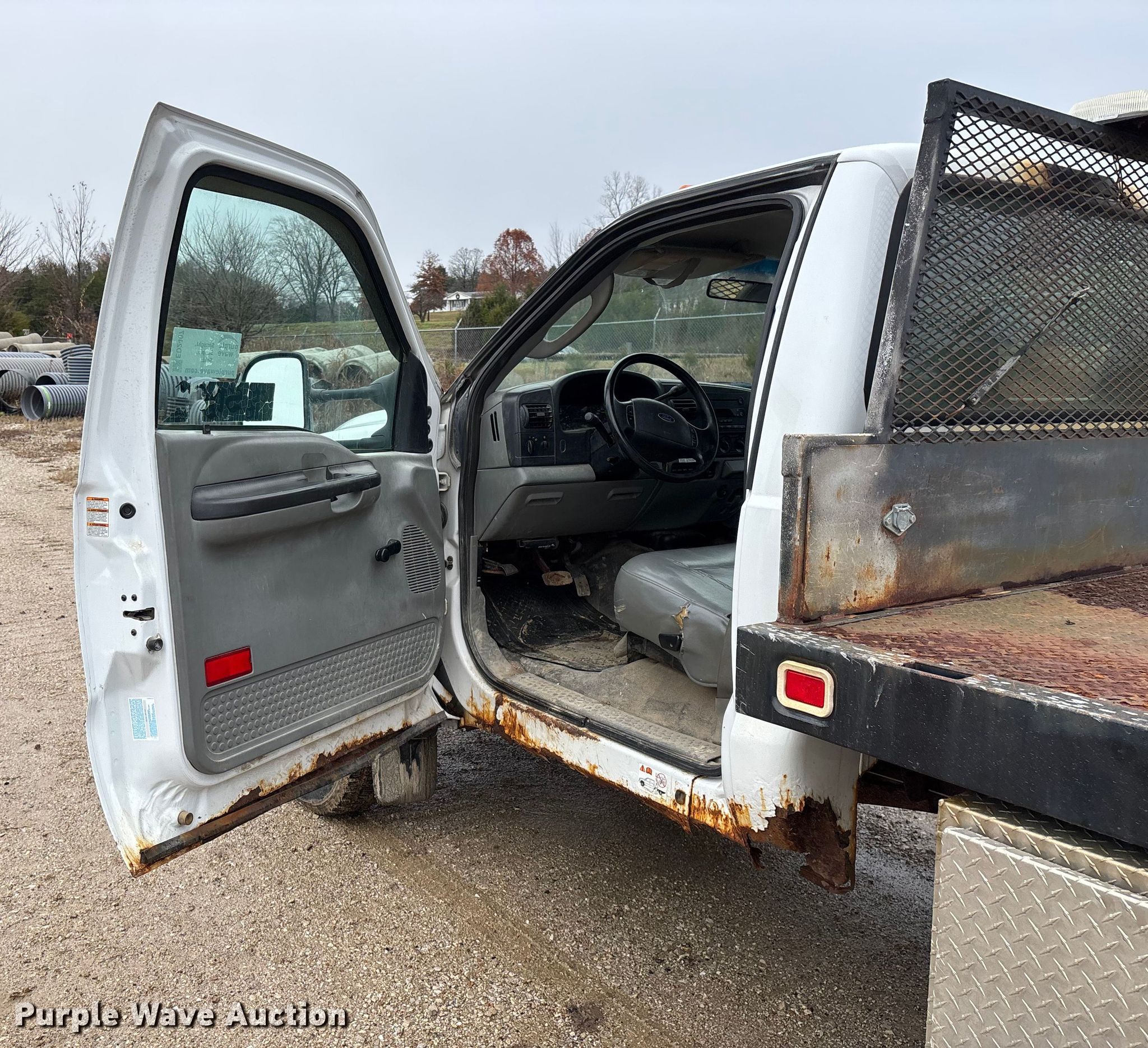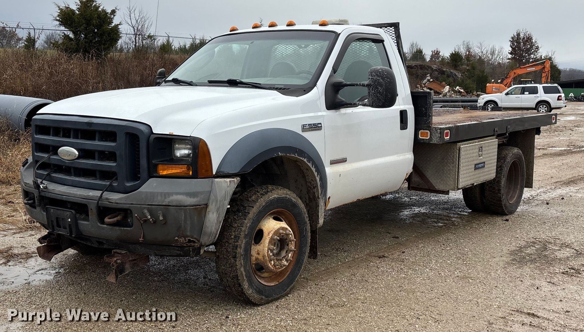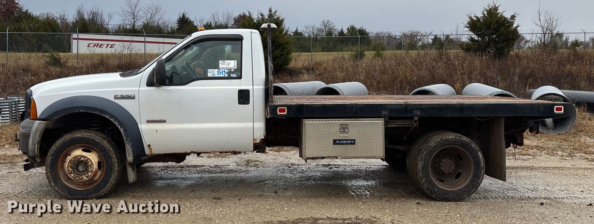 This 2006 Ford F550 XL Super Duty flatbed truck will sell to the highest bidder regardless of price.