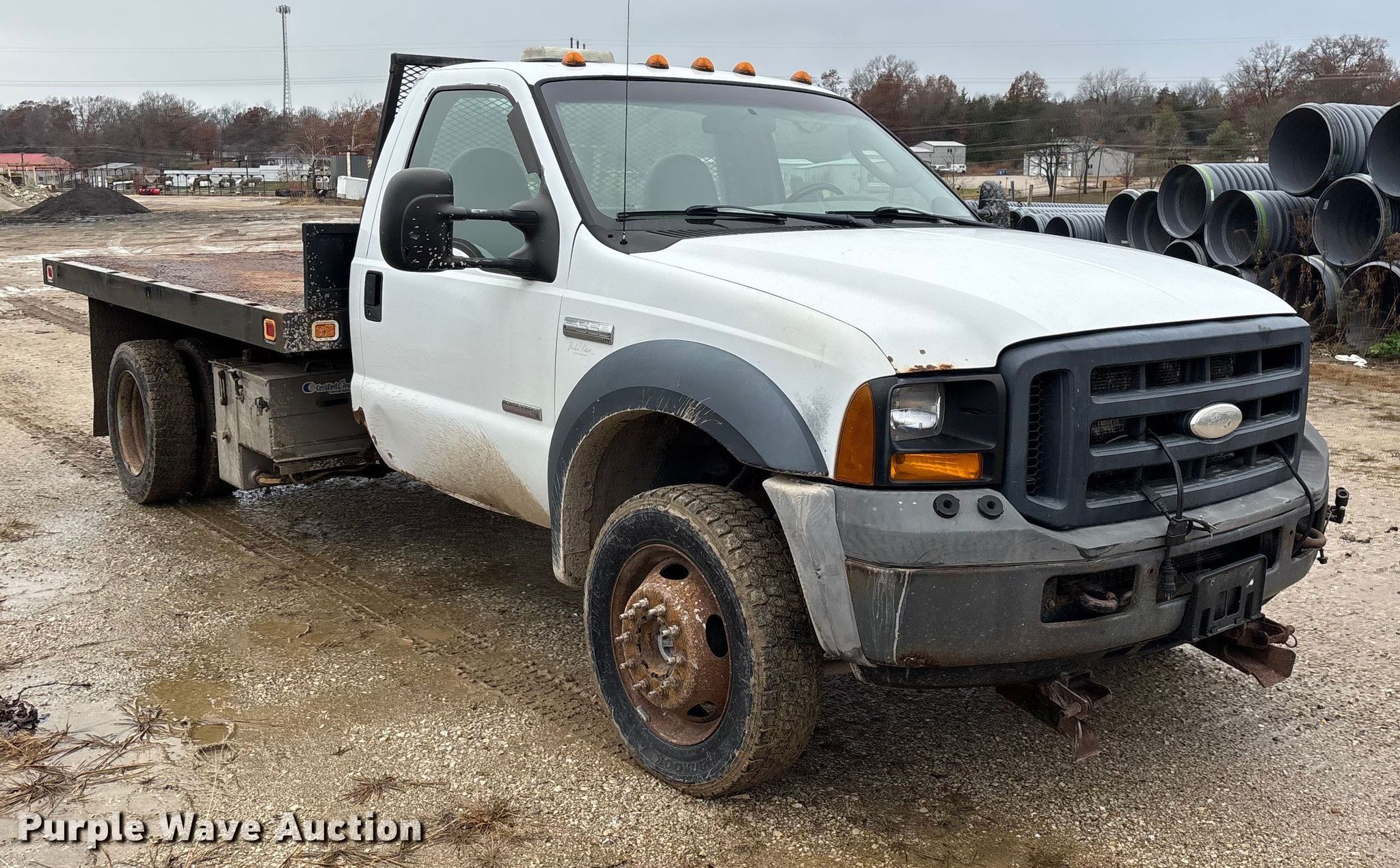 Purple Wave is selling a used Flat Bed Truck in Missouri. This item is a 2006 Ford F550 XL Super Duty flatbed truck with the following: Miles: 155,525 on odometer, Hours: 7,170 on meter, VIN: 1FDAF57P16EB35286
