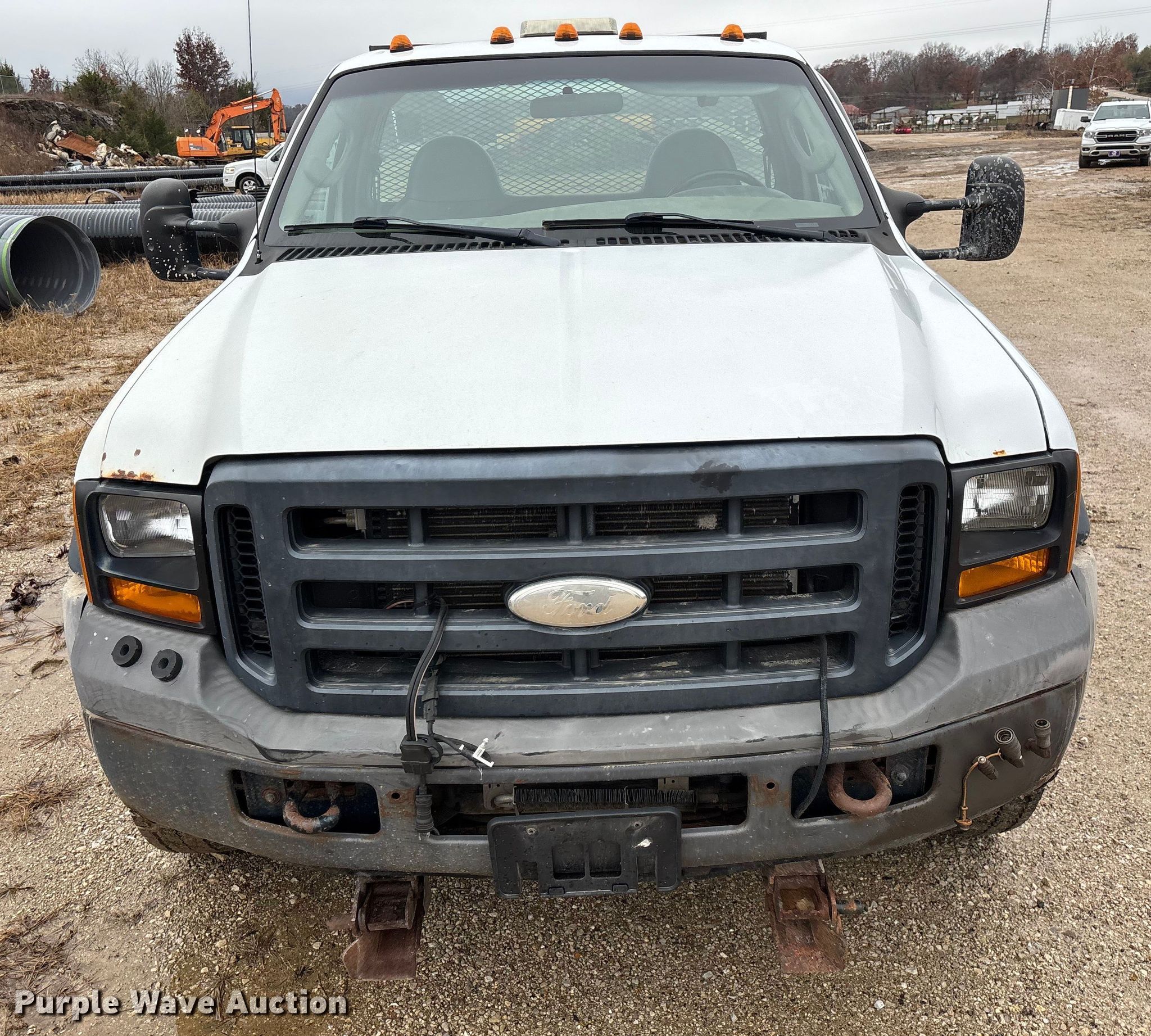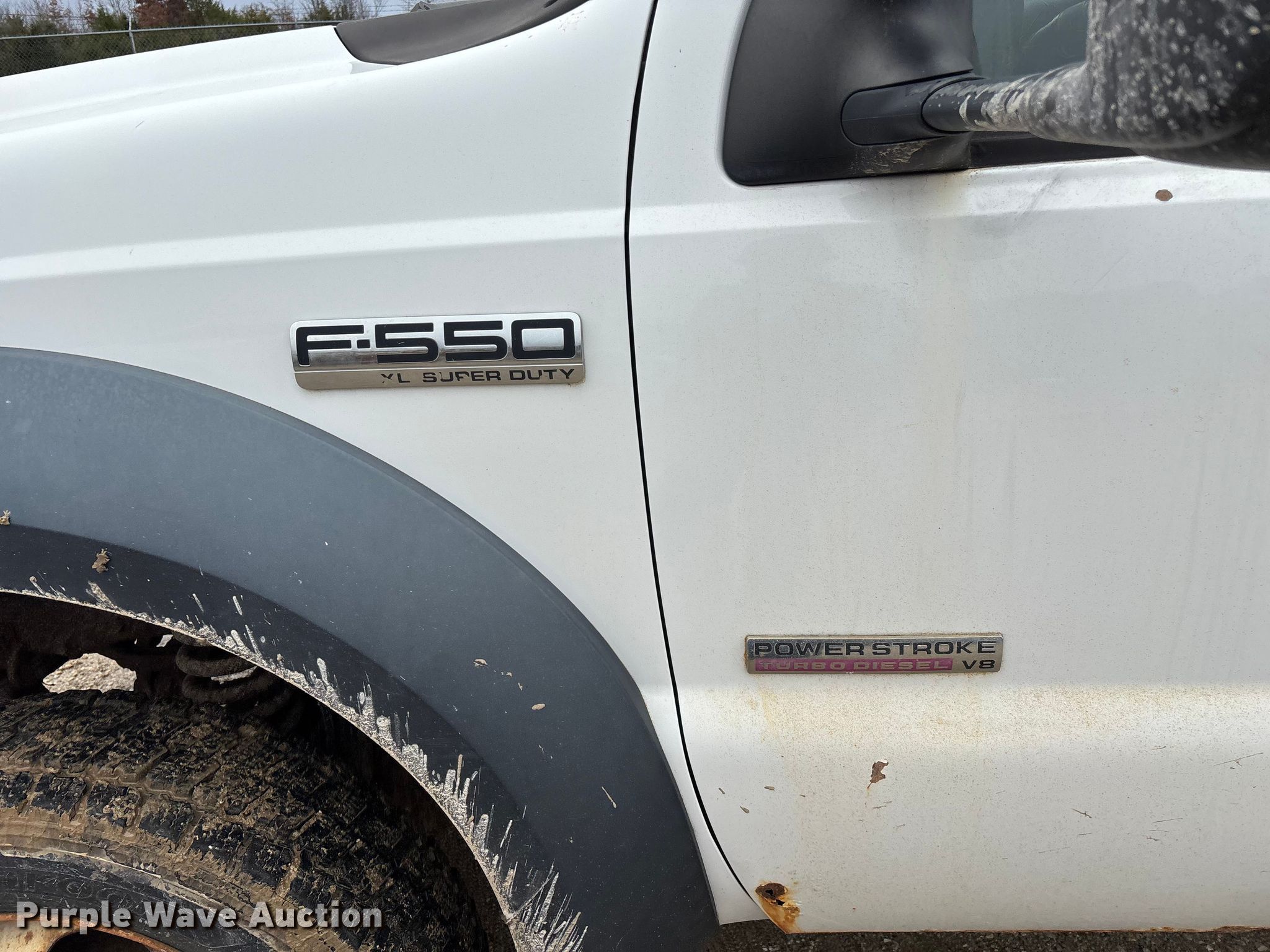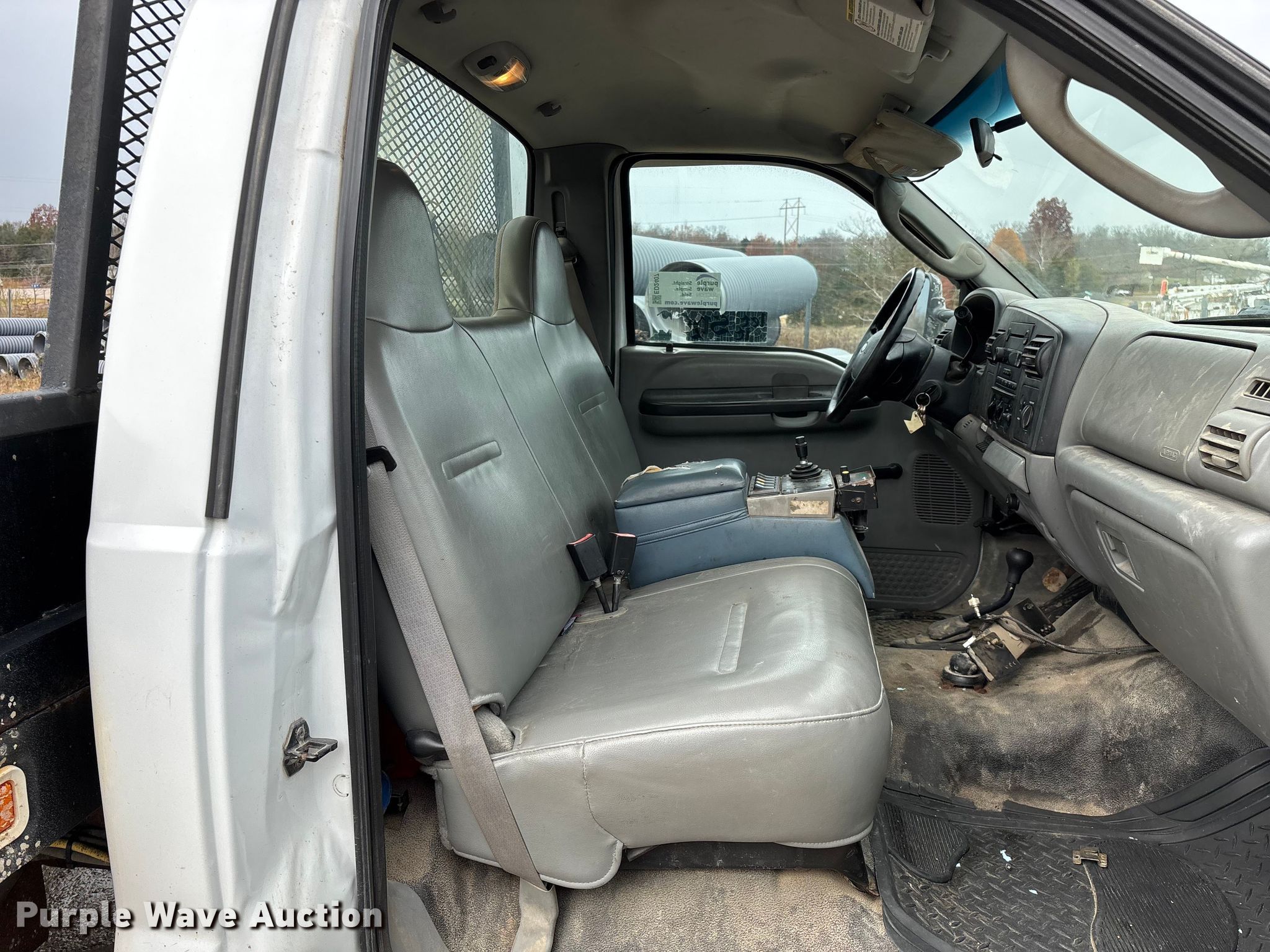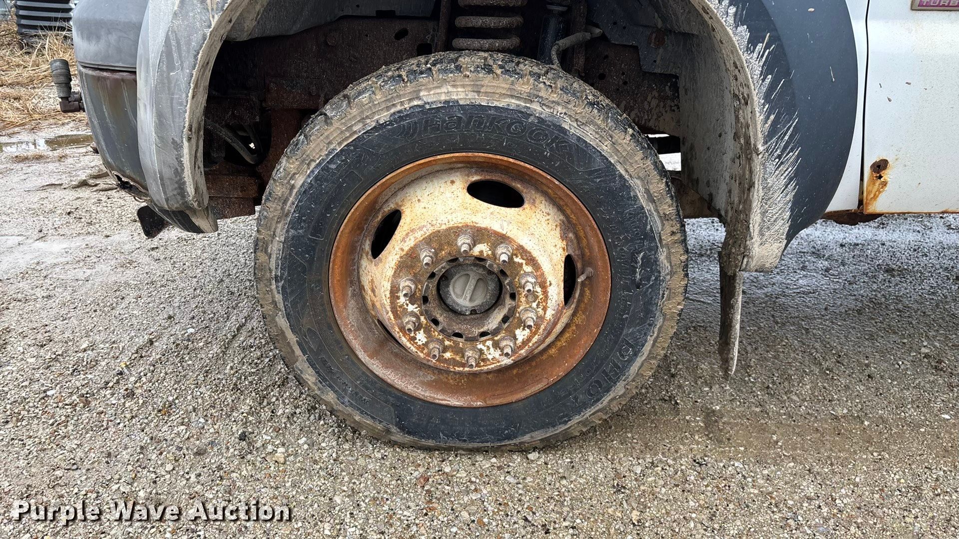 2006 Ford F550 XL Super Duty flatbed truck. Miles: 155,525 on odometer, Hours: 7,170 on meter, VIN: 1FDAF57P16EB35286. Engine Displacement: 6.0L, Cylinders: 8, Fuel type: Diesel. Transmission Automatic. Chassis Four wheel drive, Axles: Single, Suspension: Spring, Brakes: Hydraulic, GVWR: 19,000 lbs, Wheelbase: 165". Interior AC, Heat, Cruise control, Auxiliary controls, Brake controller. Features Bed Flatbed, Length: 11' 3", Width: 96". Tires Size: 225/70R19.5. Notes Dash warning indicator: Water in fuel, Windshield chipped or cracked, Jump start required during on-site data collection, Rust damage, Possible EGR issues, may be disconnected, Hydraulic fluid tank not included, Contents not included. Missouri title. Title distribution may be delayed up to 14 days from verification of funds. Jefferson City, MO 65109