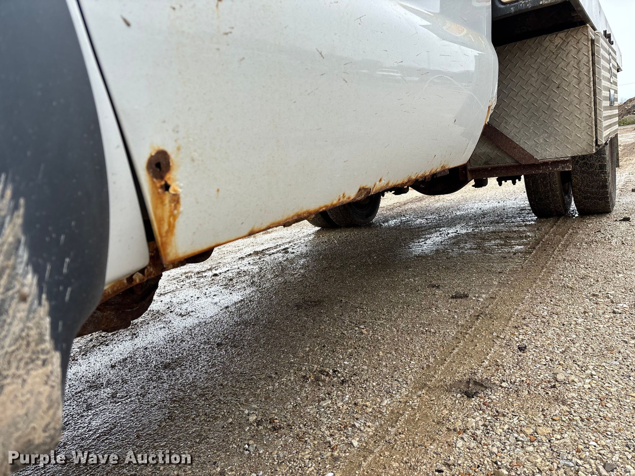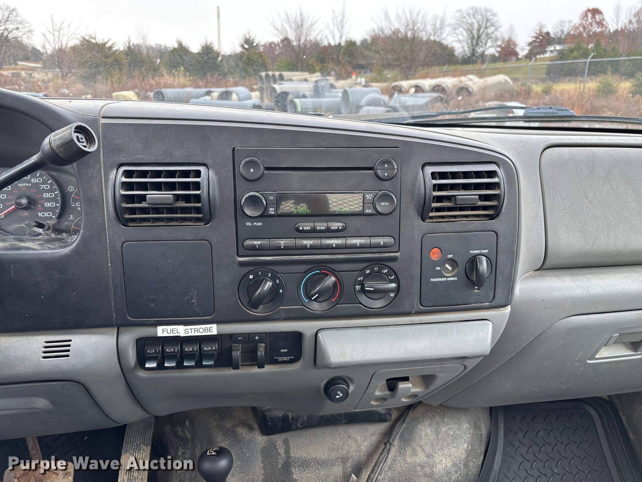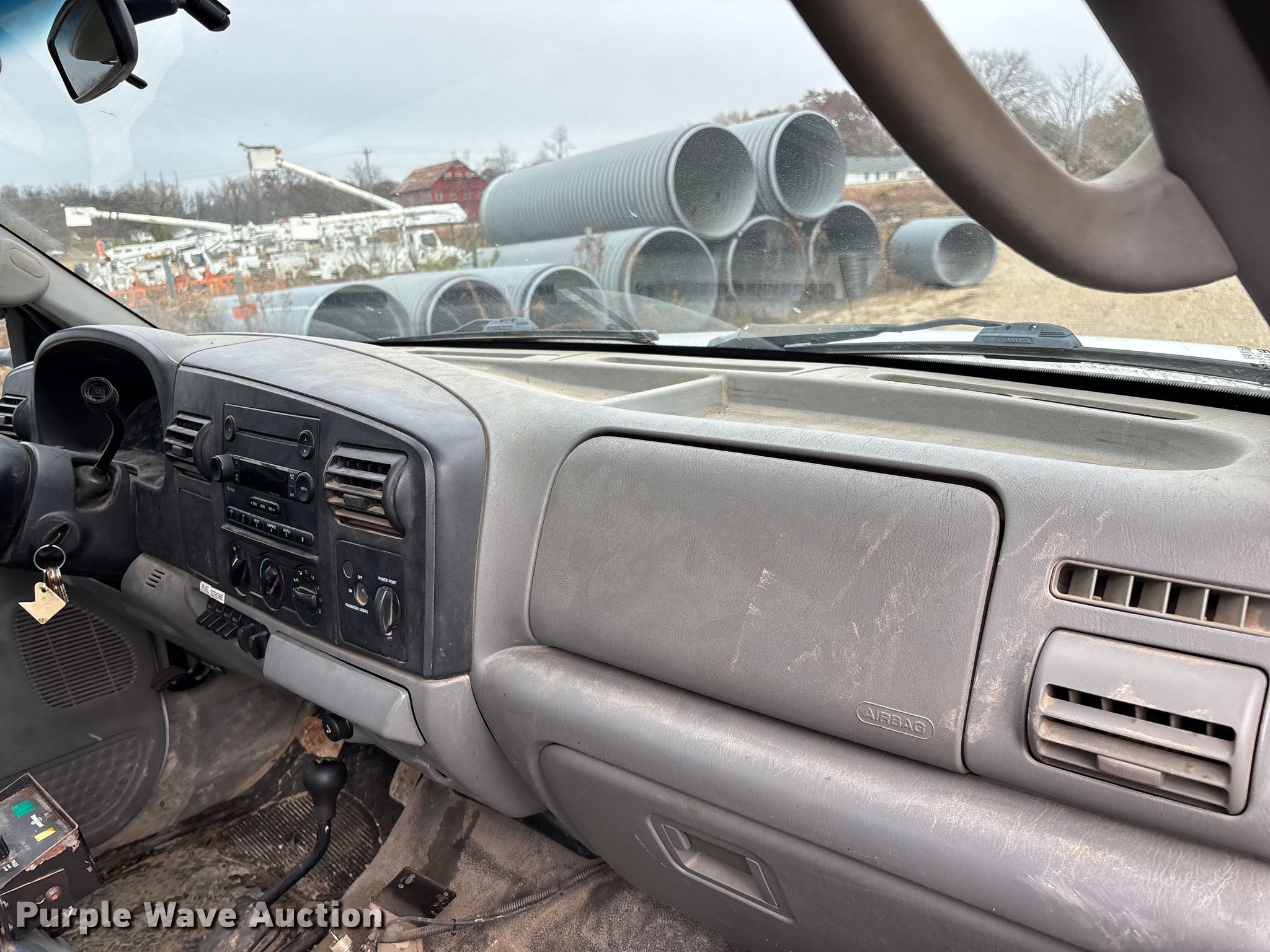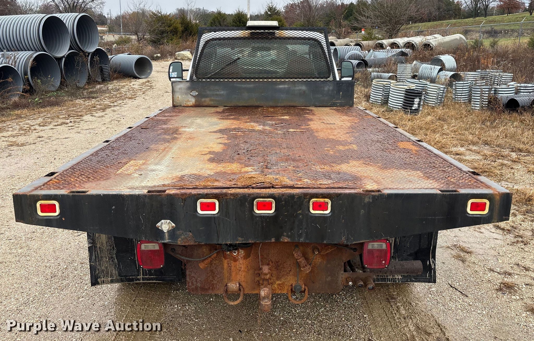 2006 Ford F550 XL Super Duty flatbed truck. Miles: 155,525 on odometer, Hours: 7,170 on meter, VIN: 1FDAF57P16EB35286. Engine Displacement: 6.0L, Cylinders: 8, Fuel type: Diesel. Transmission Automatic. Chassis Four wheel drive, Axles: Single, Suspension: Spring, Brakes: Hydraulic, GVWR: 19,000 lbs, Wheelbase: 165". Interior AC, Heat, Cruise control, Auxiliary controls, Brake controller. Features Bed Flatbed, Length: 11' 3", Width: 96". Tires Size: 225/70R19.5. Notes Dash warning indicator: Water in fuel, Windshield chipped or cracked, Jump start required during on-site data collection, Rust damage, Possible EGR issues, may be disconnected, Hydraulic fluid tank not included, Contents not included. Missouri title. Title distribution may be delayed up to 14 days from verification of funds. Jefferson City, MO 65109