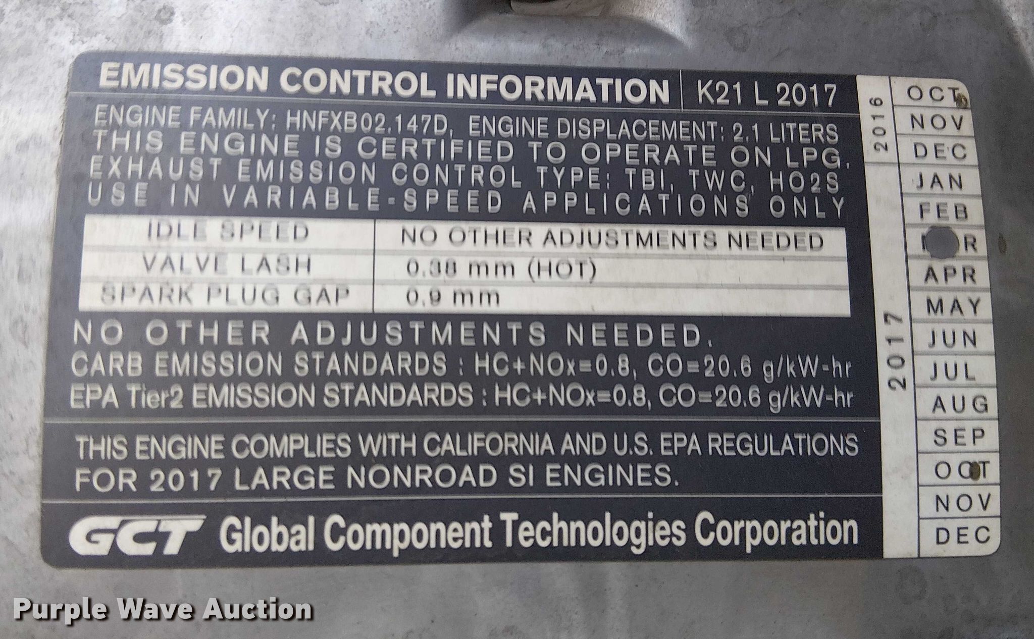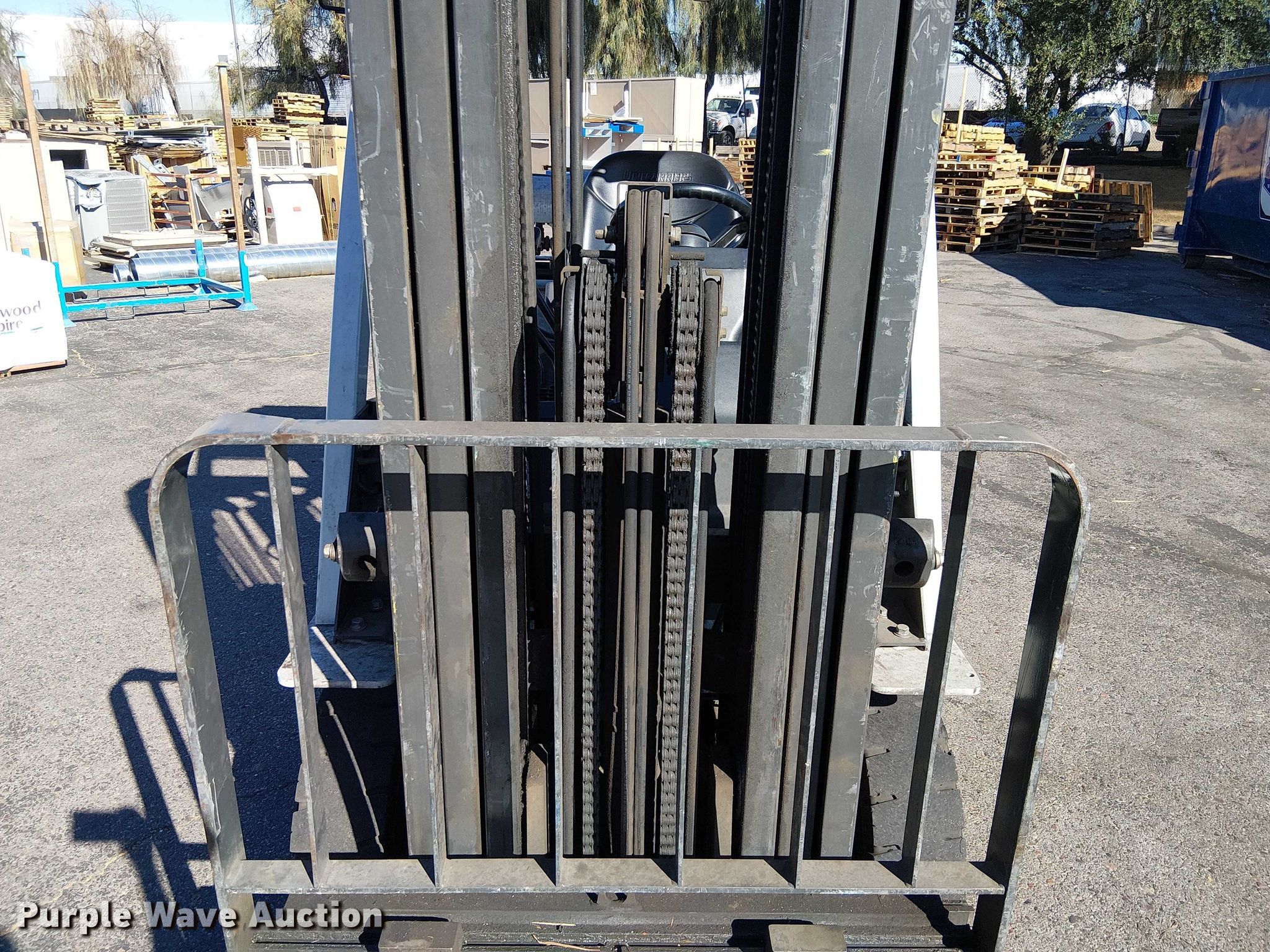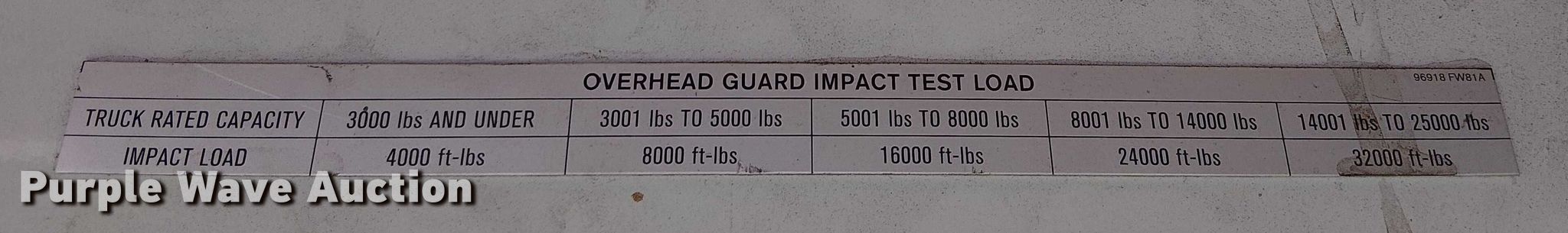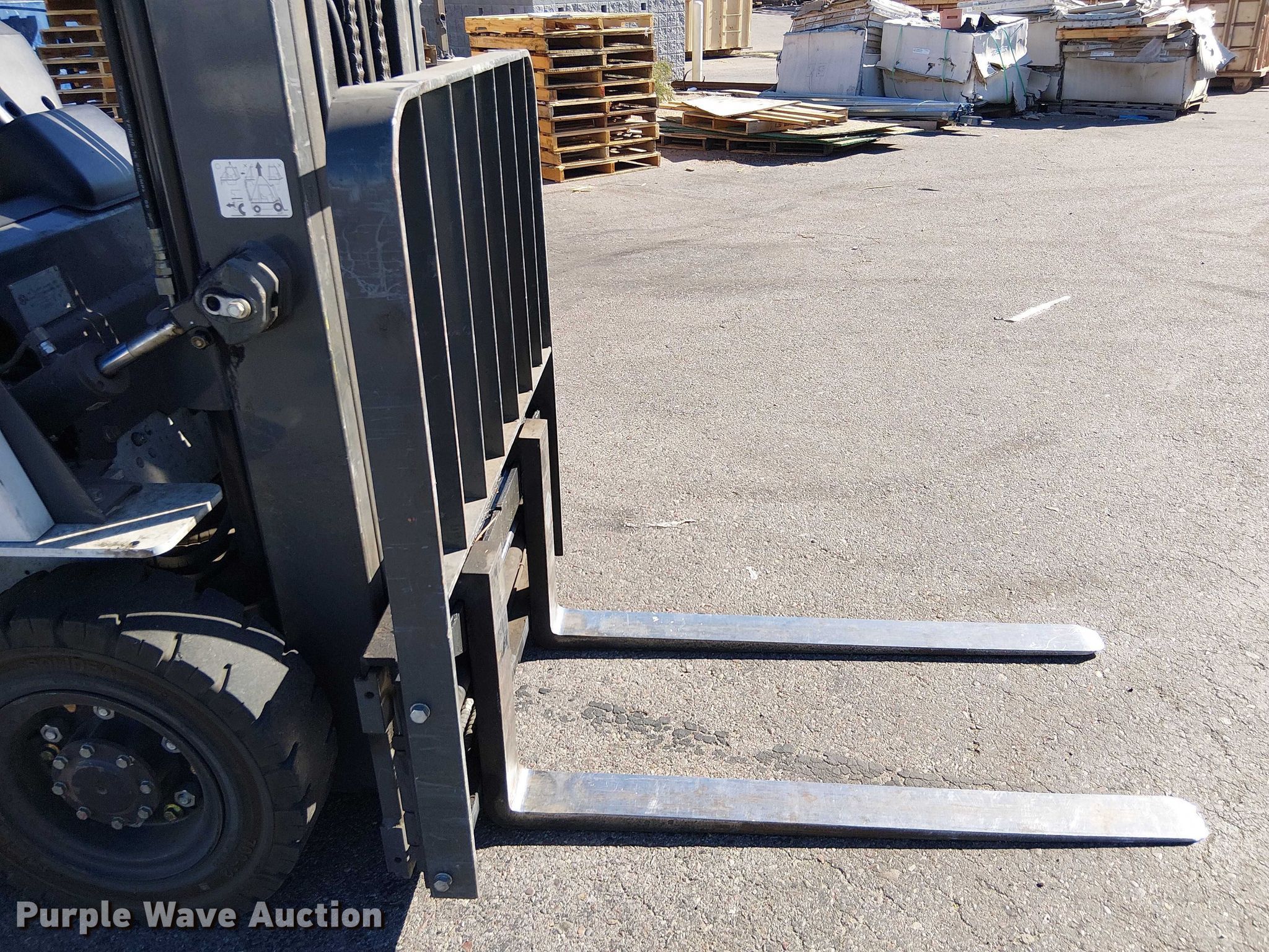2017 UniCarriers PF50 forklift. Hours: 3,500 on meter, Miles or hours may vary, unit still in use, Serial: P1F2-9H22068, Unit #: SFS2889. Engine GCT K21 L, Displacement: 2.1L, Cylinders: 4, Fuel type: LPG LP bottle: Not included. Transmission Automatic. Operators station OROPS, Canopy. Features Maximum lift capacity: 3,325 lbs, Maximum lift height: 203", Collapsed mast height: 88", Mast stages: 3, Side shift, Mast tilt, Fork positioner, Fork length: 48". Tires Front: 7.00-12, Rear: 6.00-9, Solid. Notes Warning indicator: Master warning. Ferguson. Phoenix, AZ 85043
