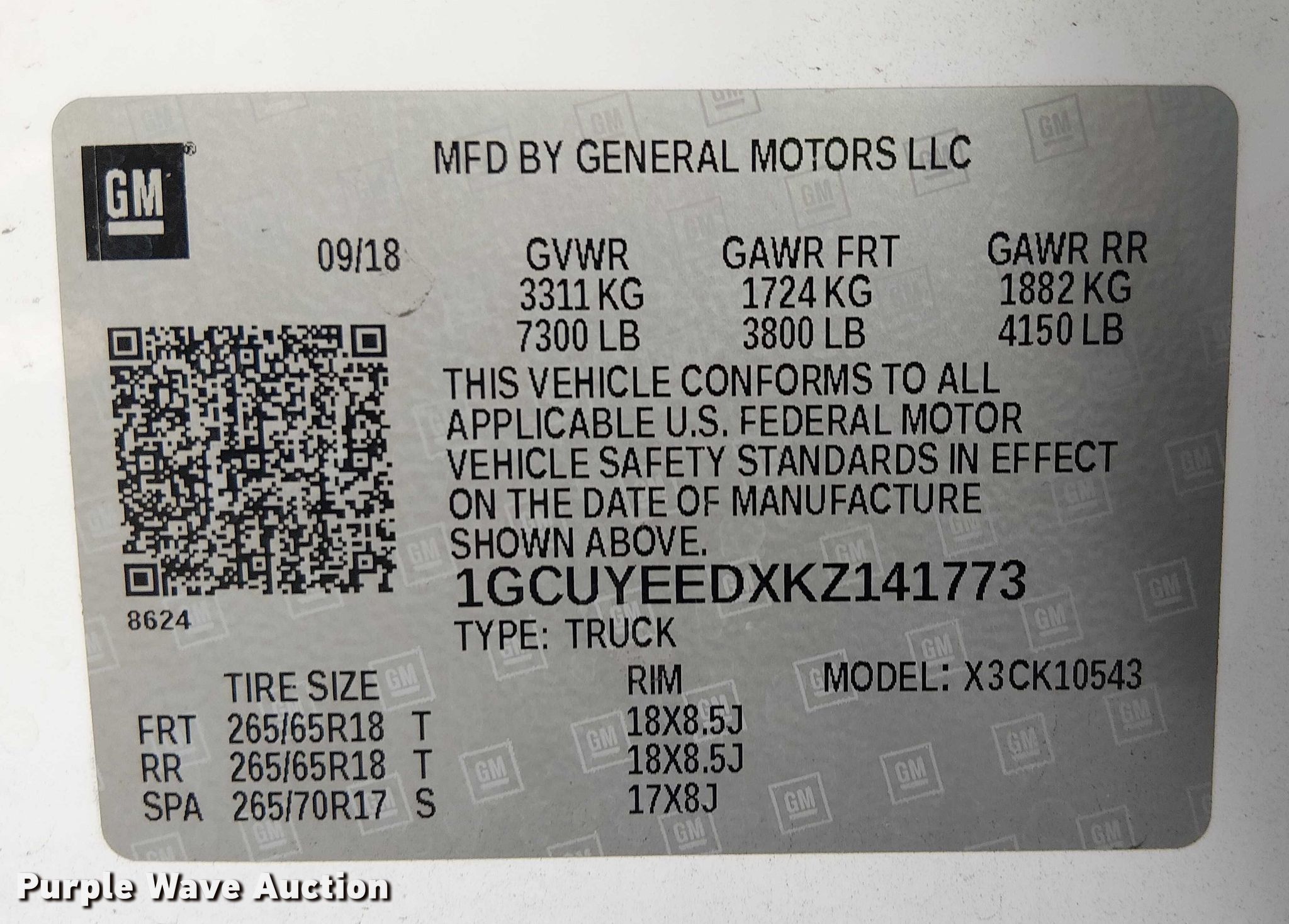 Purple Wave is selling a used 1/2 Ton Pickup or Van in Arizona. This item is a 2019 Chevrolet Silverado 1500 Crew Cab pickup truck with the following: Miles: 121,531 on odometer, VIN: 1GCUYEEDXKZ141773, Unit #: PT621