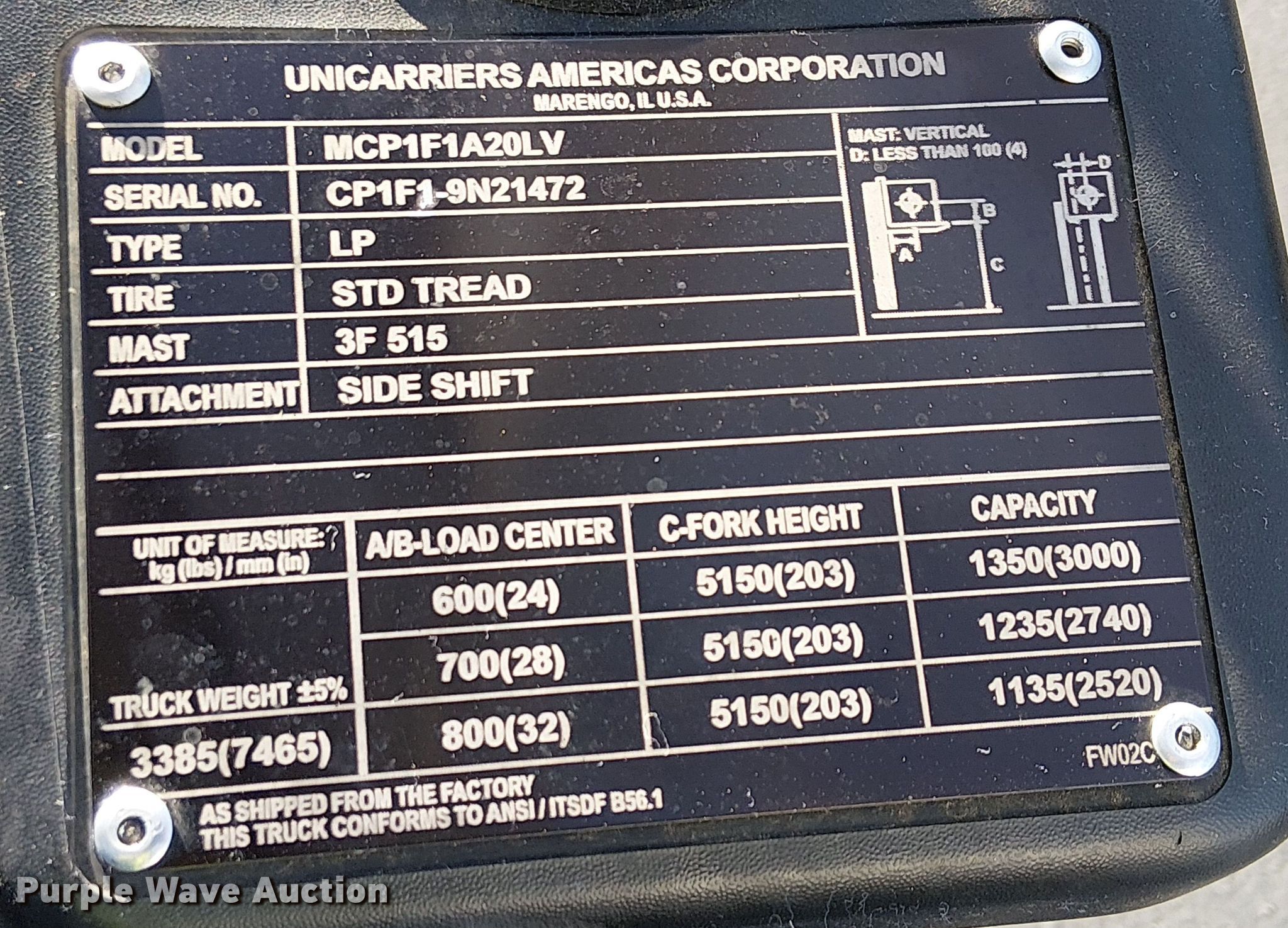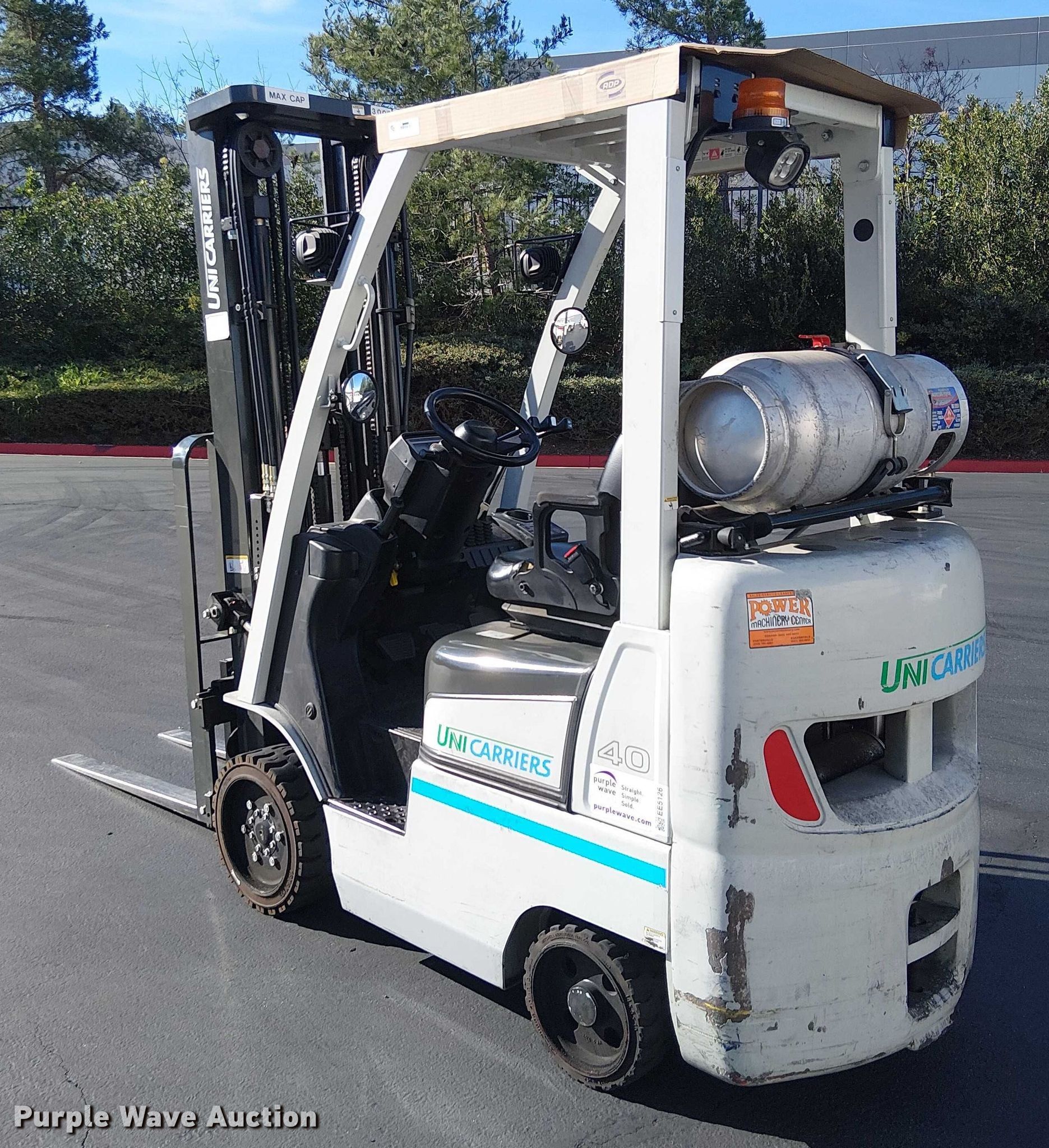 Purple Wave is selling a used Cushion Tire or Pneumatic Forklift in California. This item is a 2017 UniCarriers CFS40 forklift with the following: Hours: 3,562 on meter, Miles or hours may vary, unit still in use, Serial: CP1F1-9N21472, Unit #: SFS2814