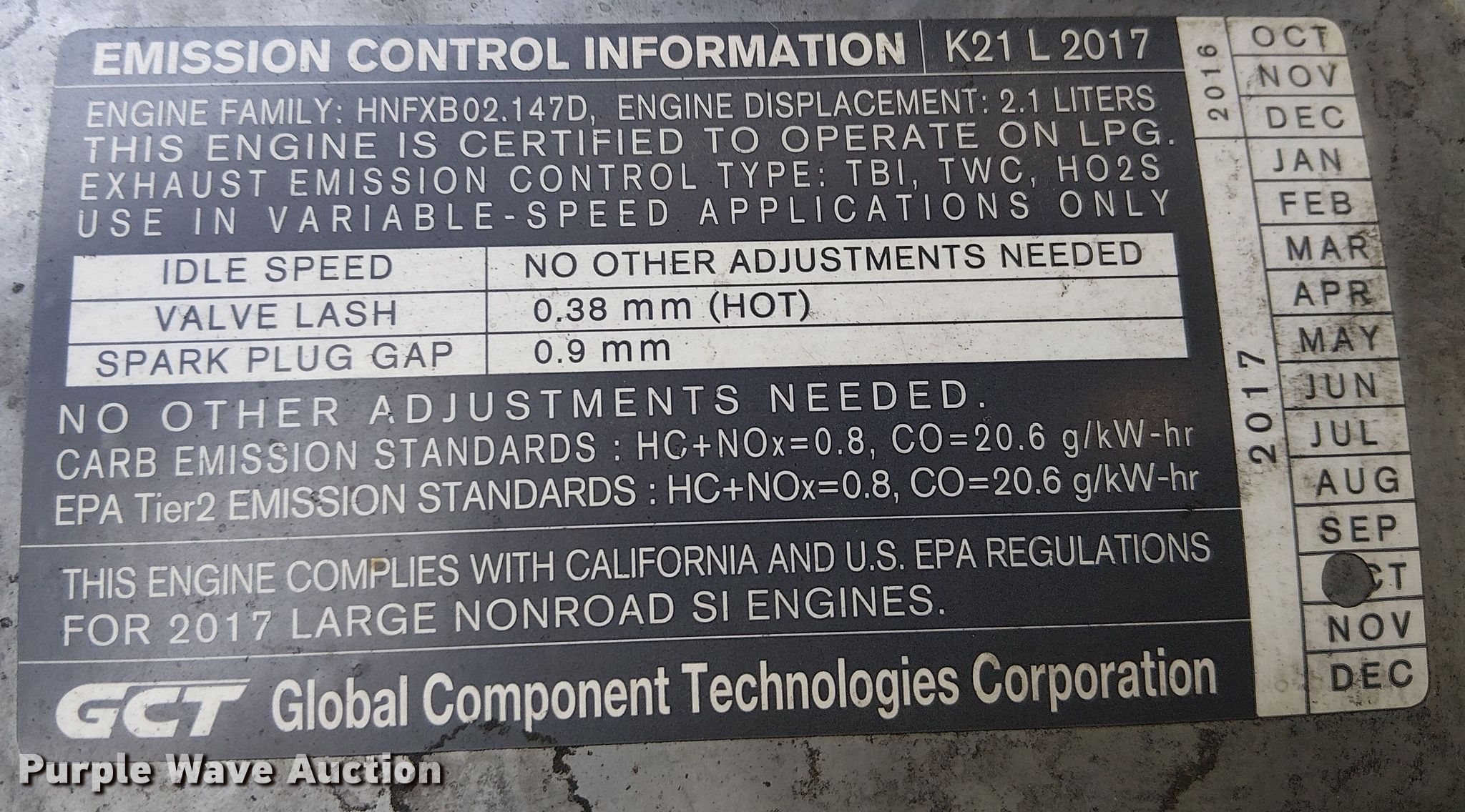 2017 UniCarriers CFS40 forklift. Hours: 3,562 on meter, Miles or hours may vary, unit still in use, Serial: CP1F1-9N21472, Unit #: SFS2814. Engine GCT K21L, Displacement: 2.1L, Cylinders: 4, Fuel type: LPG LP bottle: Not included. Transmission Automatic. Operators station OROPS. Features Maximum lift capacity: 3,000 lbs, Maximum lift height: 203", Collapsed mast height: 88", Mast stages: 3, Side shift, Mast tilt, Fork length: 48". Tires Front: 18X6x12 1/8, Rear: 14x5x10, Solid. Notes Warning indicator: Master warning. Ferguson. Thousand Oaks, CA 91320