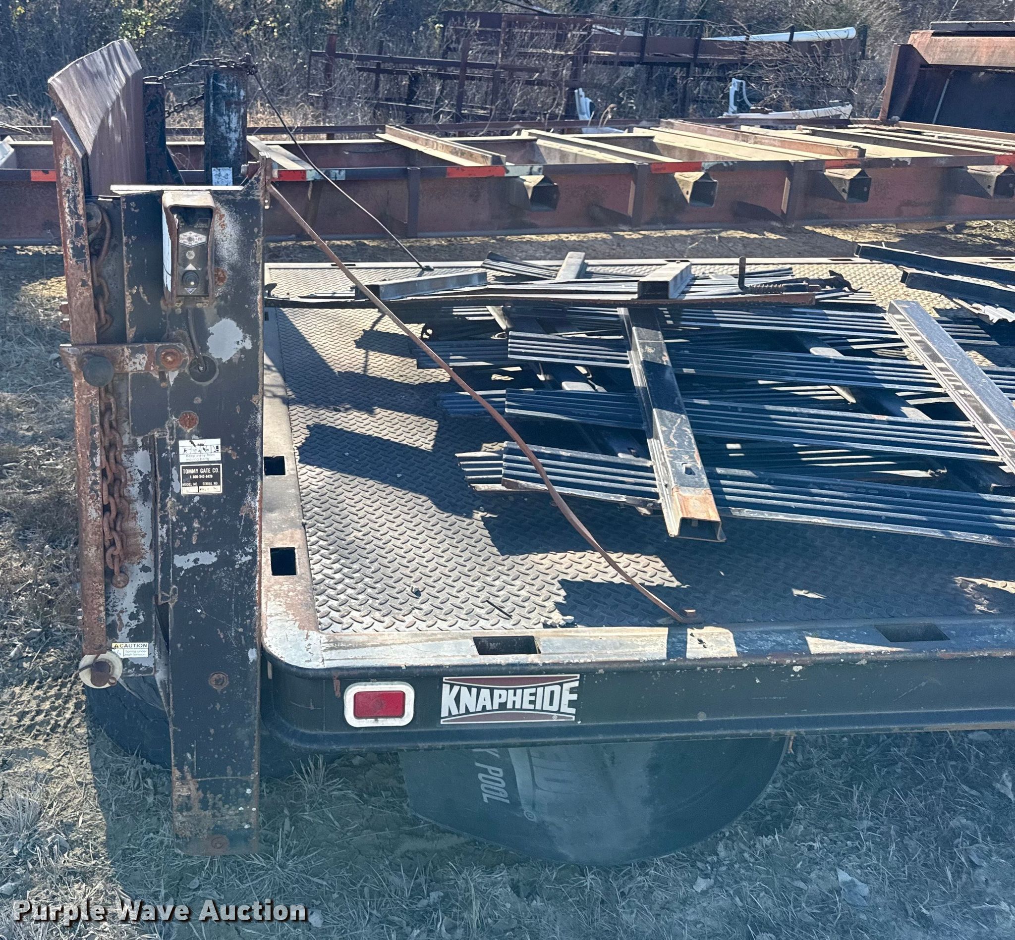 Purple Wave is selling a used Truck Part and Attach. in Kansas. This item is a Knaphiede flatbed with the following: Length: 12', Width: 96", Tommy lift end gate