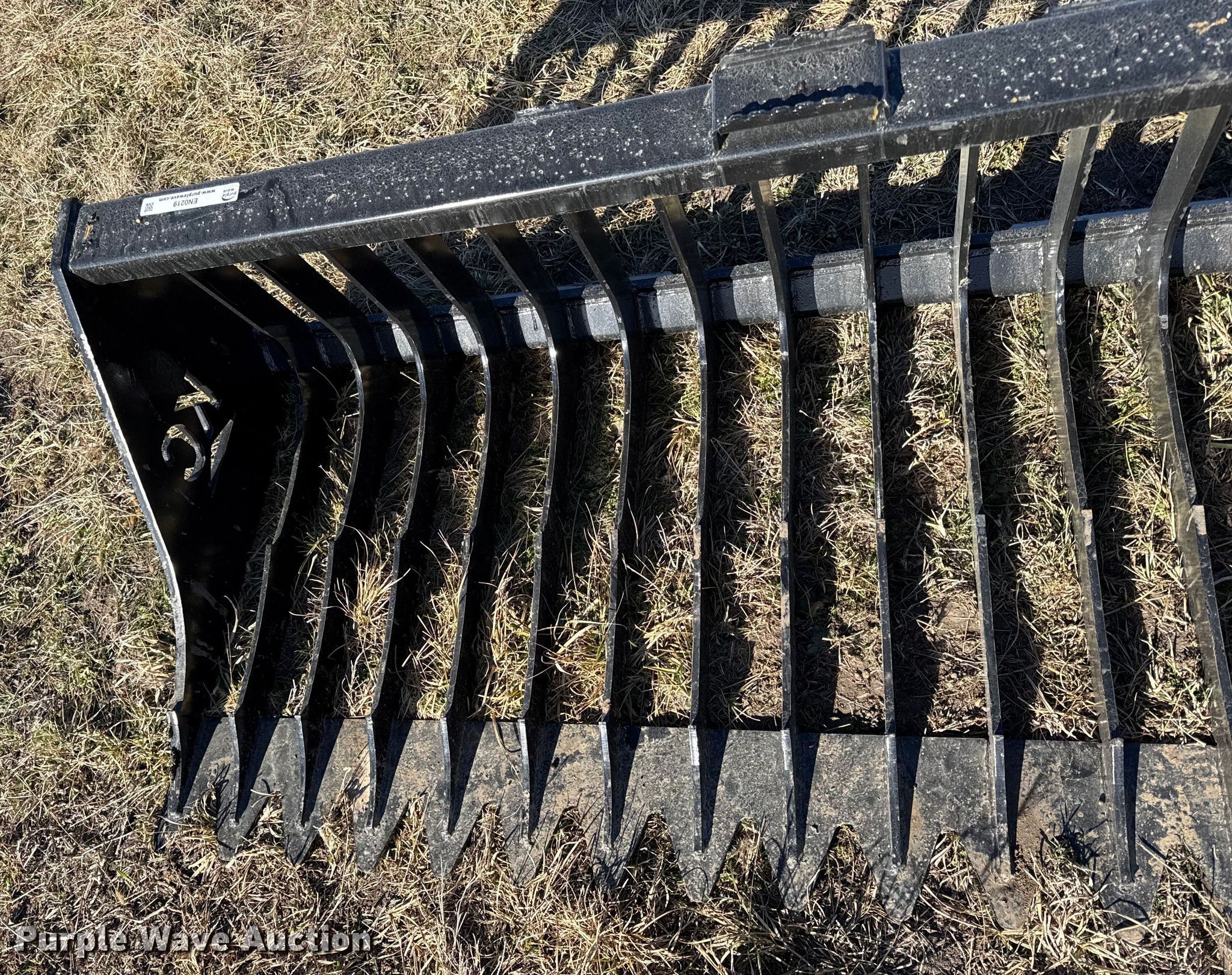 KC skid steer rock bucket for sale in Yates Center, Kansas. Item EN0219 will sell on February 11th, 2026.