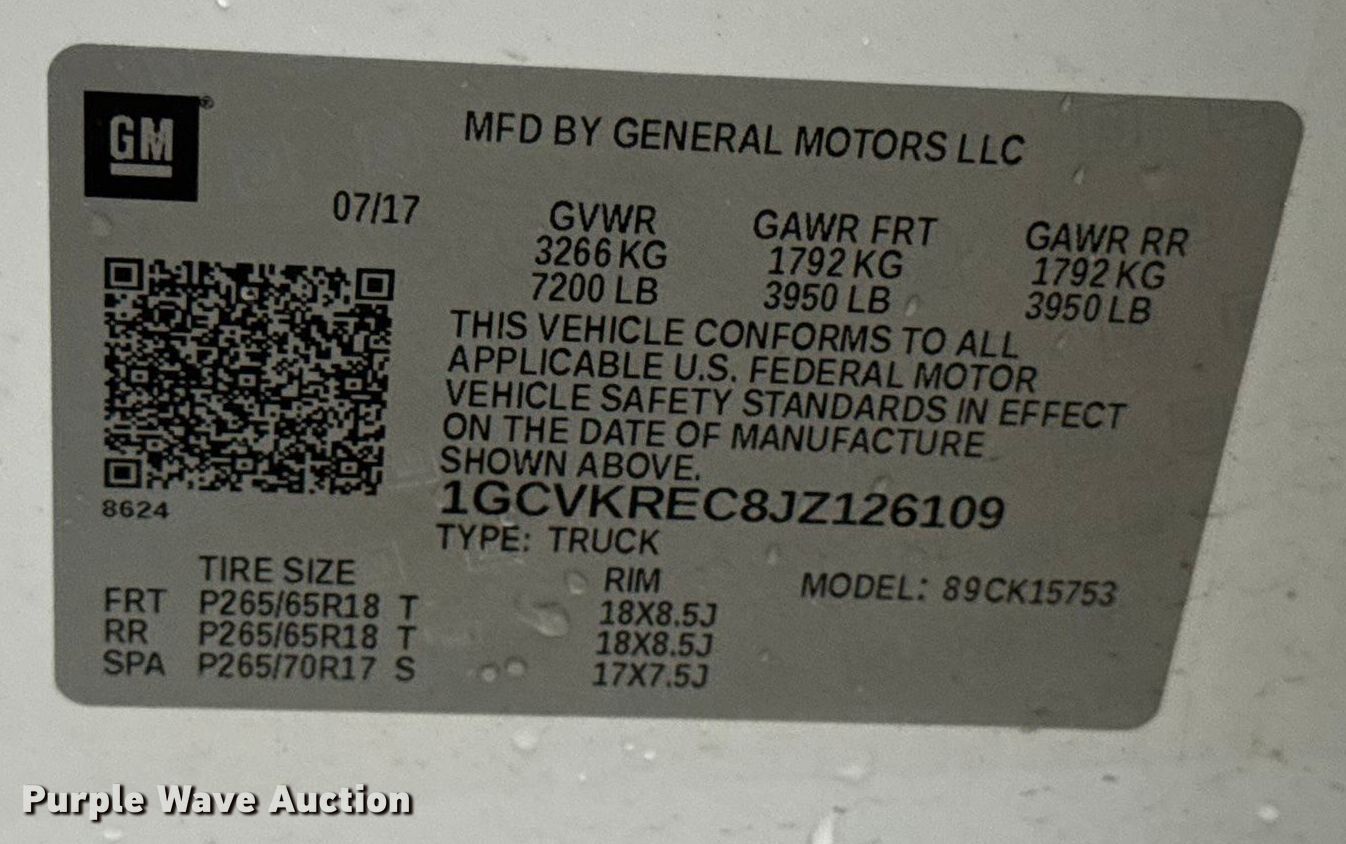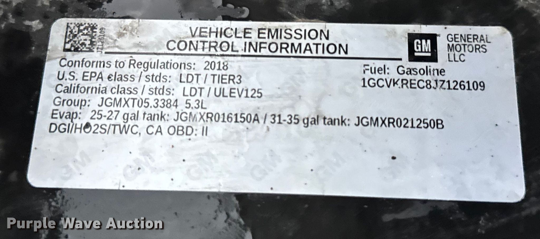 2018 Chevrolet Silverado 1500 LT Ext. Cab pickup truck. Miles: 247,262 on odometer, VIN: 1GCVKREC8JZ126109. Engine Displacement: 5.3L, Cylinders: 8, Fuel type: Gas. Transmission Automatic, Four wheel drive. Interior AC, Heat, Power windows, Power locks, Cruise control, Backup camera. Tires Size: P265/65R18. Notes Dash warning indicator: TPMS. Iowa title. Title distribution may be delayed up to 14 days from verification of funds. Septagon Construction. Sedalia, MO 65301