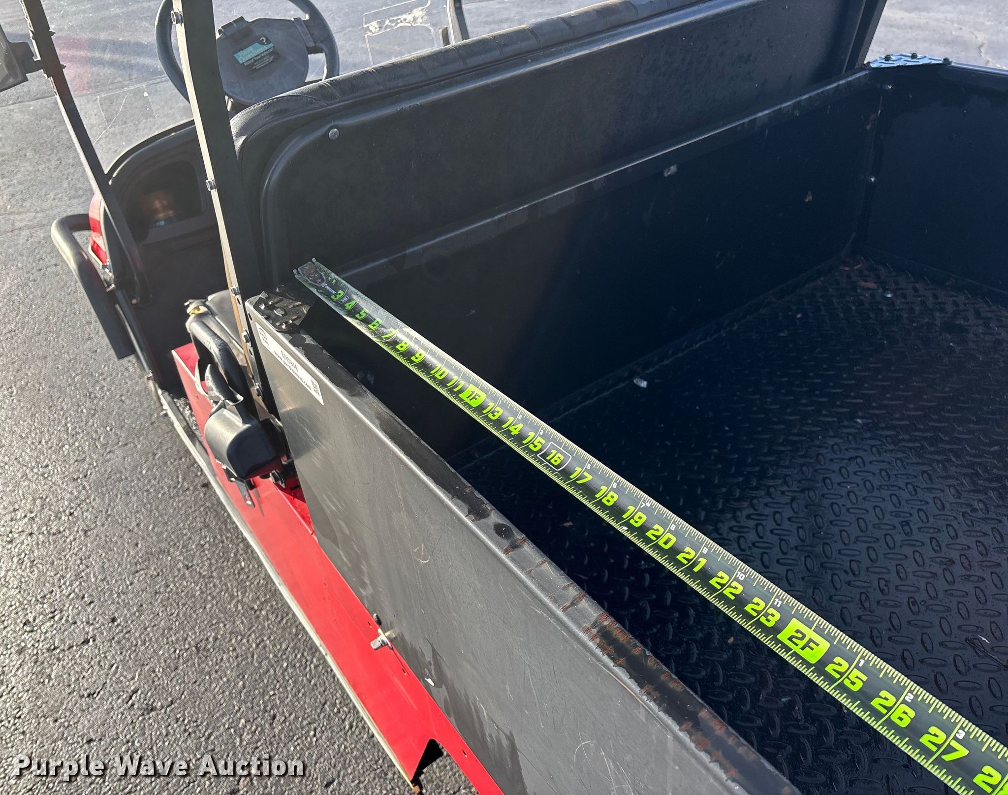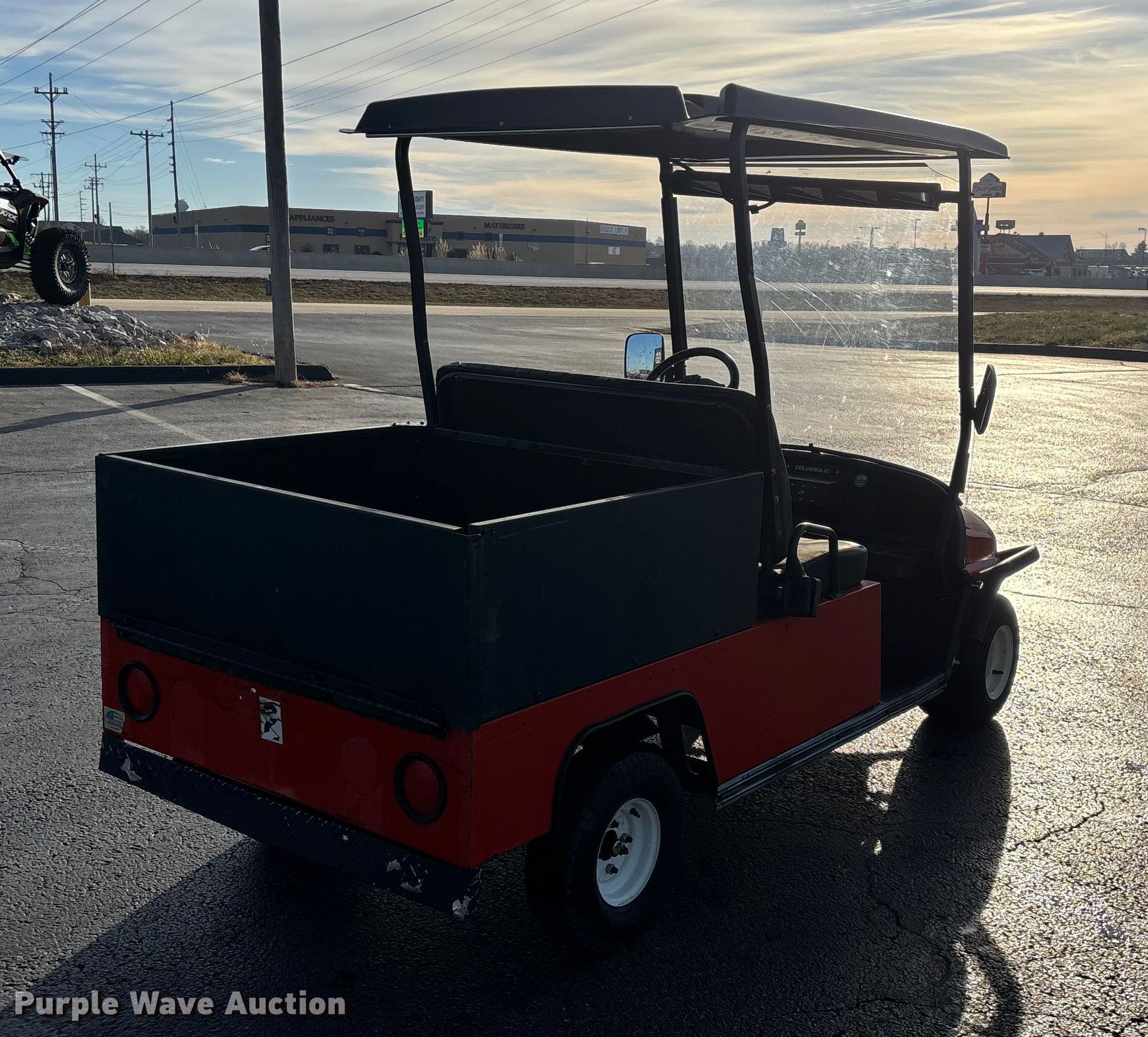 Columbia golf cart. Unit #: 2. Electric Motor Volts: 48, Charger: Single phase. Transmission Automatic. Operators station Canopy. Features Box bed 37" L x 43" W. Tires Front: 5.70-8, 18x8.50-8, Rear: 5.70-8. Notes Tail gate pin issues. Clear Creek Golf Car & Utility Vehicles, LLC. Ozark, MO 65721