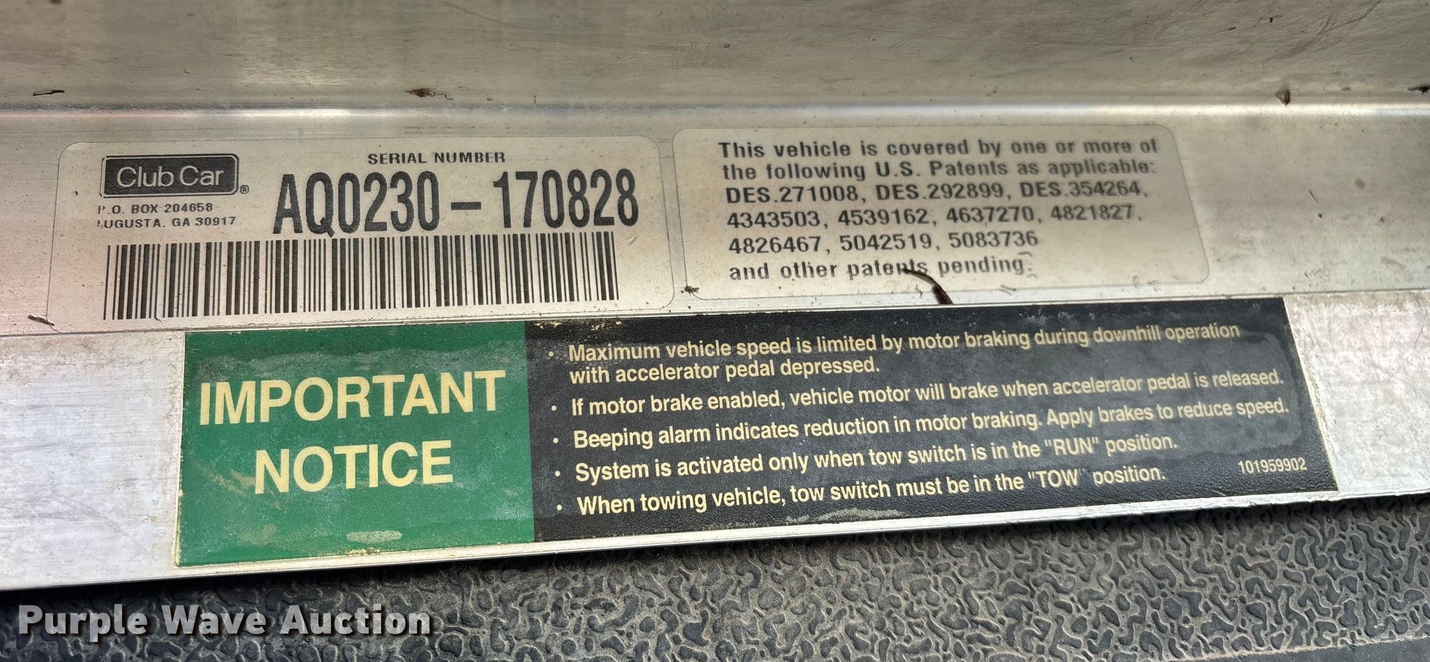 Purple Wave is selling a used Golf Cart in Missouri. This item is a Club Car golf cart with the following: Serial: AQ0230-170828, Unit #: 1