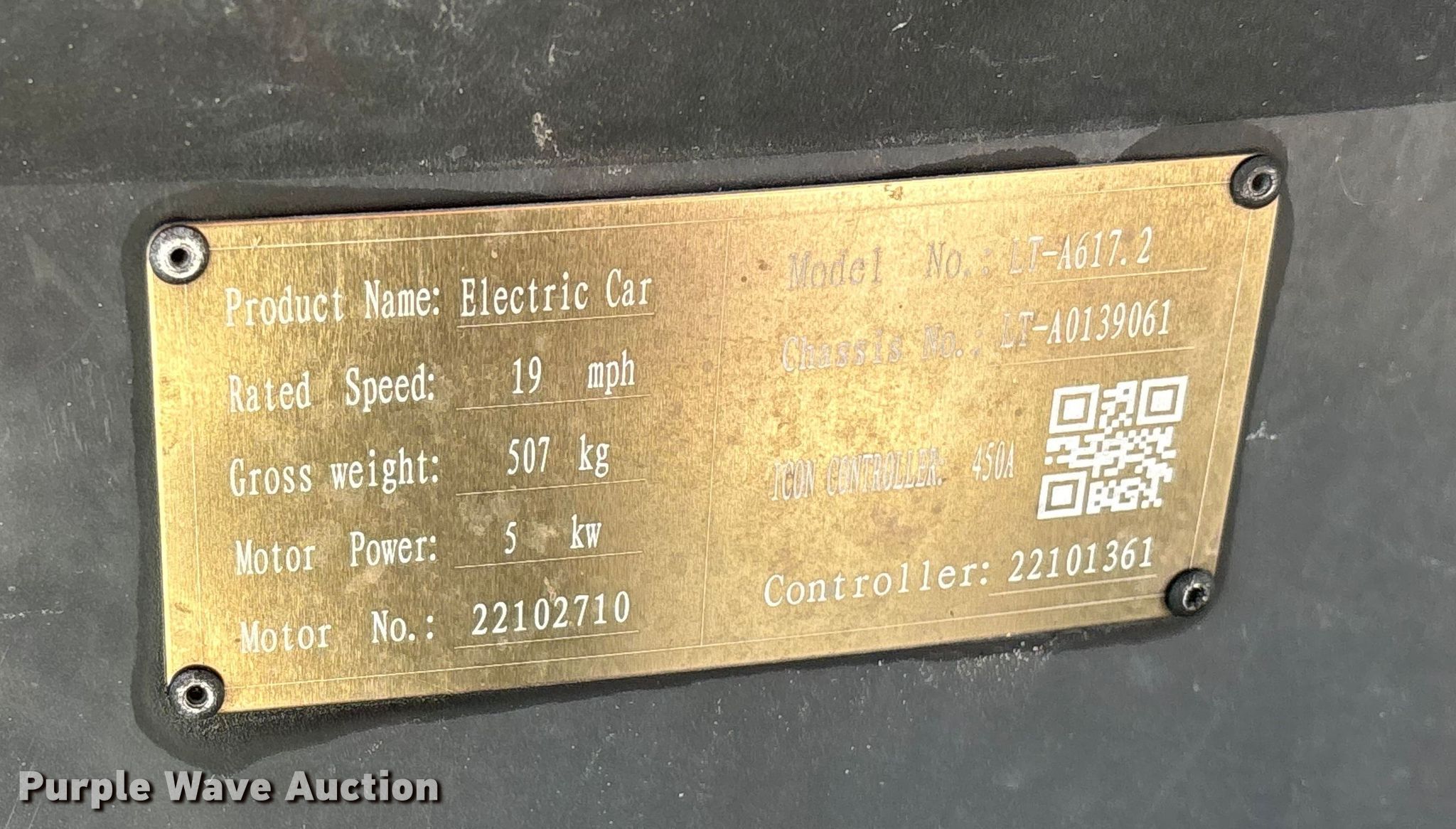Purple Wave is selling a used Golf Cart in Missouri. This item is a Icon LT-A617.2 golf cart with the following: Miles: 3,998 on odometer, Hours: 217 on meter, Serial: LT-A0139061
