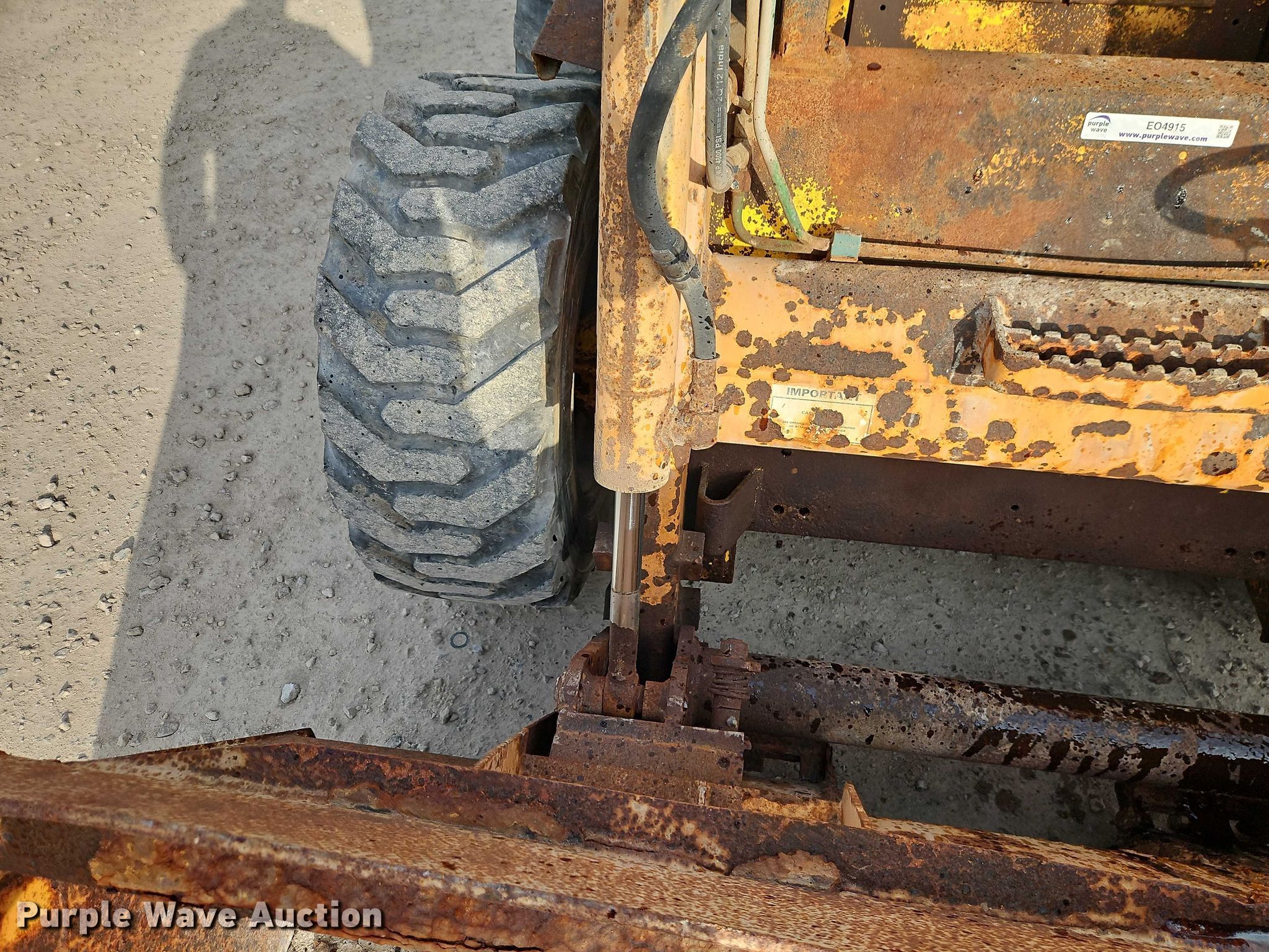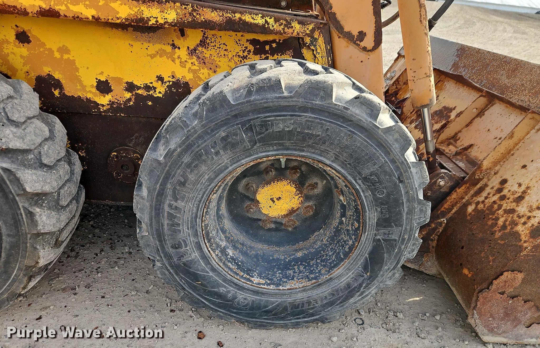 Case 1845C skid steer loader. Hours: 4,904 on meter, Unit #: 28. Engine Cylinders: 4, Fuel type: Diesel. Transmission Hydrostatic. Operators station Bucket control: Hand. Features Auxiliary hydraulics, Quick coupler: Manual, Bucket Width: 73", Cutting edge: Bolt-on. Tires Size: 12R16.5. Notes Lift arm cylinder hydraulic hose damaged Will be replaced prior to auction. MFA Inc. Adrian, MO 64720