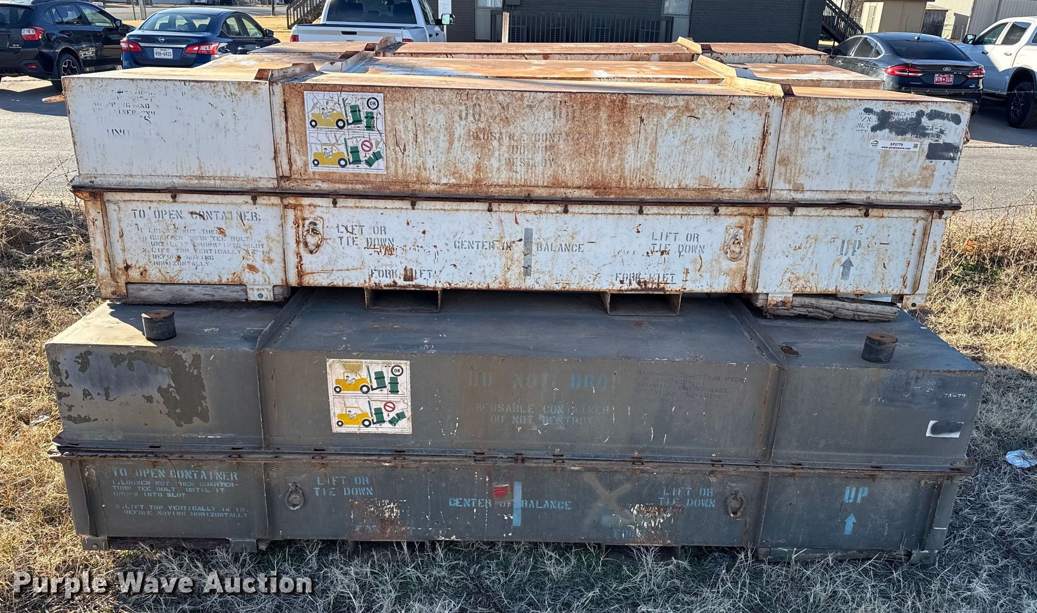 Purple Wave is selling a used Storage or Shipping Container in Oklahoma. This item is a (7) steel storage boxes with the following: Dimensions: 102" L x 23" W