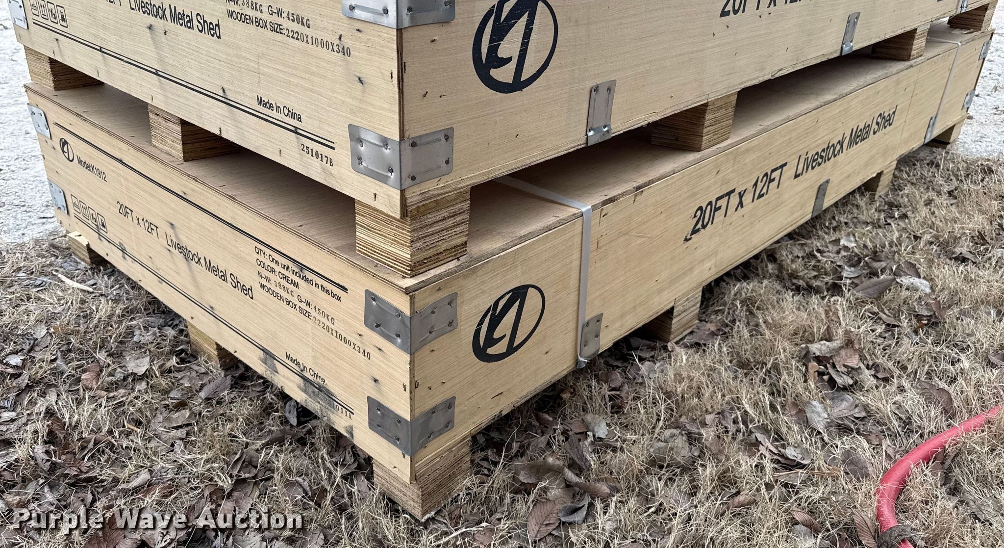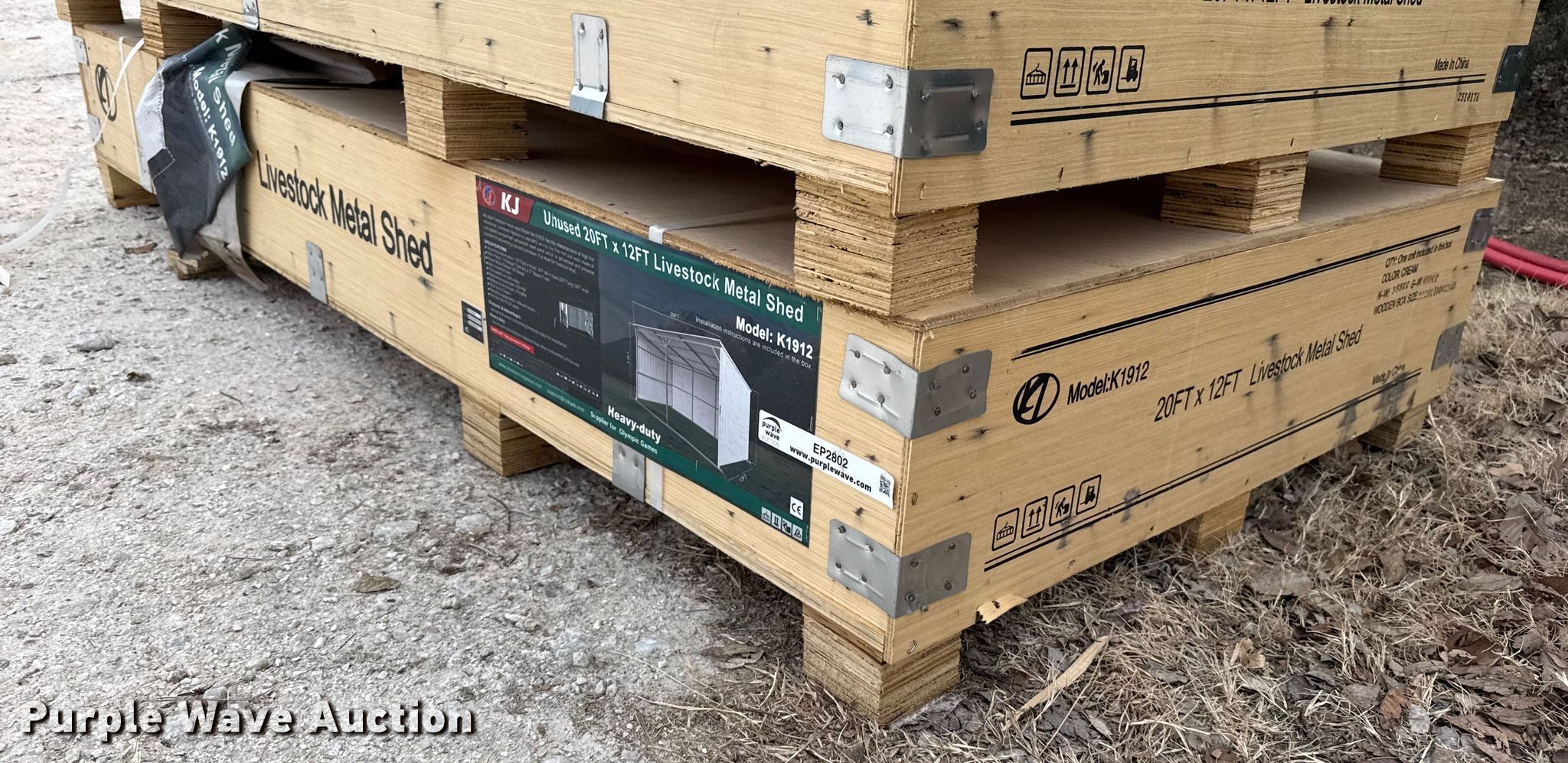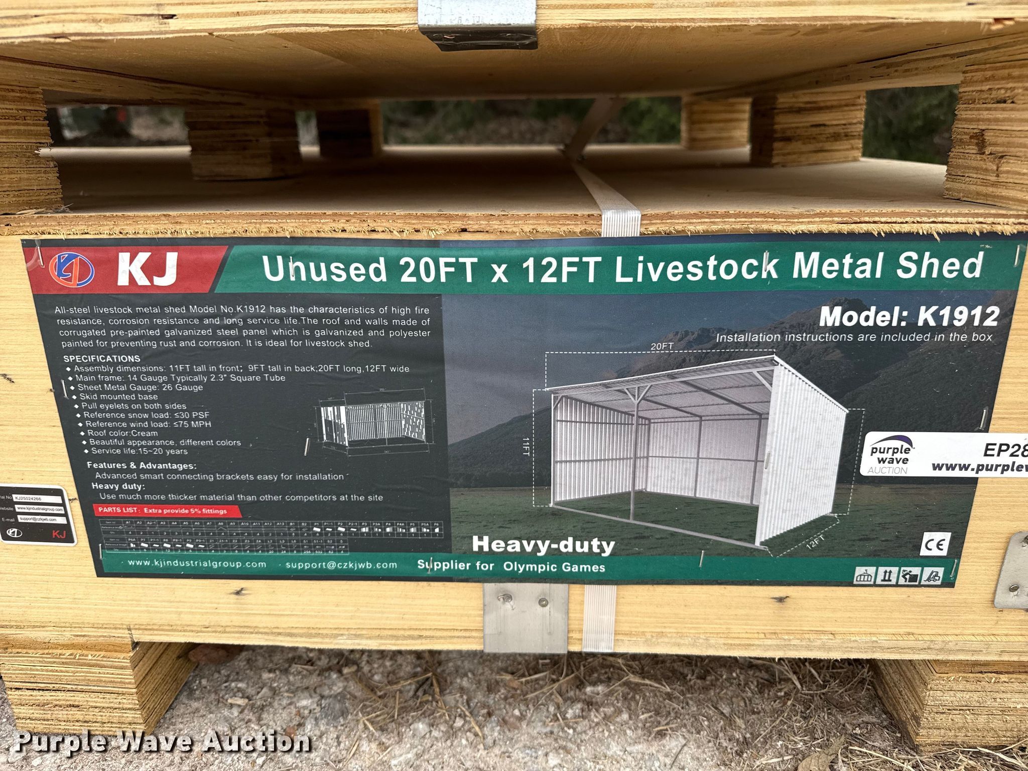 Purple Wave is selling a used Building Materials in Oklahoma. This item is a KJ livestock shed with the following: 20' L x 12' W