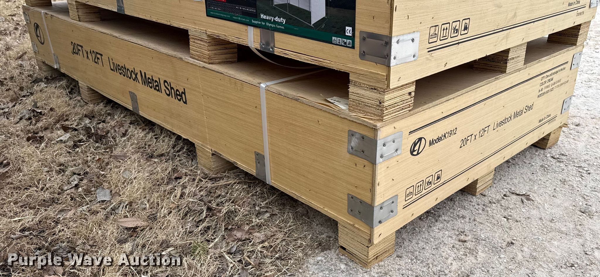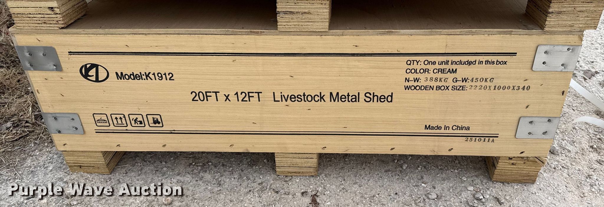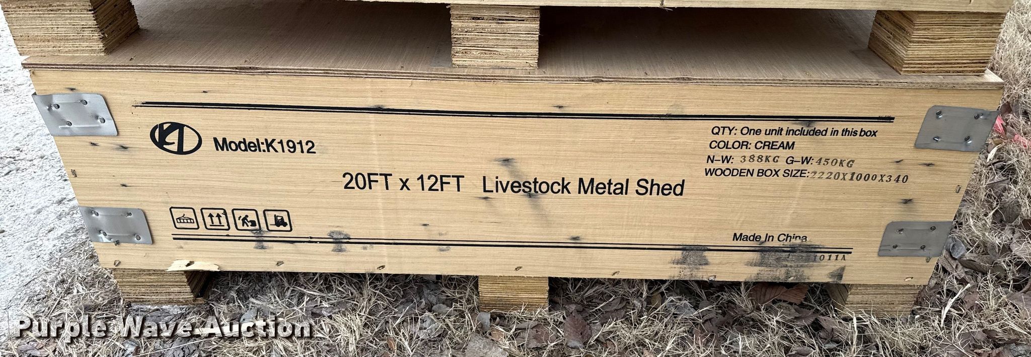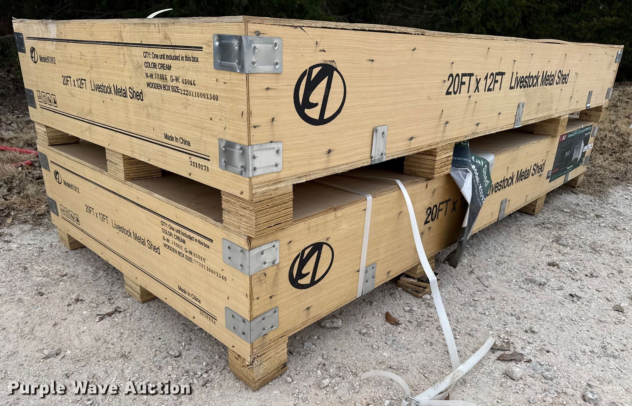 Purple Wave is selling a used Building Materials in Oklahoma. This item is a KJ livestock shed with the following: 20' L x 12' W