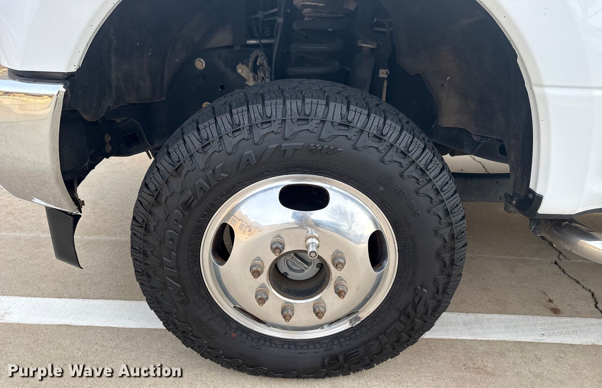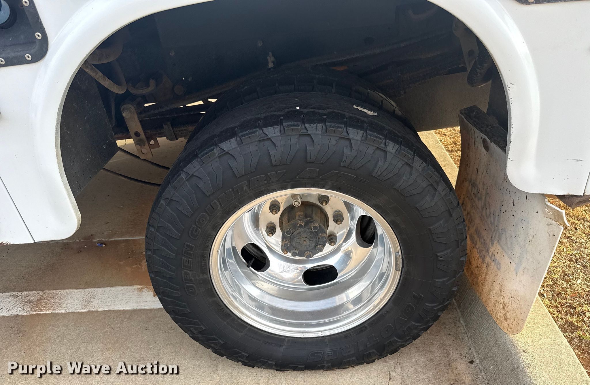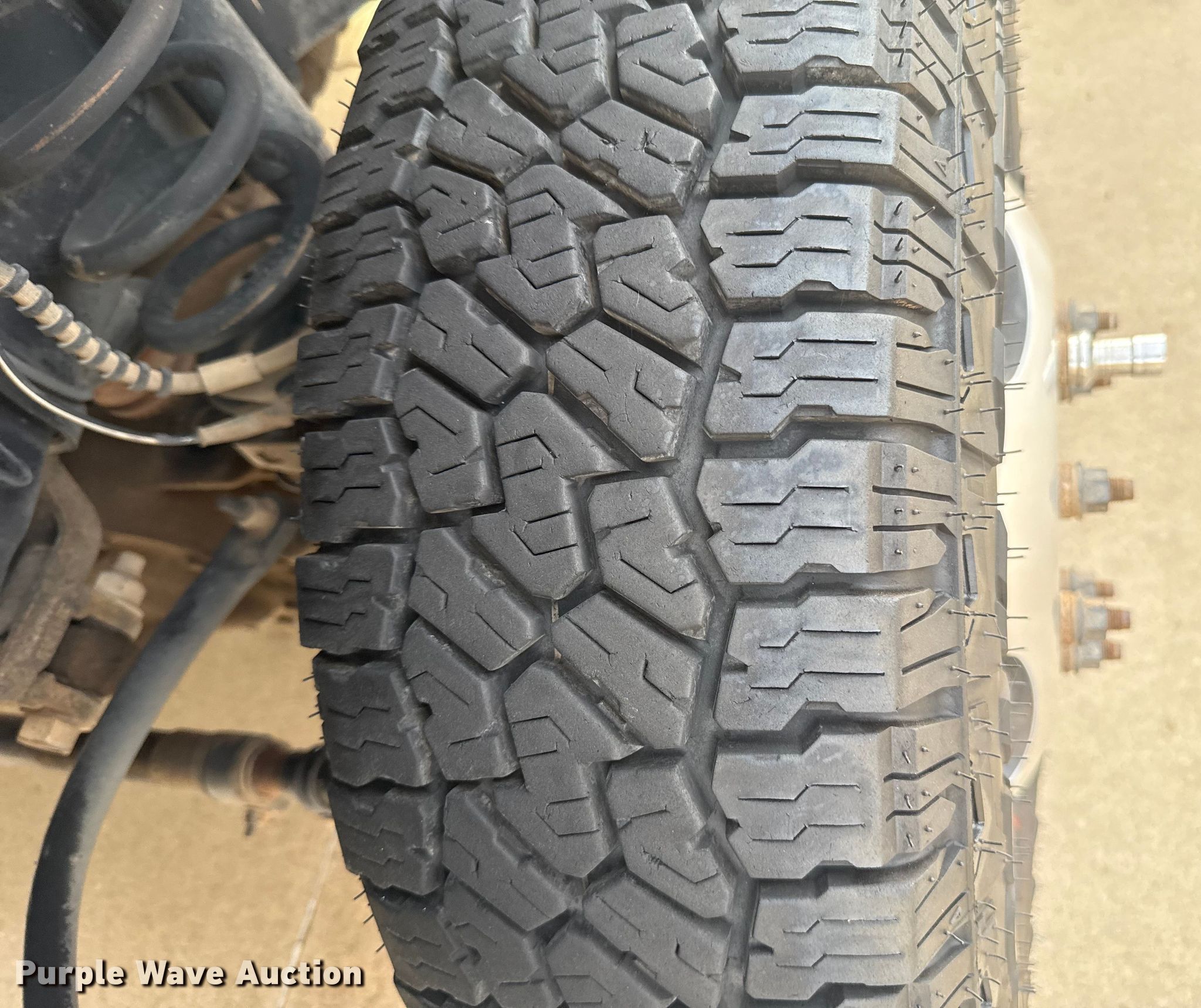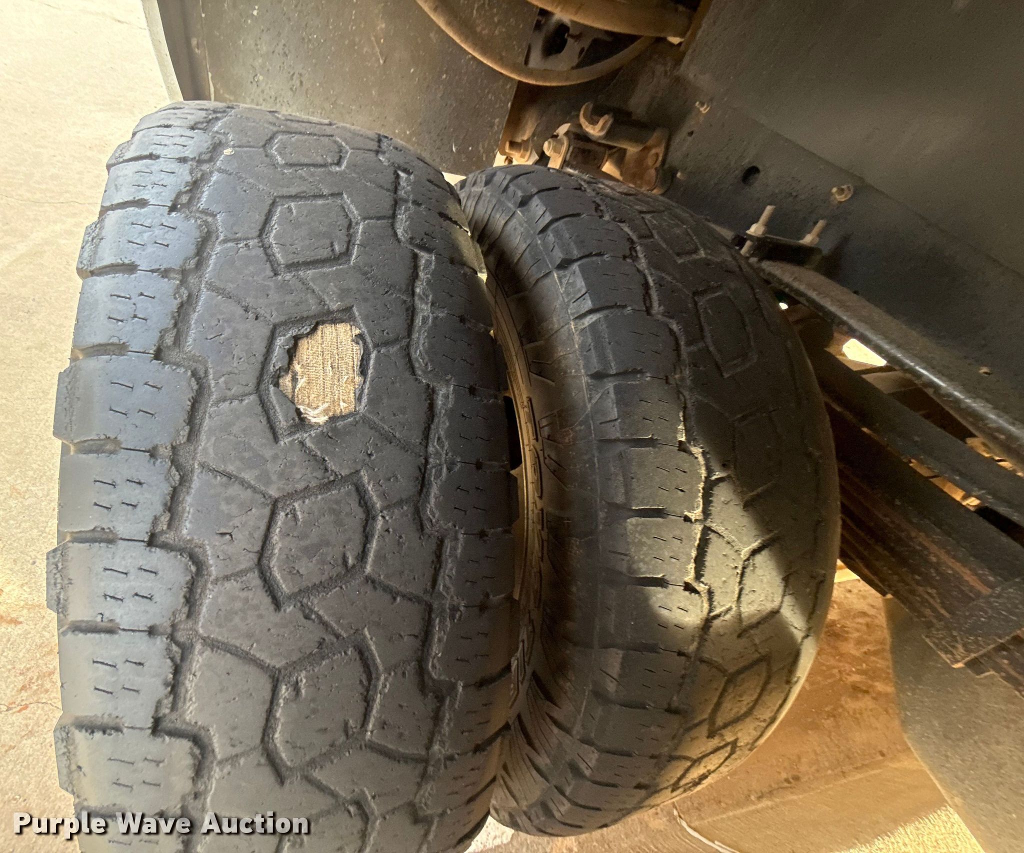 - Driver rear outside dual tire damaged, needs replaced