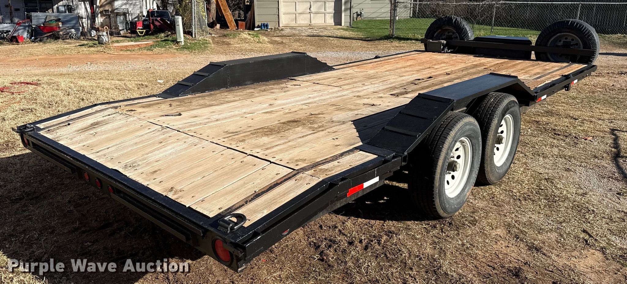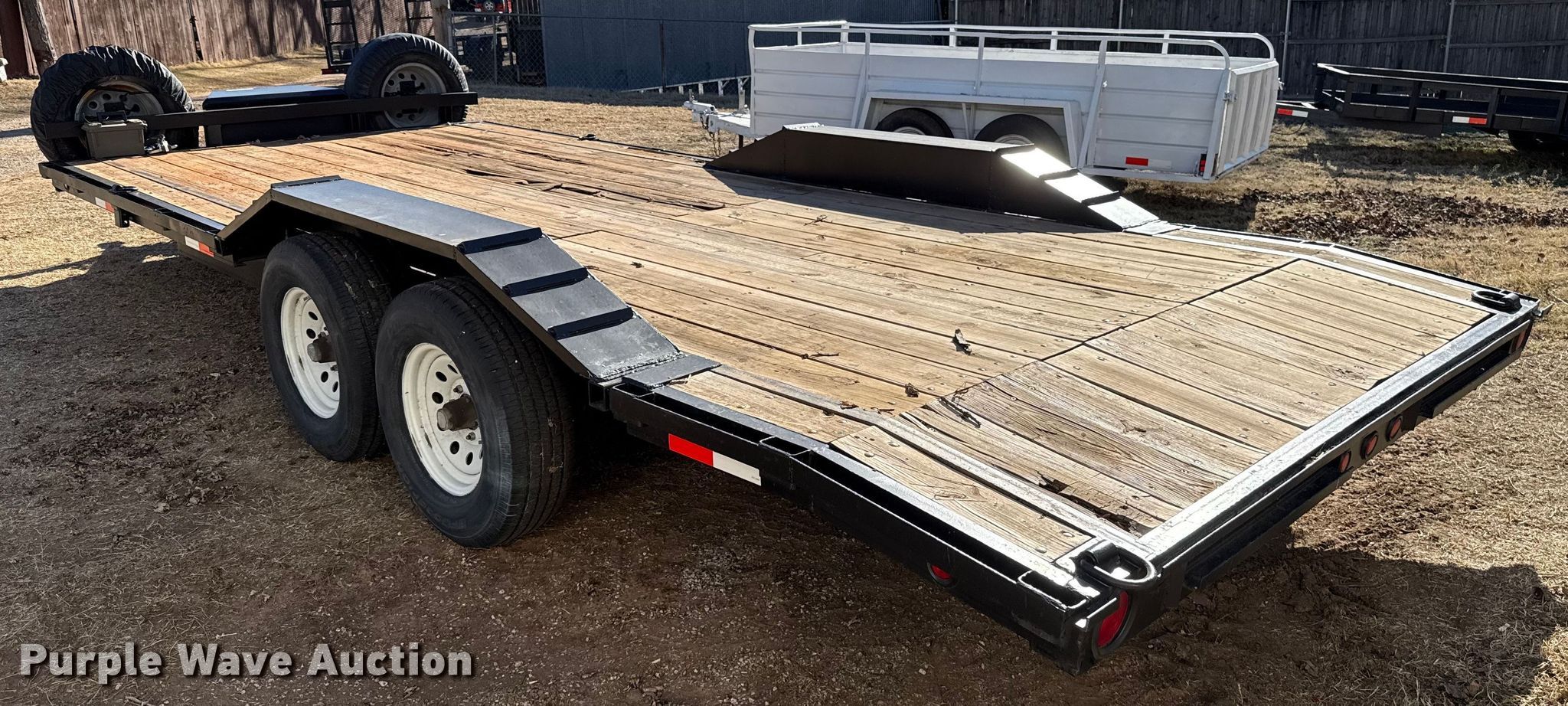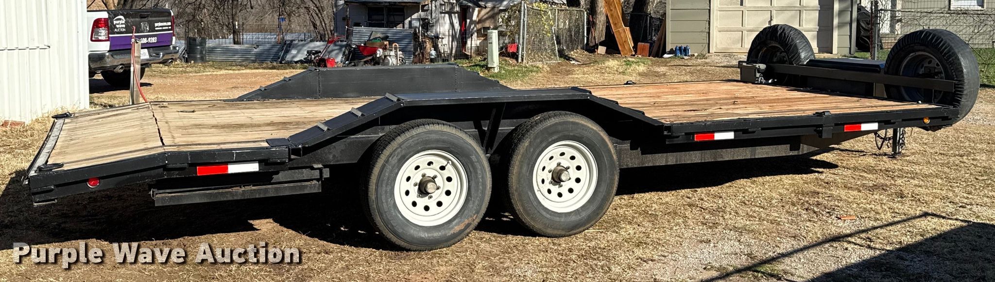 Purple Wave is selling a used Car or Utility Trailer in Oklahoma. This item is a Shop built utility trailer with the following: Overall, Length: 24', Width: 102", Deck, Length: 20', Width: 81", Tail length: 24", Ramps: Manual, Length: 58"