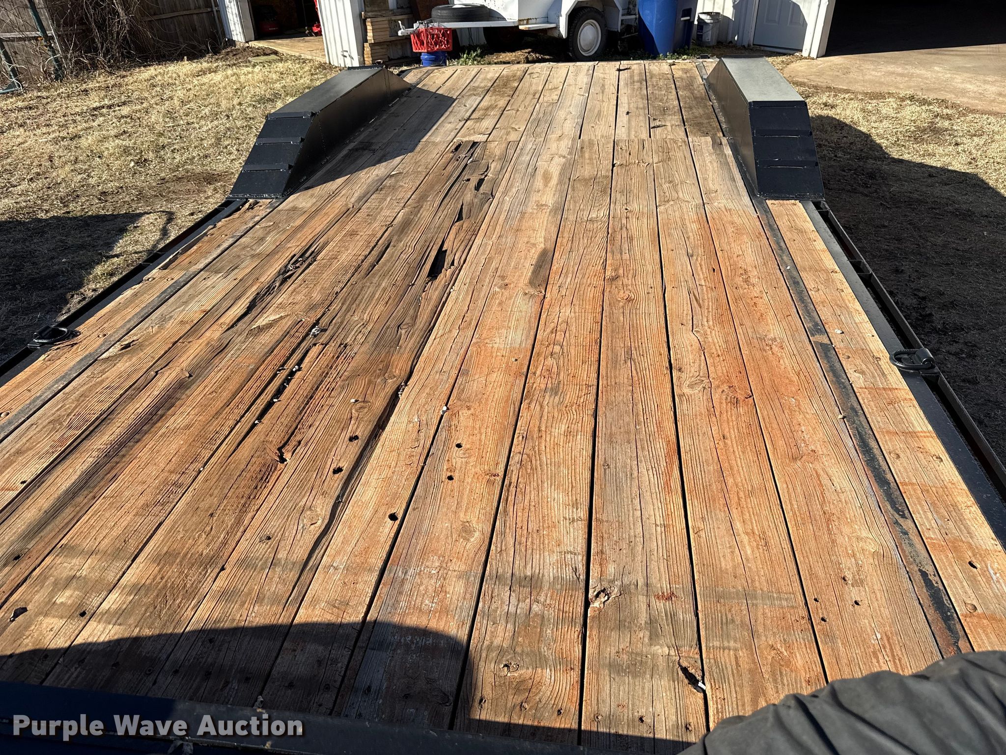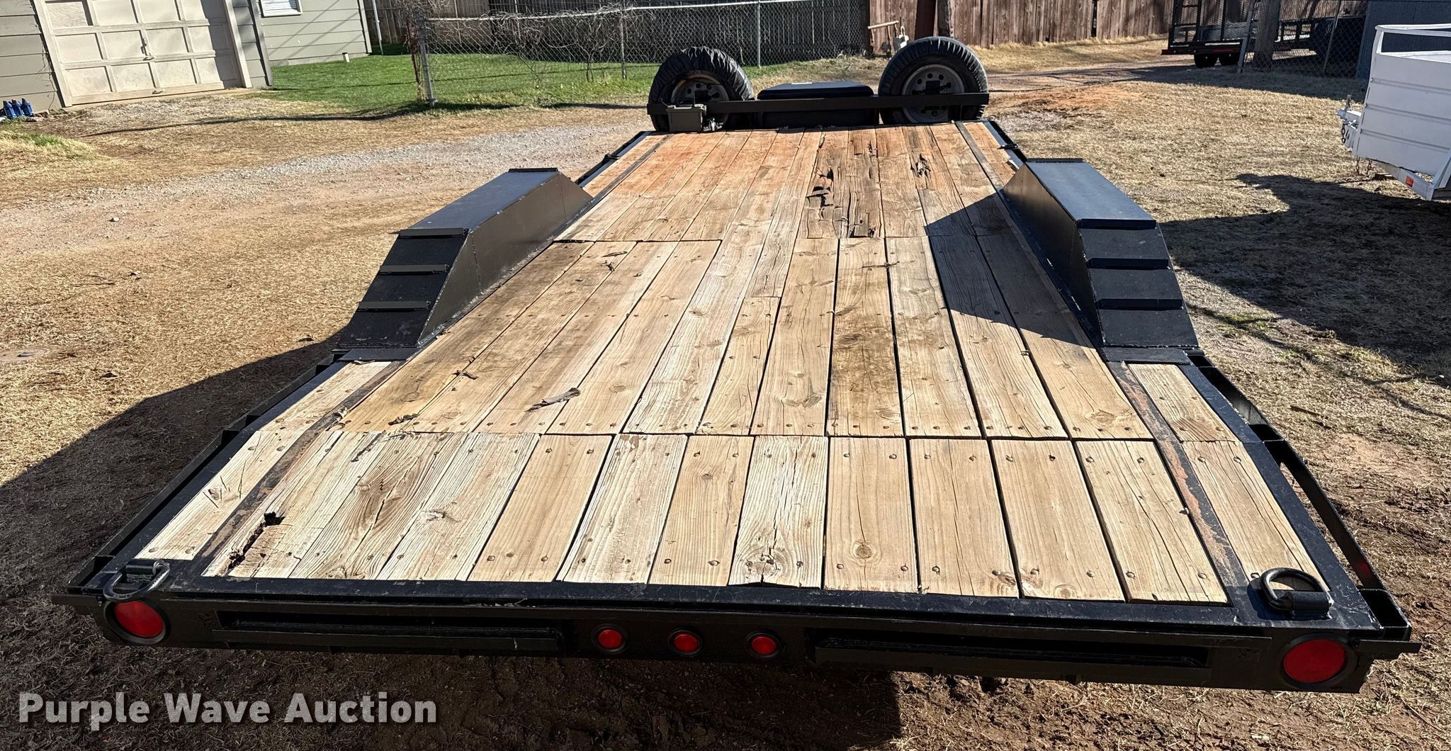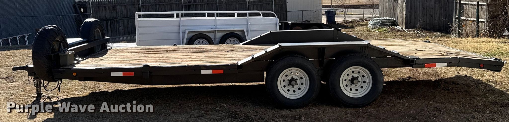 Purple Wave is selling a used Car or Utility Trailer in Oklahoma. This item is a Shop built utility trailer with the following: Overall, Length: 24', Width: 102", Deck, Length: 20', Width: 81", Tail length: 24", Ramps: Manual, Length: 58"