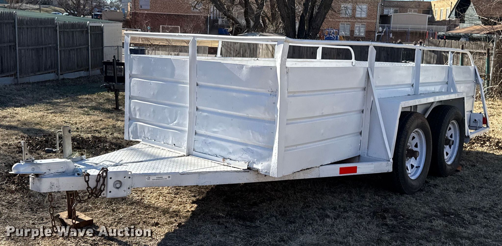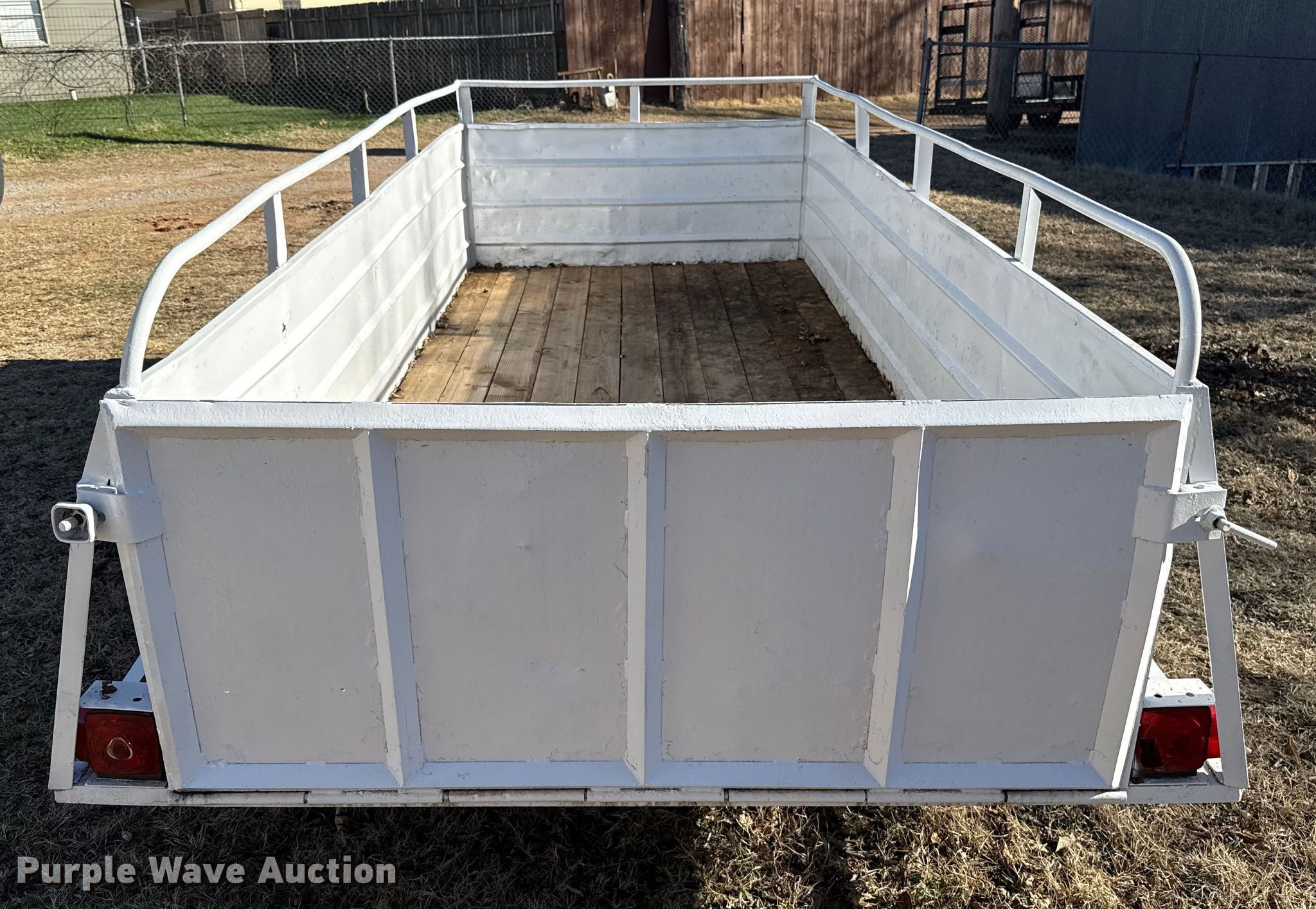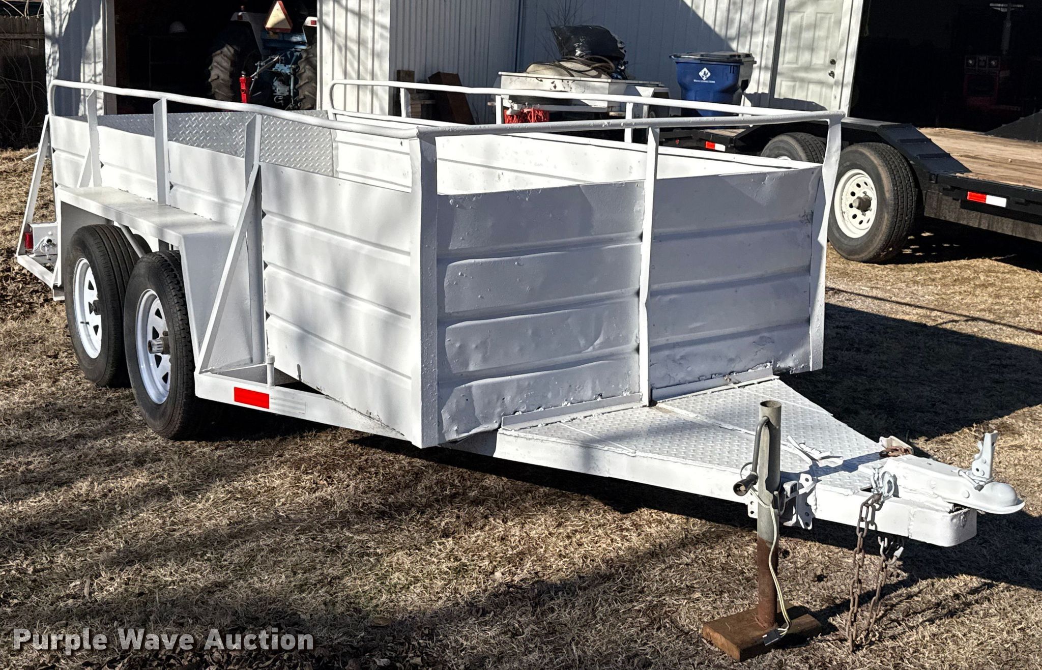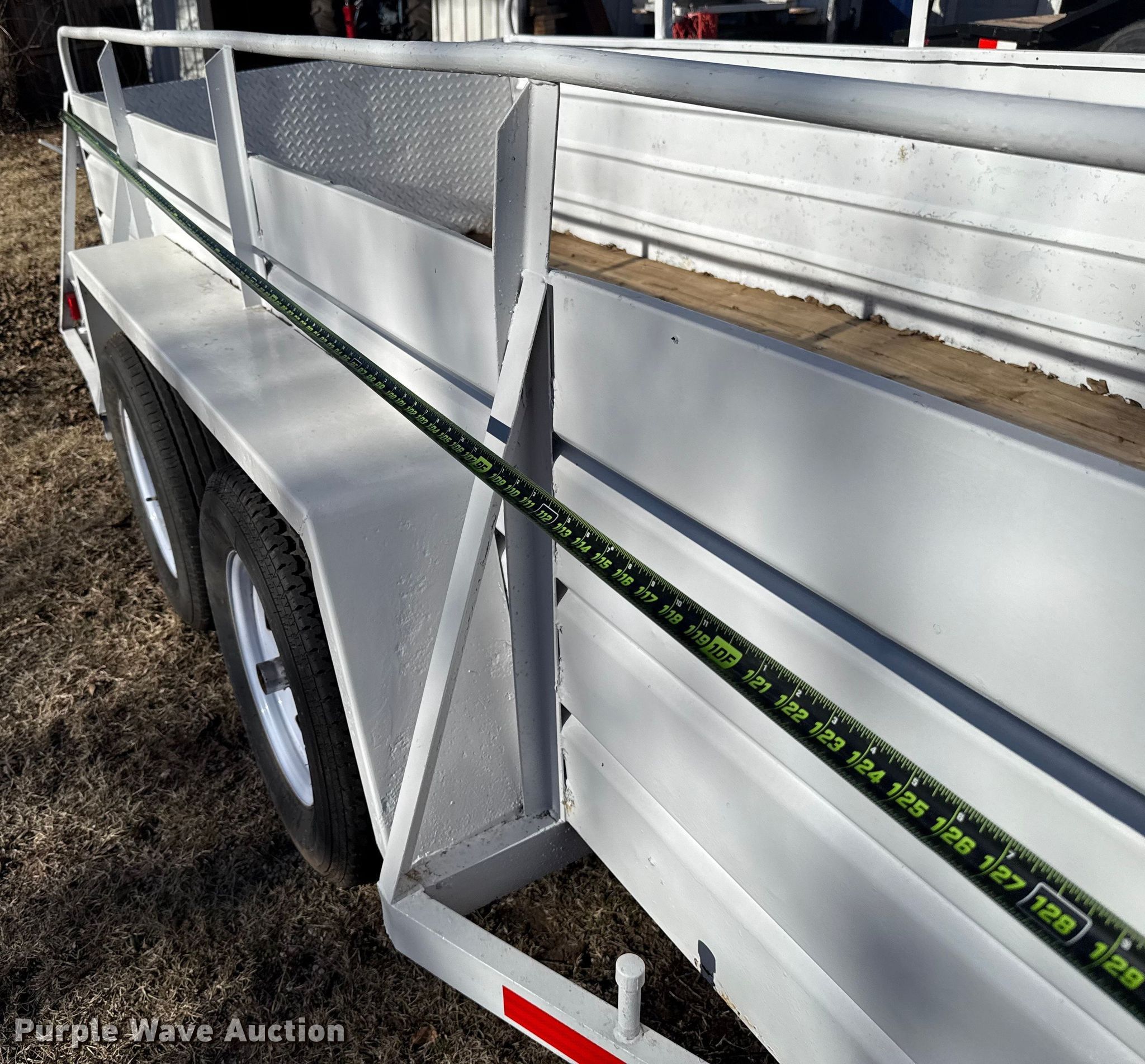 Purple Wave is selling a used Car or Utility Trailer in Oklahoma. This item is a Shop built utility trailer with the following: Overall, Length: 16', Width: 76", Deck, Length: 12', Width: 58", Side height: 31", Ramps: Manual, Length: 27"