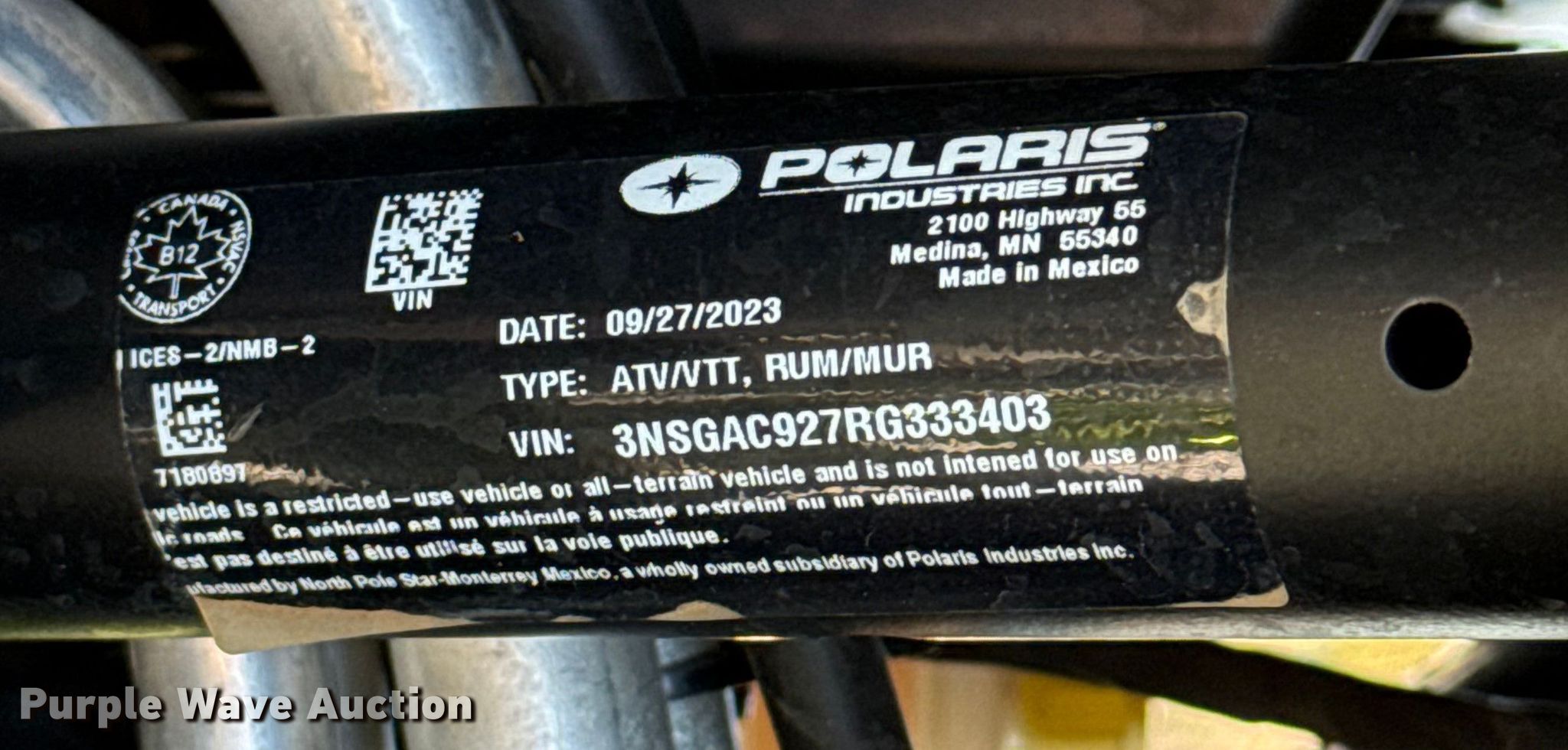 2024 Polaris RZR Turbo R utility vehicle | Wednesday February 11 Vehicles and Equipment Auction
