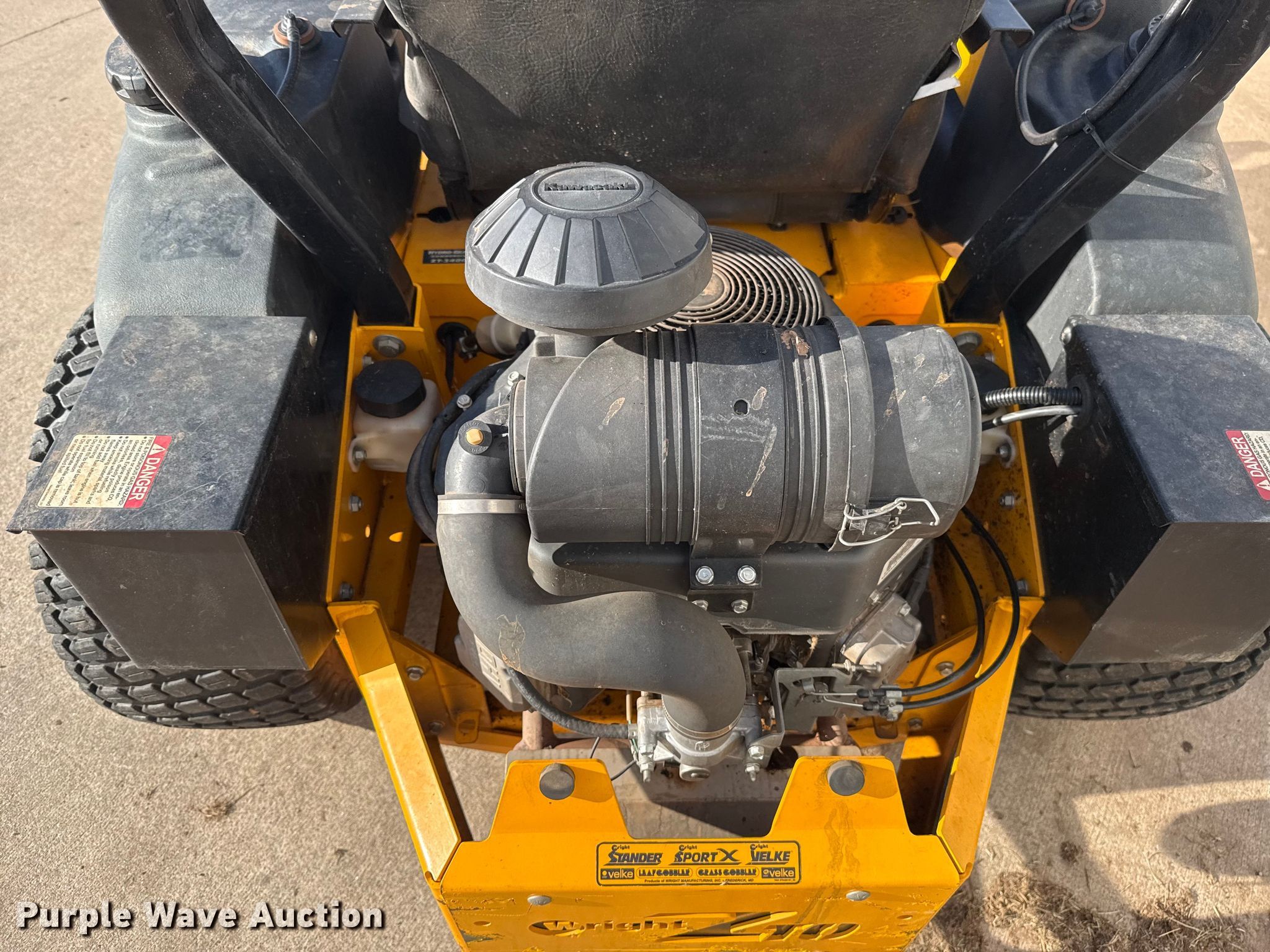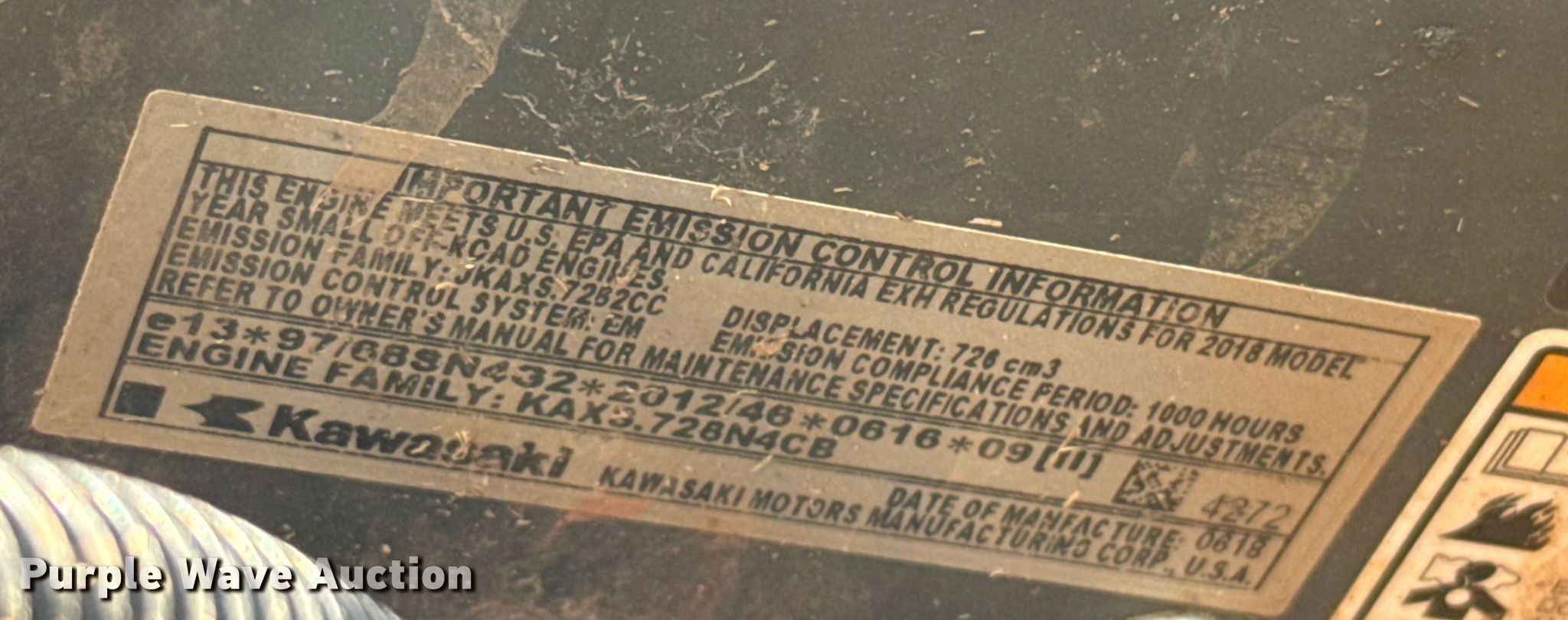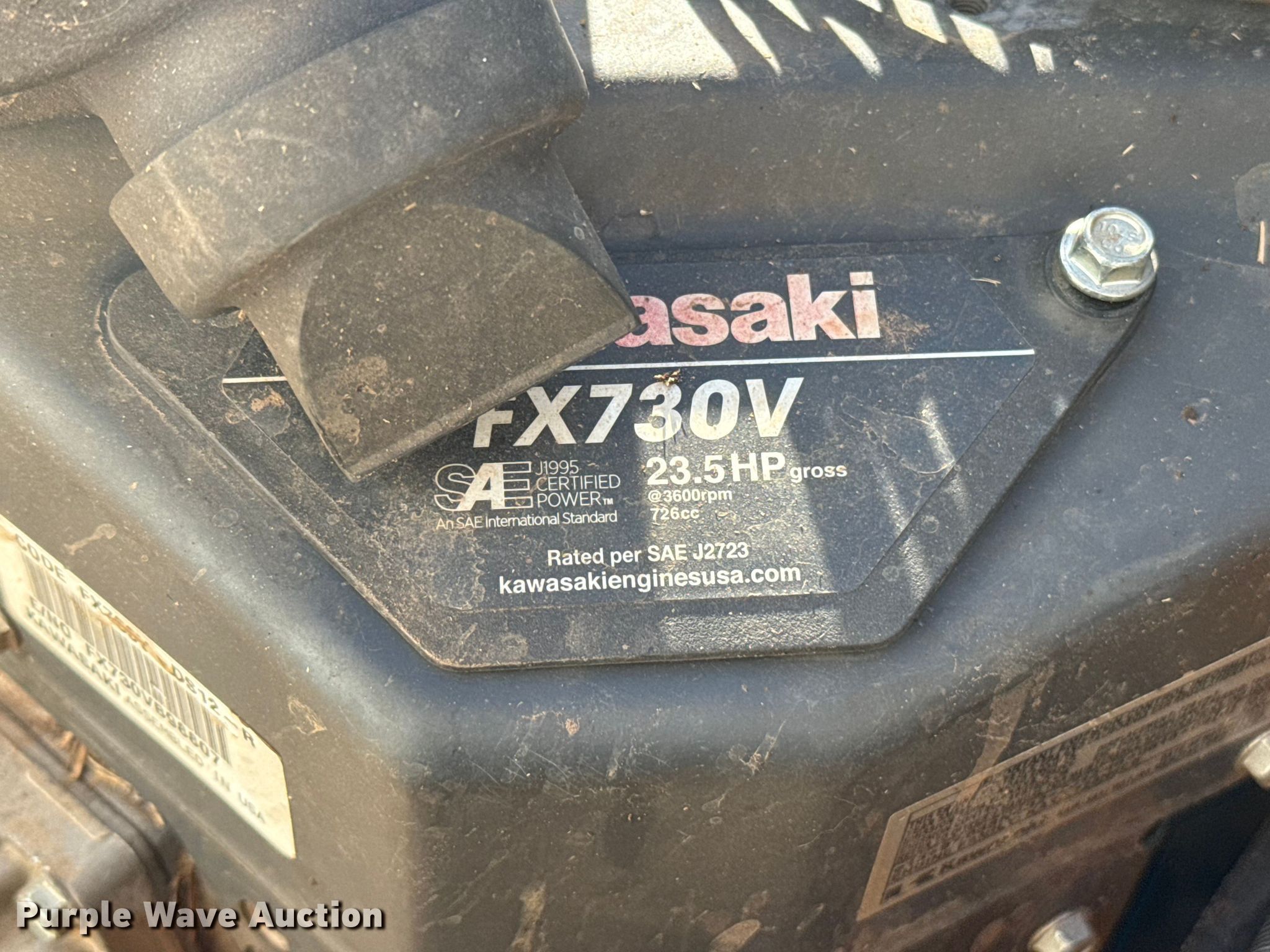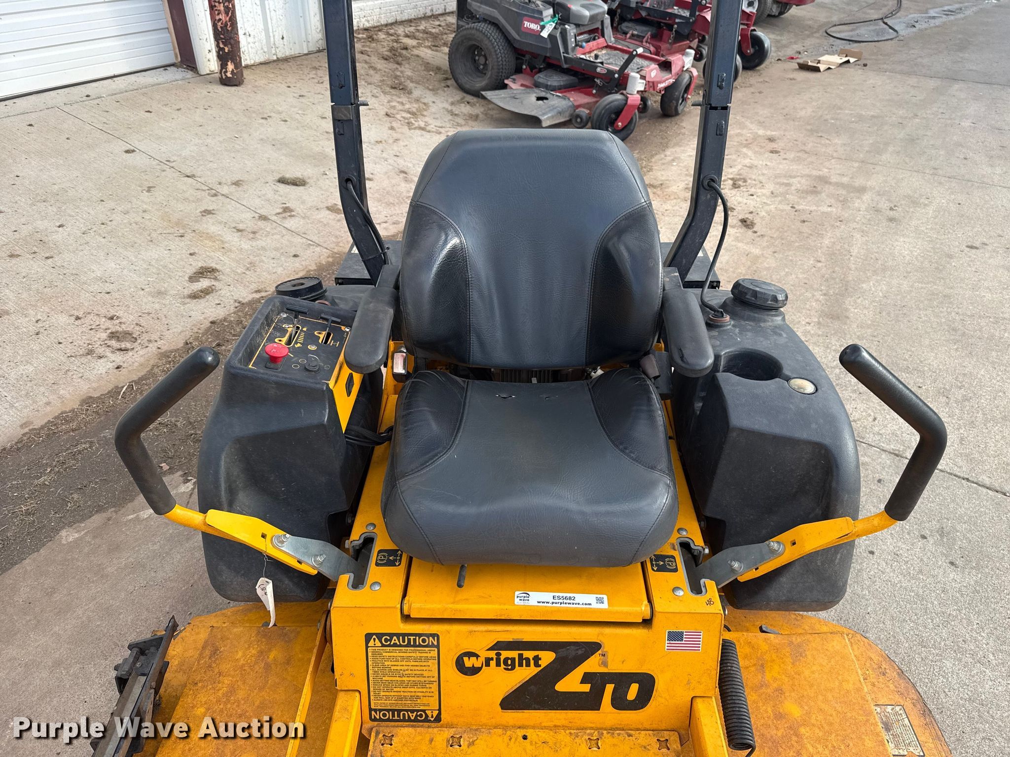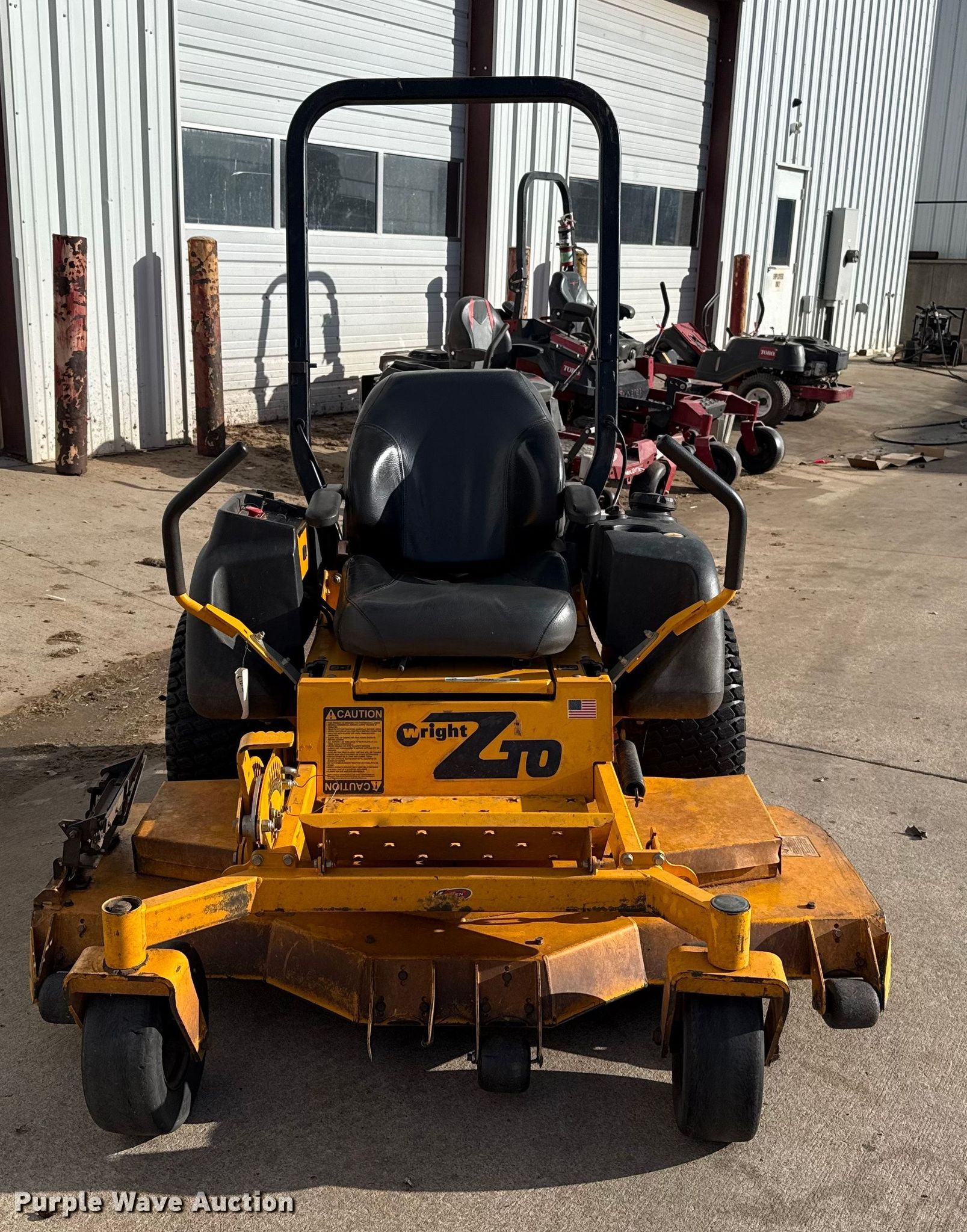 Wright ZTO ZTR lawn mower. Cutting width: 60". Engine Kawasaki FX730V, Serial: FX730VB98807, Displacement: 726 cm3, Cylinders: 2, Fuel type: Gas. Transmission Hydrostatic. Chassis PTO. Operators station OROPS. Tires Front: 13X5.00-6, Rear: 24X12.00-12. Notes PTO issues, will not engage. Kinnunen Sales & Service. Stillwater, OK 74074