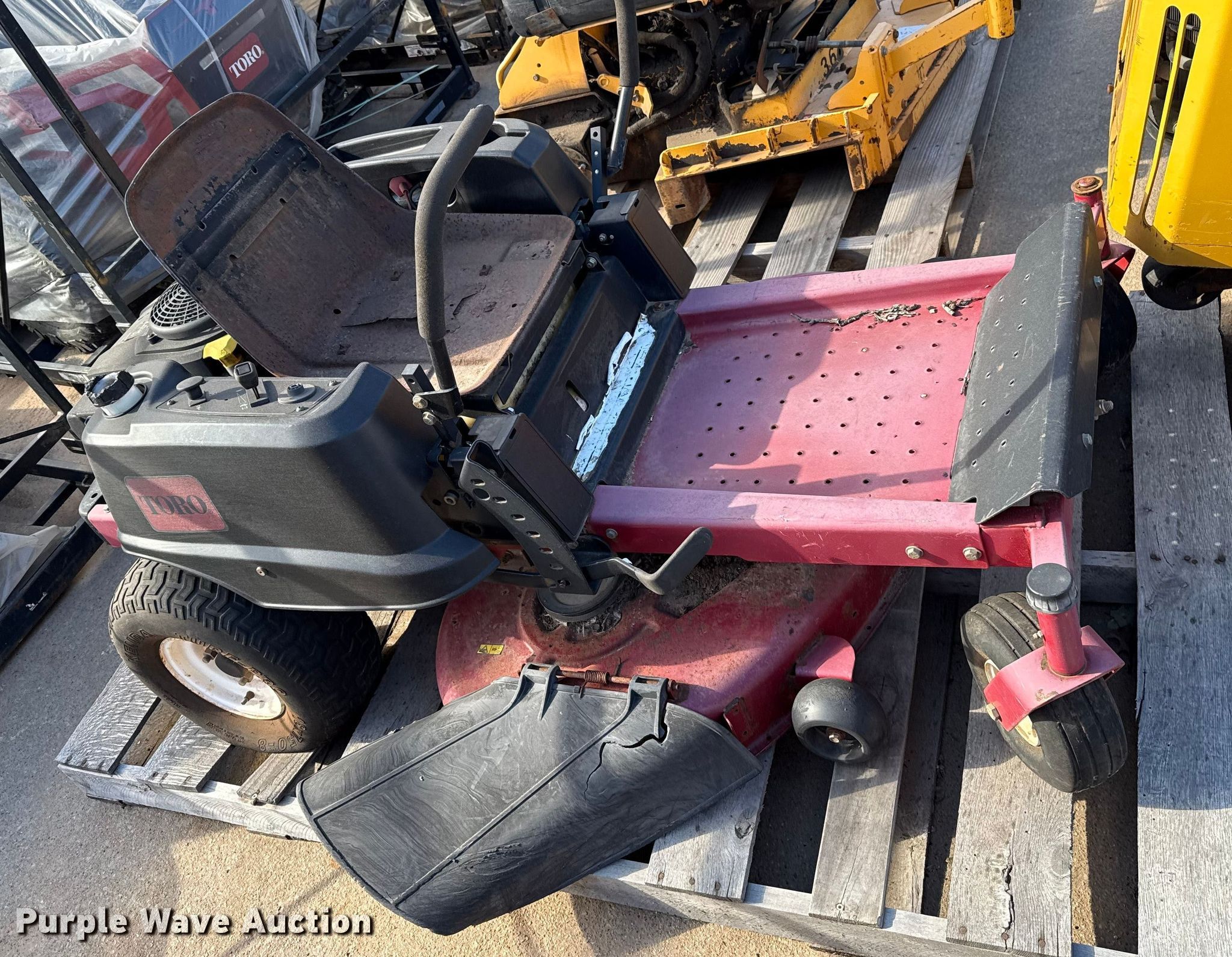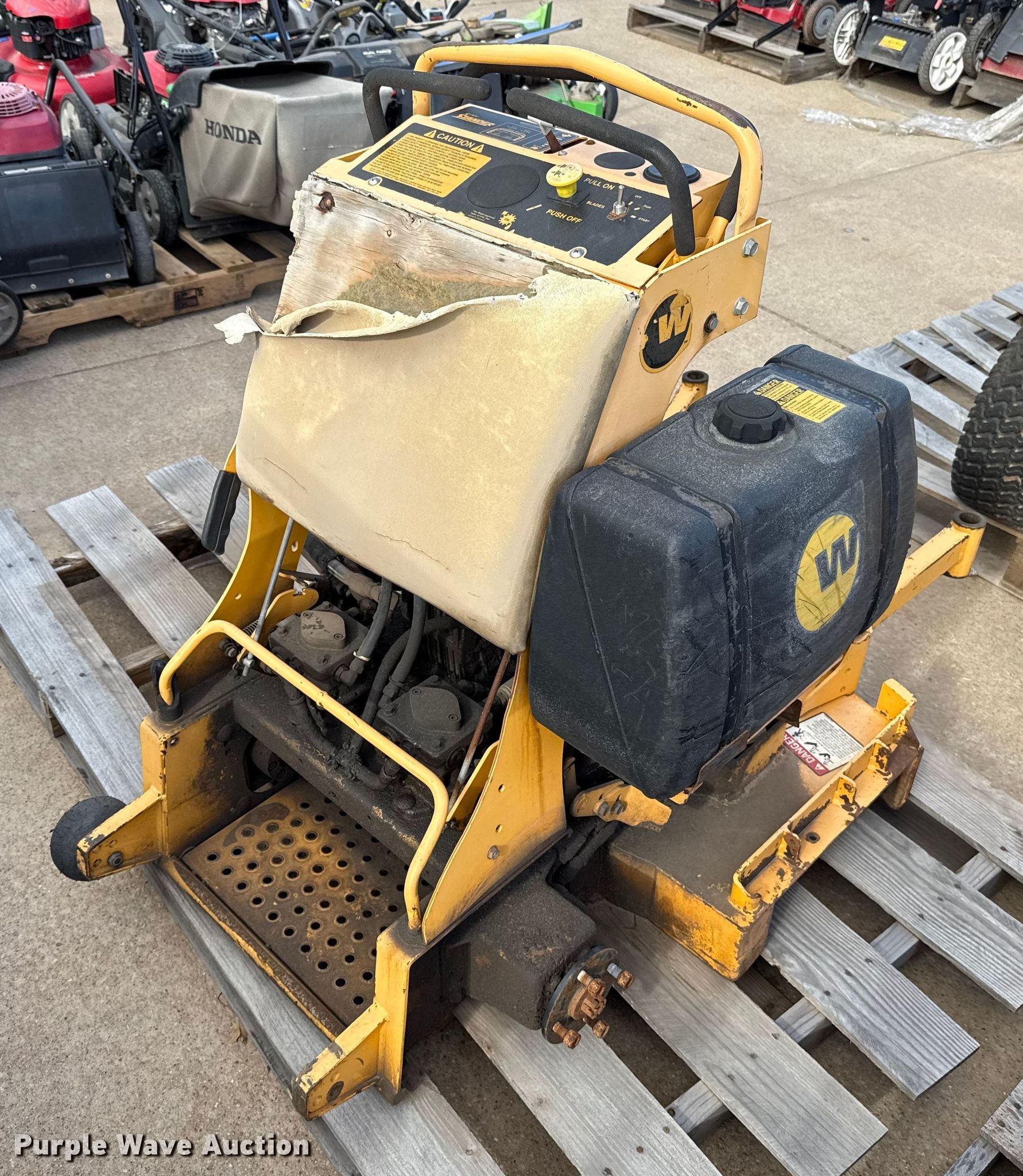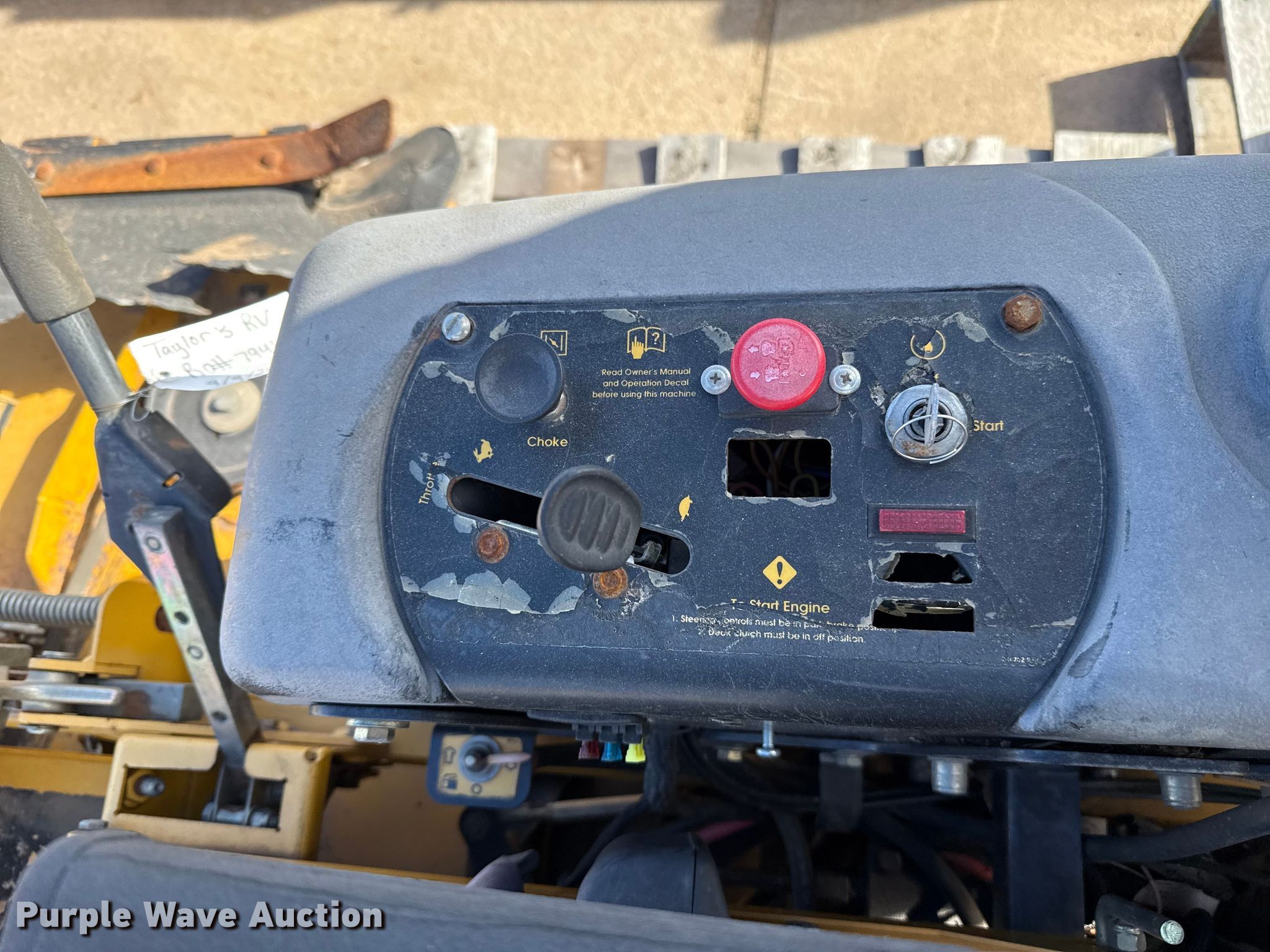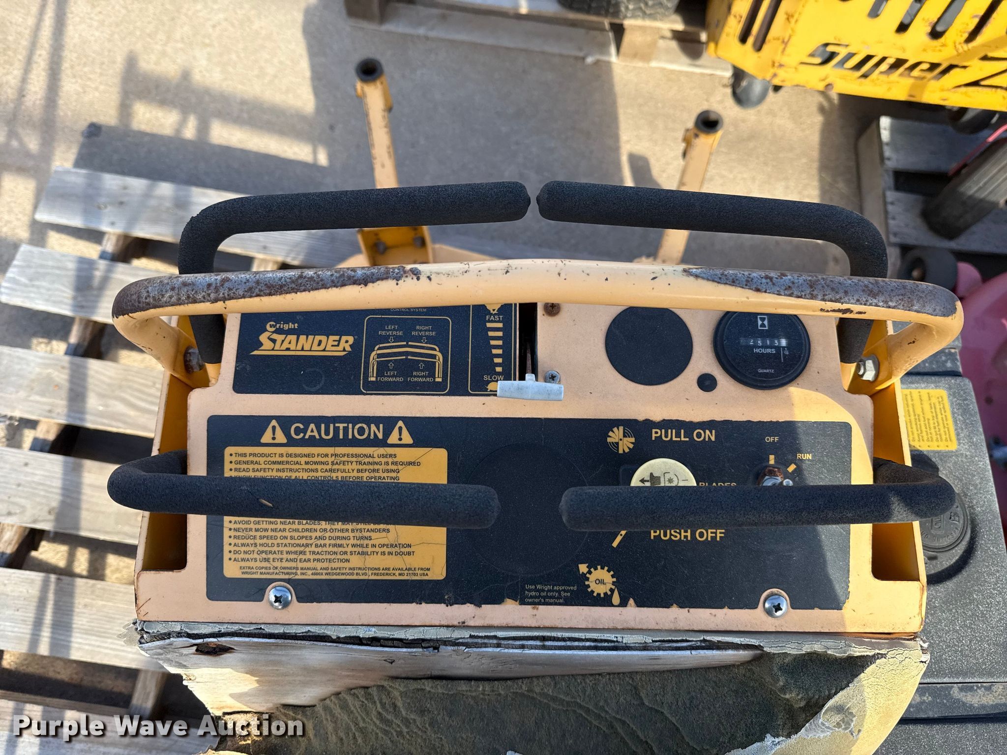 Hustler Super Z ZTR lawn mower. Cutting width: 72". Engine Kawasaki FX850, Displacement: 852 C.I.D, Cylinders: 2, Fuel type: Gas. Transmission Hydrostatic. Chassis PTO. Tires Front: 13X6.50-6, Rear: 24X12.00-12. Notes Dead battery, Parts missing, Flat tires, Front tires removed, Non-operational unit. Wright Stander lawn mower Hours: 2,513 on meter, Cutting width: 36". Engine Kawasaki, Cylinders: 2, Fuel type: Gas. Transmission Hydrostatic. Chassis PTO. Features Stand on. Notes Parts missing Wheels, Engine parts, Non-operational unit. Toro lawn mower Hours: Unknown, Cutting width: 40". Engine Kohler, Cylinders: 2, Fuel type: Gas. Transmission Hydrostatic. Chassis PTO. Features Counter weights. Tires Front: 4.10/3.50-4, Rear: 18X7.50-8. Notes Dead battery, Flat tire, Non-operational unit. Kinnunen Sales & Service. Stillwater, OK 74074
