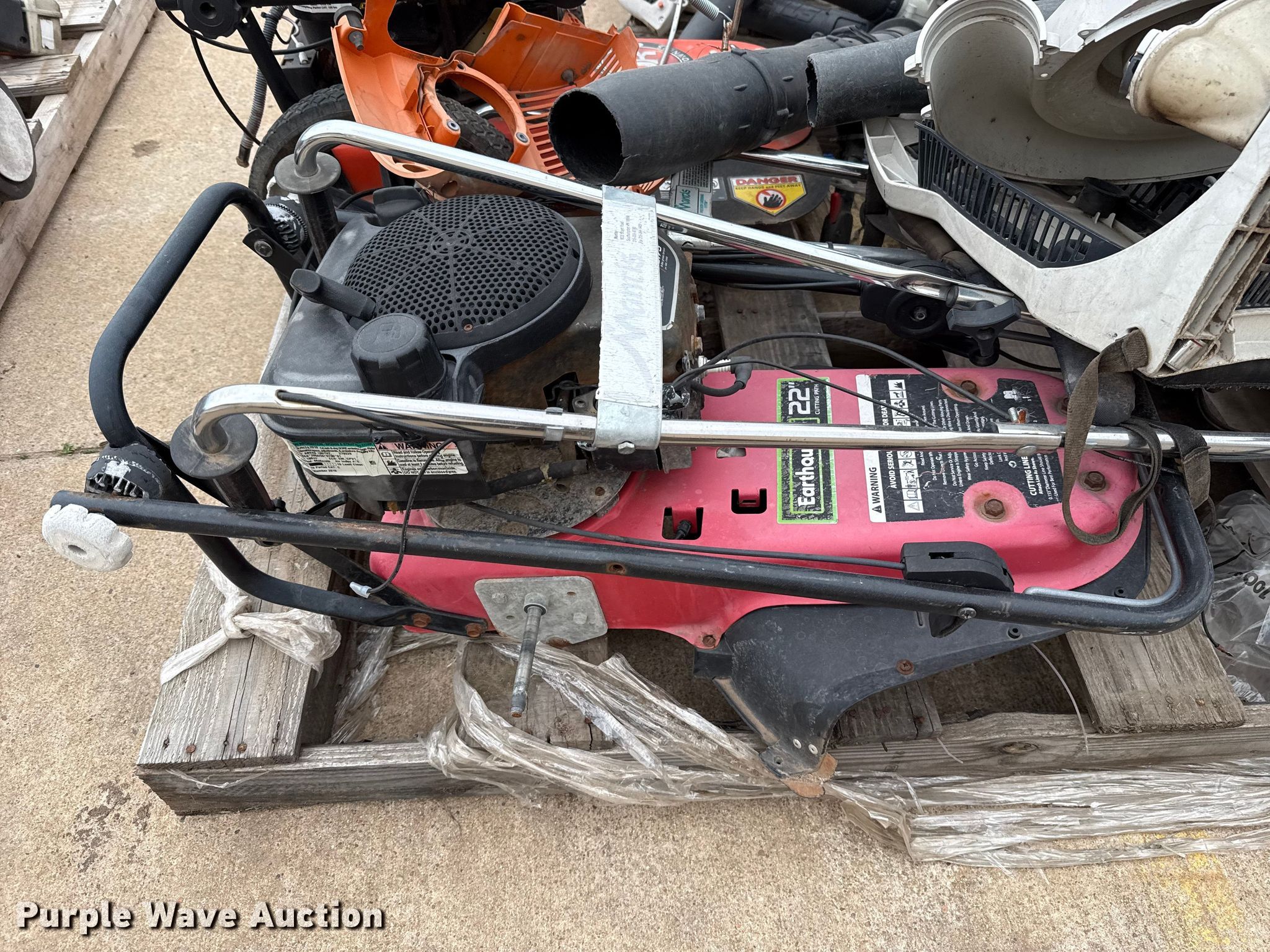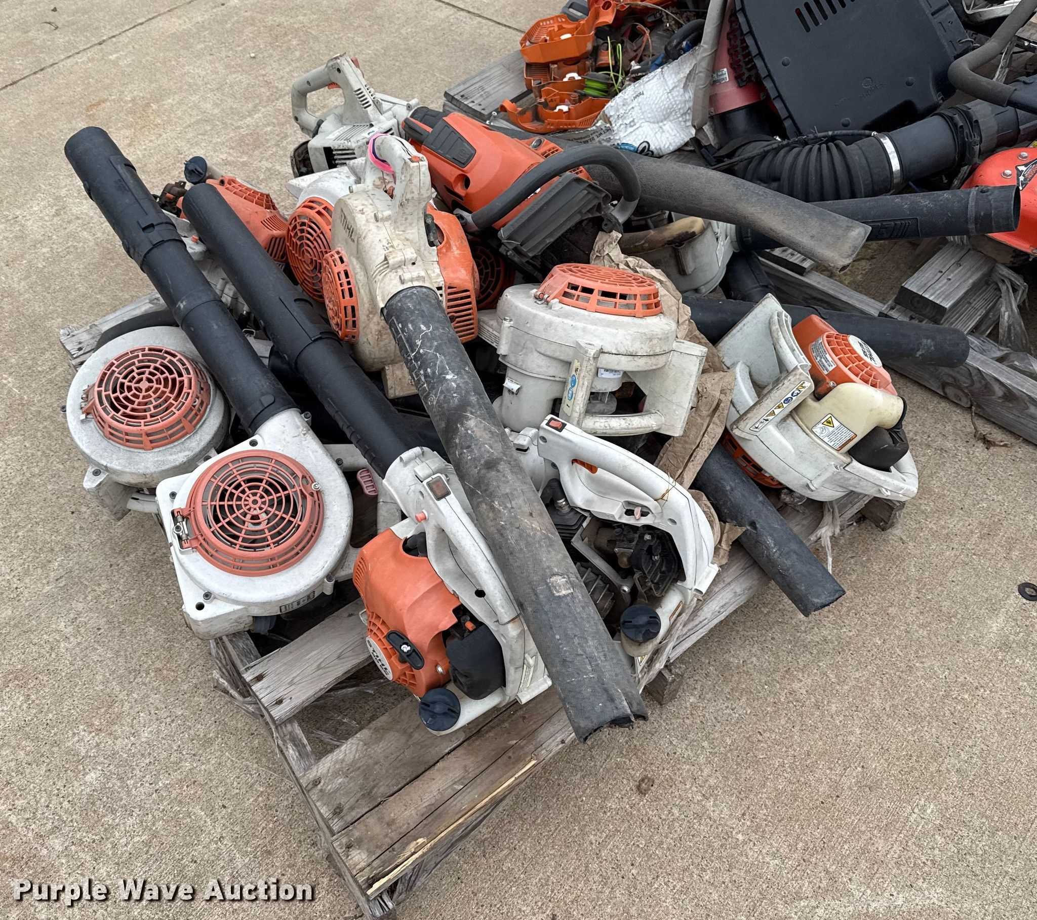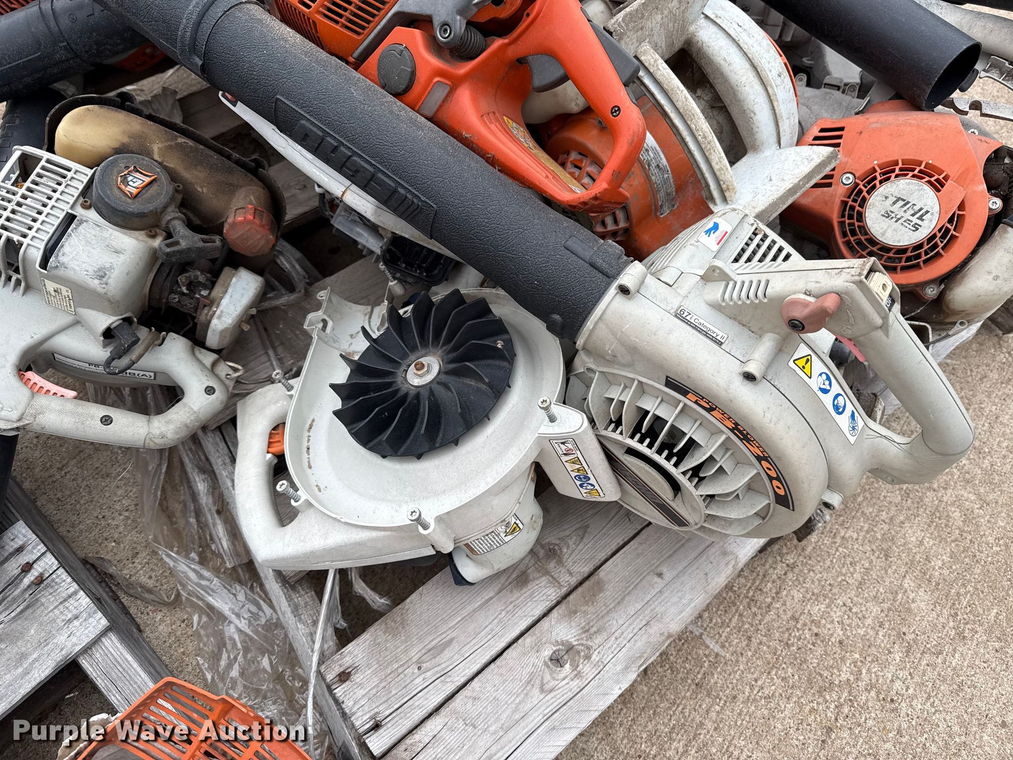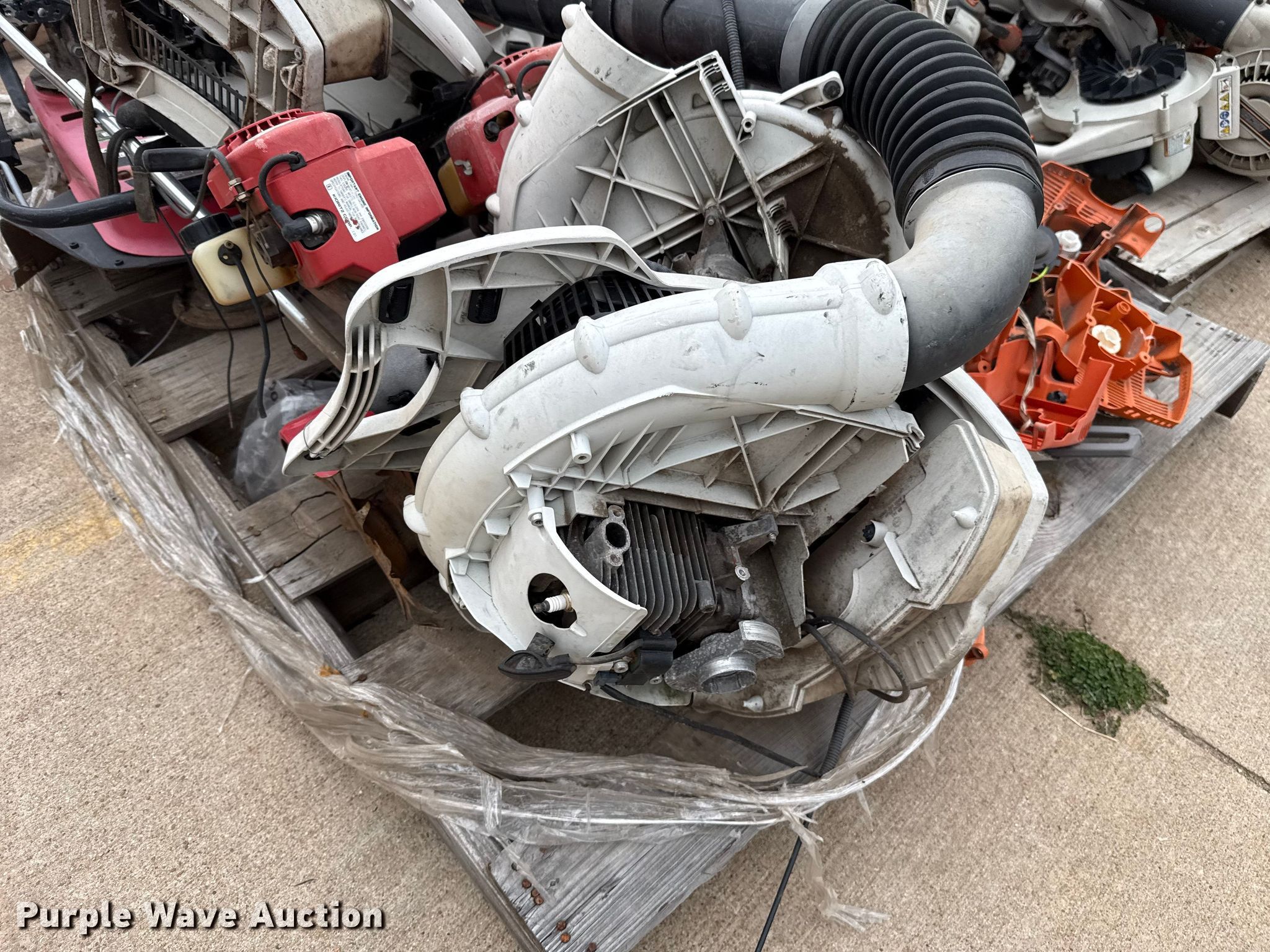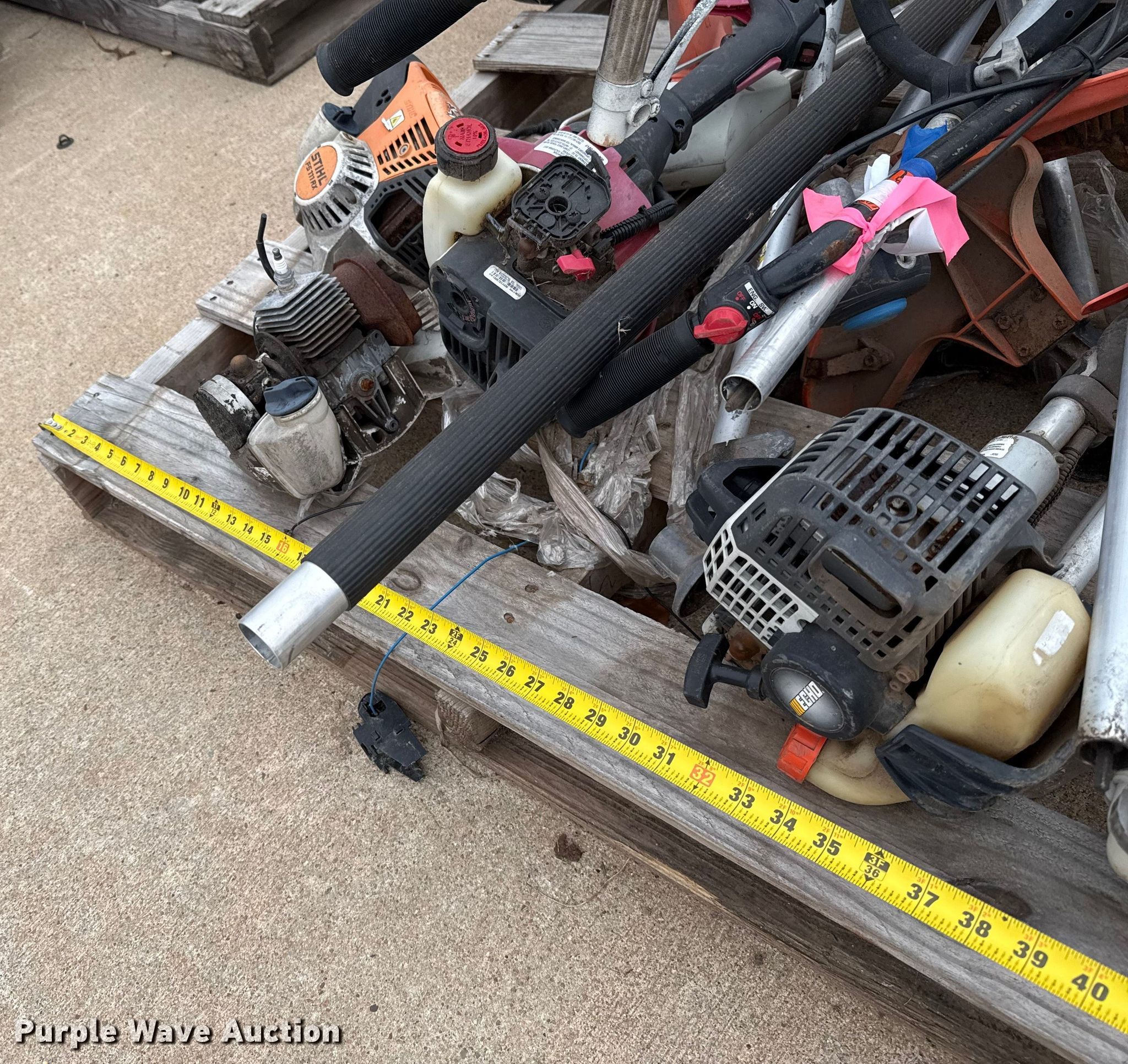 Purple Wave is selling a used Lawn and Garden in Oklahoma. This item is a Yard tools with the following: (2) rototillers, Approximately (7) weed eaters/edgers, (2) walk behind weed eaters, (14) blowers