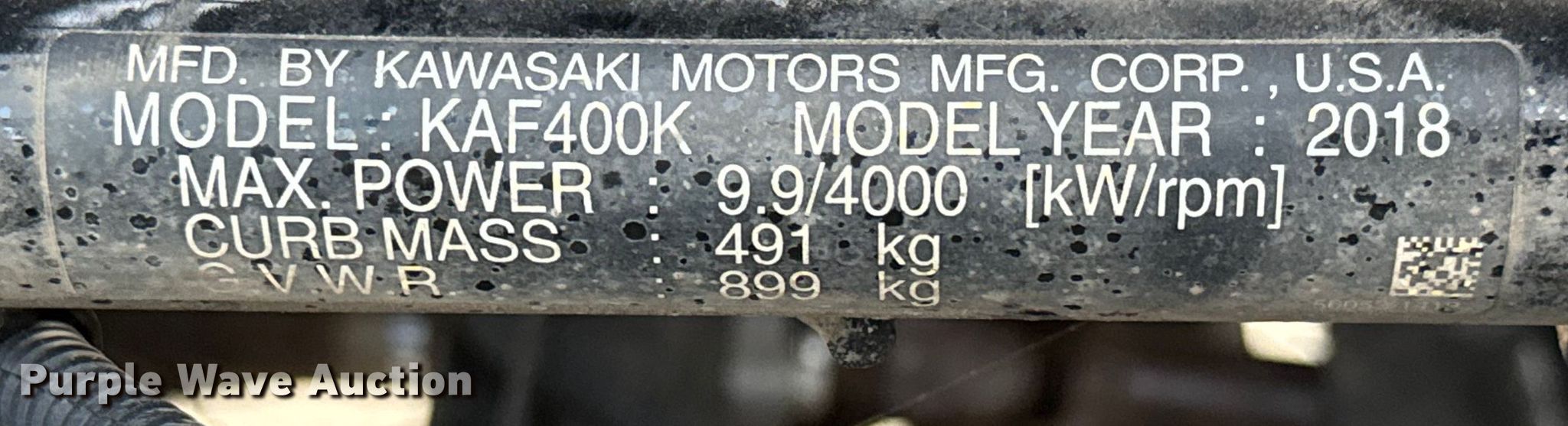 Purple Wave is selling a used Utility Vehicle in Kansas. This item is a 2018 Kawasaki Mule SX utility vehicle with the following: Hours: 352 on meter, VIN: JK1AFEK14JB504606
