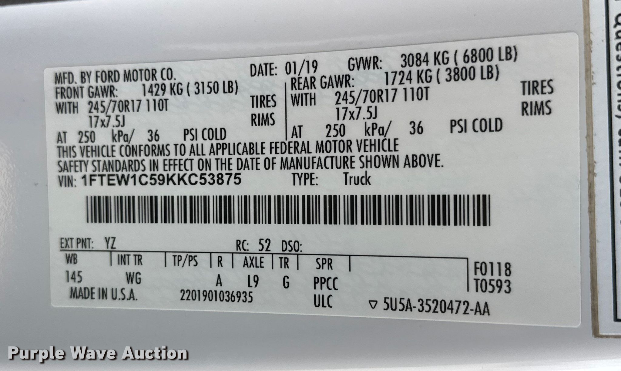 Purple Wave is selling a used 1/2 Ton Pickup or Van in Kansas. This item is a 2019 Ford F150 Crew Cab pickup truck with the following: Miles: 128,660 on odometer, Hours: 7,156 on meter, VIN: 1FTEW1C59KKC53875, Unit #: 02.737
