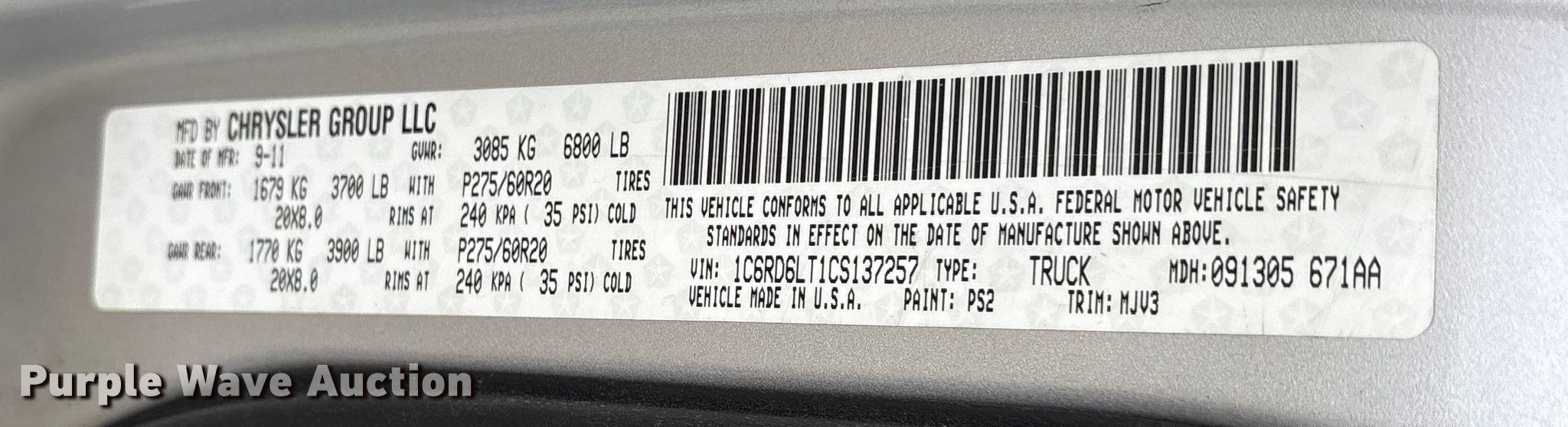 Purple Wave is selling a used 1/2 Ton Pickup or Van in Louisiana. This item is a 2012 Dodge Ram 1500 Crew Cab pickup truck with the following: Miles: 214,128 on odometer, Miles or hours may vary, unit still in use, VIN: 1C6RD6LT1CS137257