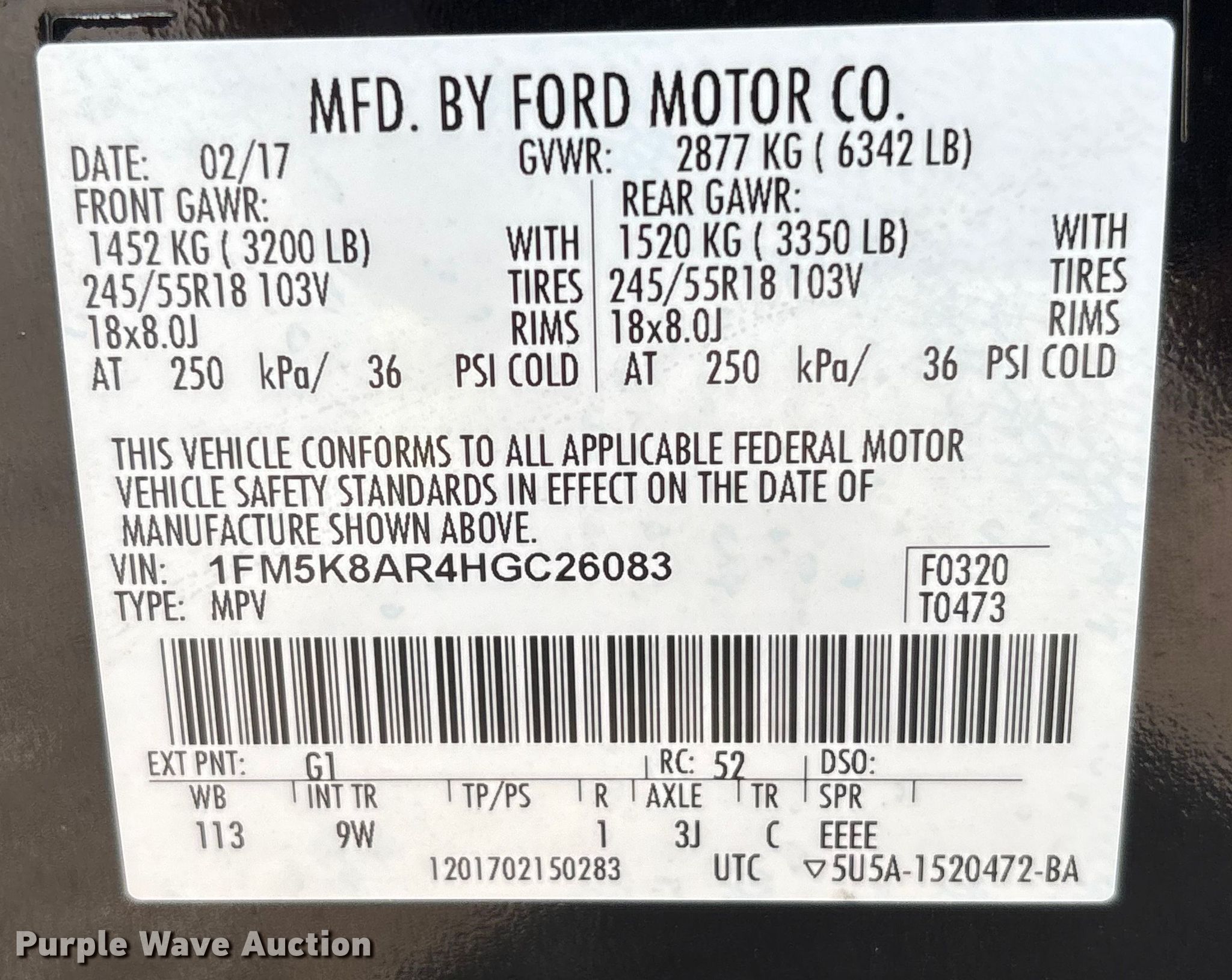Purple Wave is selling a used Passenger Vehicle in Texas. This item is a 2017 Ford Explorer Police Interceptor SUV with the following: Miles: 55,097 on odometer, VIN: 1FM5K8AR4HGC26083