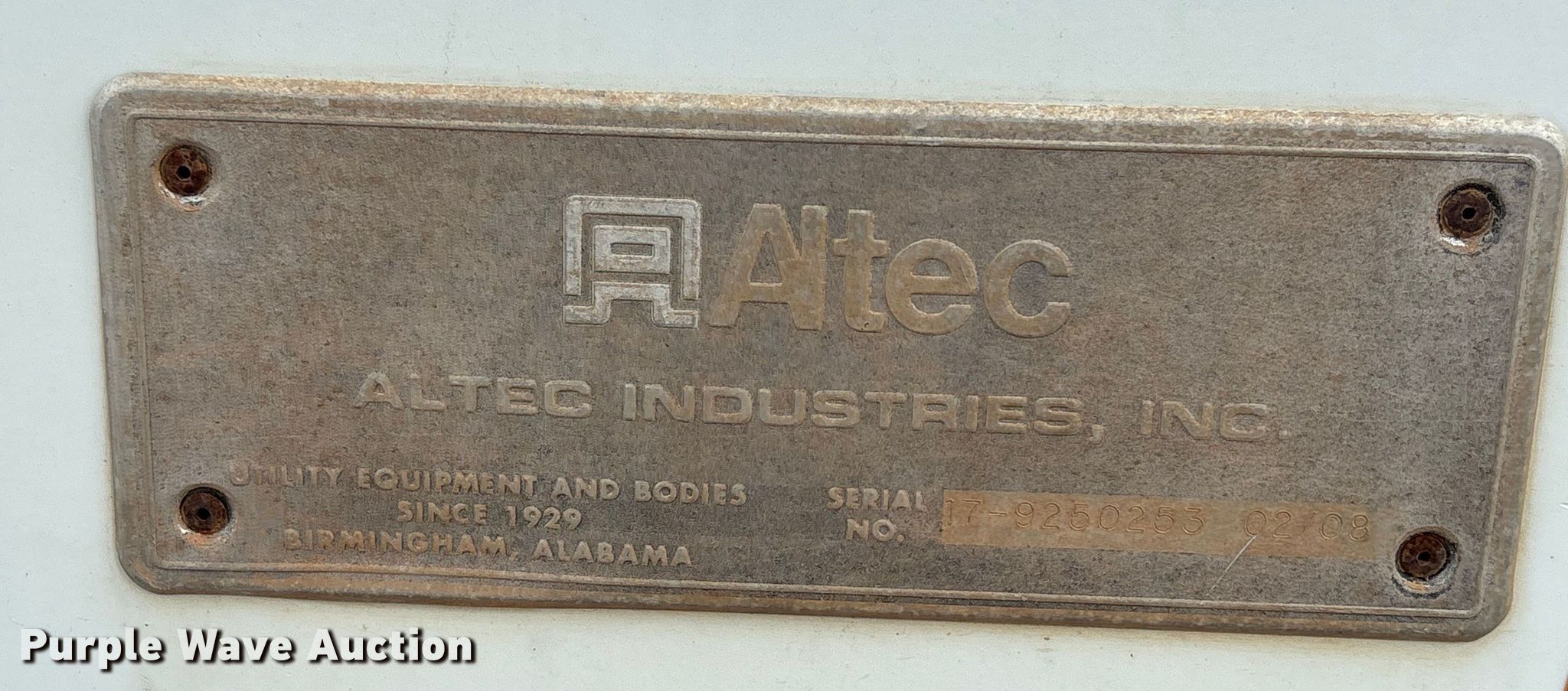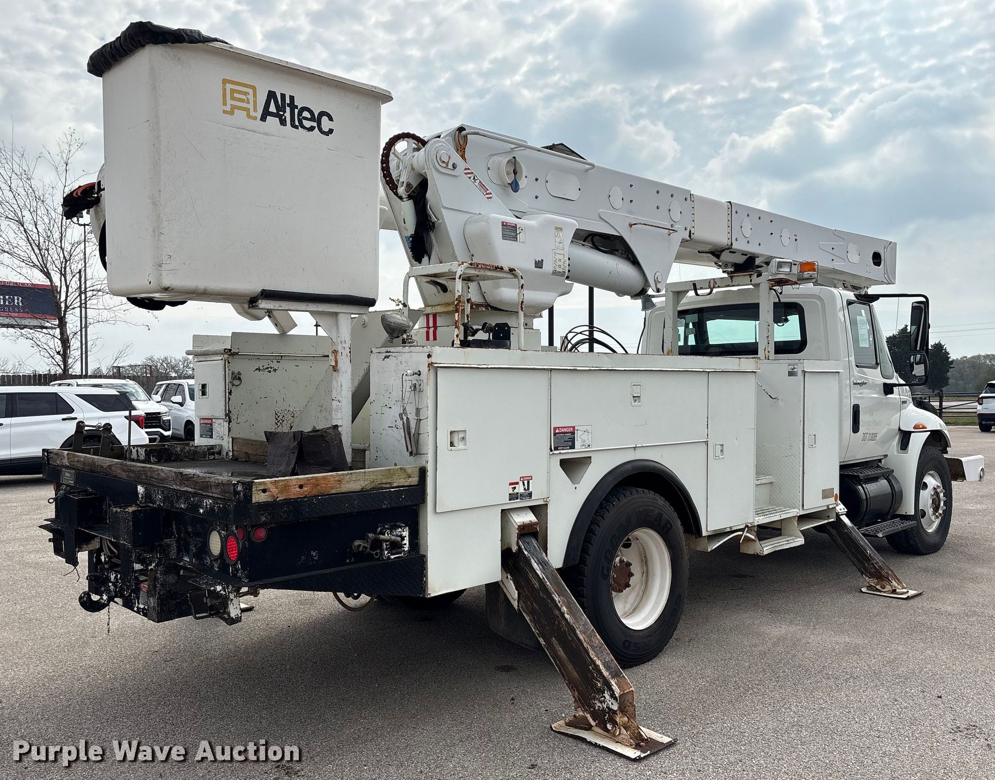2008 International DuraStar 4300 bucket truck. Miles: 119,684 on odometer, Hours: 10,401 on meter, VIN: 1HTMMAAN38H666274. Engine International MaxxForce DT, Displacement: 7.6L, Cylinders: 6, Fuel type: Diesel. Transmission Allison, Automatic. Chassis Axles: Single, Differential lock: Inter-axle, Suspension: Spring, Brakes: Air, PTO, GVWR: 33,000 lbs. Interior AC, Heat, Cruise control, Auxiliary controls, Brake controller. Features Bed Altec, Serial: 17-9250253 02/08, Length: 17', Width: 7' 9", Height: 3' 10", Boom Altec, Boom type: Articulating, Insulated, Man basket, Boom controls Ground, Platform/ basket.. Tires Front: 315/80R22.5, Rear: 11R22.5, Brands: Michelin, Goodyear. Notes Possible AC issues, may need charged, Unknown operating condition of boom Possible hydraulic issues, leaks. Texas bonded title. Seller is a Texas licensed motor vehicle dealer. The buyer may be required to pay sales tax and/or registration fees to the dealer prior to taking possession. Buyers may be required to provide identification to the licensed dealer to comply with state laws. Title will be assigned and distributed by the dealer. Please contact the seller for distribution questions. Chiefs Pursuit Surplus. Hempstead, TX 77445