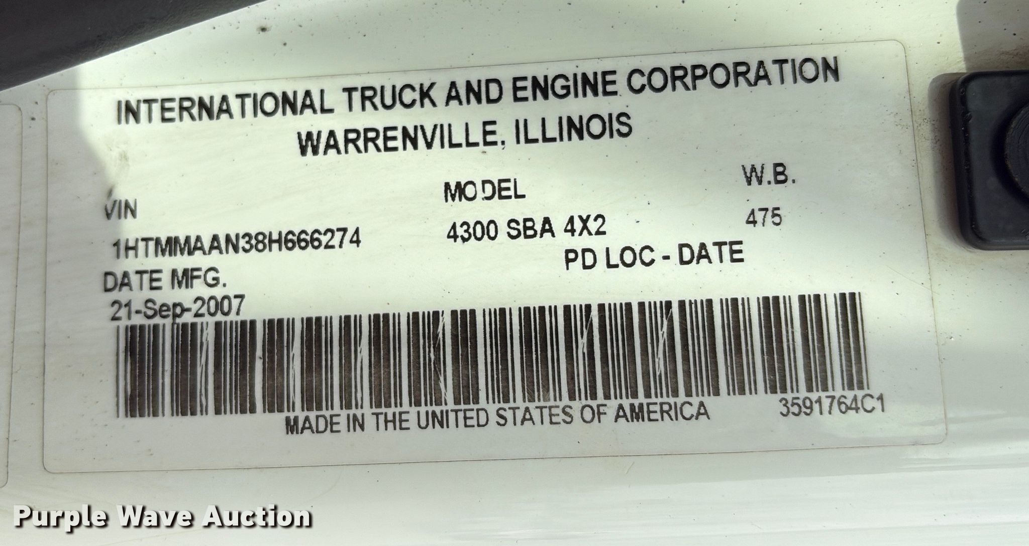 Take a look at this used 2008 International DuraStar 4300 bucket truck being sold on February 11th, 2026 in the Wednesday February 11 Vehicles and Equipment Auction made by International. Take a look at all of the item information below or take a look at similar auctions for Construction Trucks.