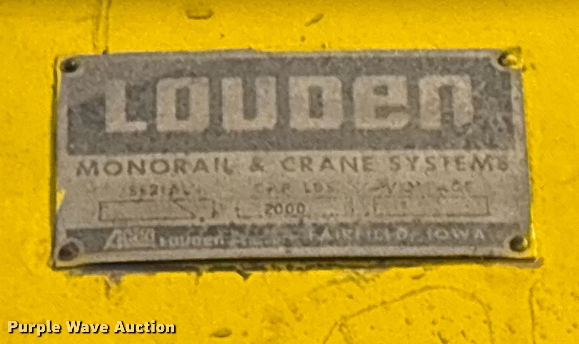 Purple Wave is selling a used Overhead or Straddle Crane in Oklahoma. This item is a Louden jib crane with the following: Overall, Length: 11' 9", Width: 36", Height: 9' 10"