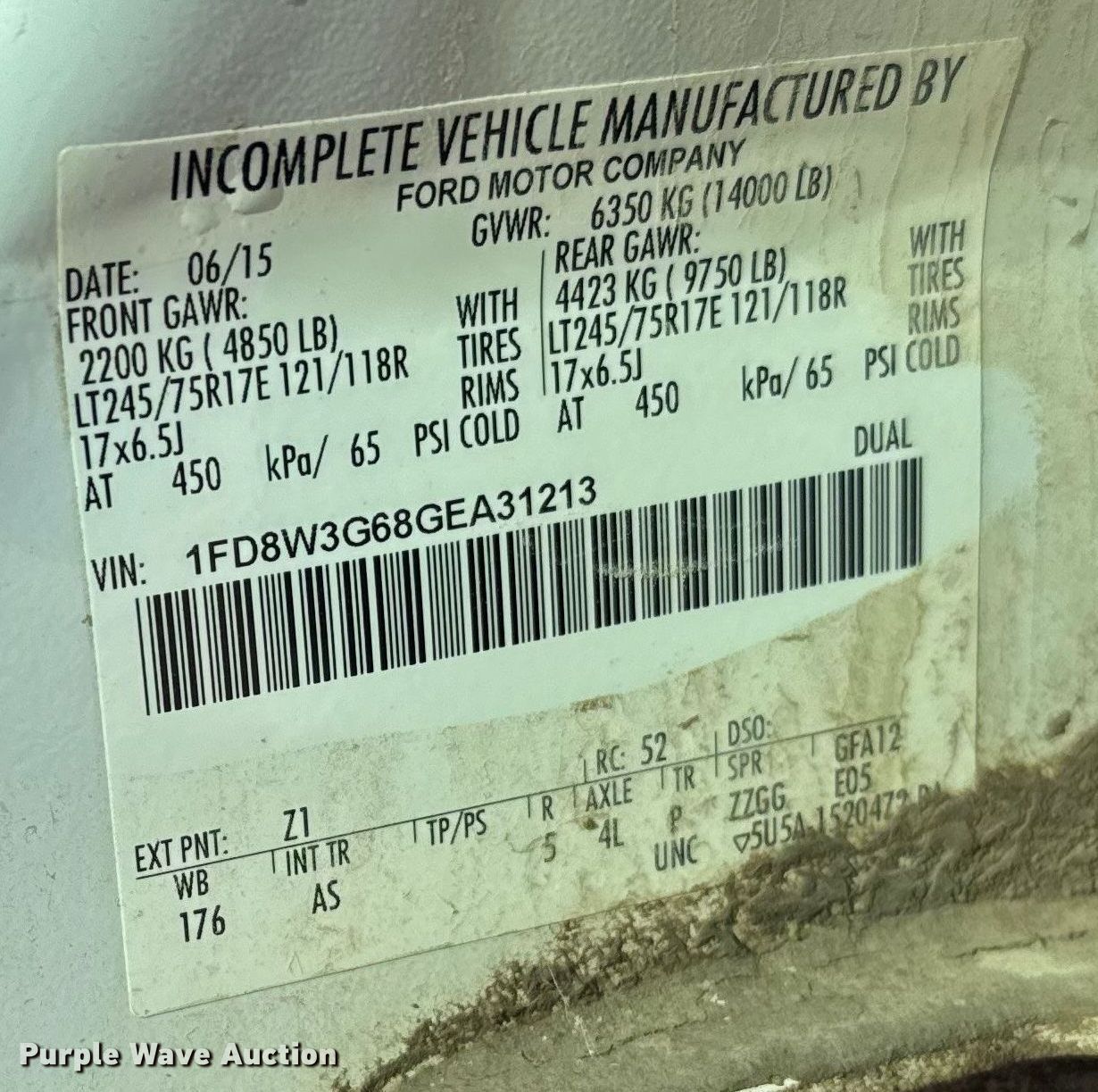 2016 Ford F350 Super Duty XL Crew Cab utility bed pickup truck. Miles: 176,551 on odometer, VIN: 1FD8W3G68GEA31213. Engine Displacement: 6.2L, Cylinders: 8, Fuel type: Gas. Transmission Automatic. Interior AC, Heat, Power windows, Power locks, Cruise control. Features Bed Utility bed, Length: 9', Width: 94". Tires Size: 245/75R17. Notes Fuel tank included, Dash warning indicator: Check engine. Kansas title. Title distribution may be delayed up to 30 days from verification of funds. Pachta excavating LLC. Cuba, KS 66940