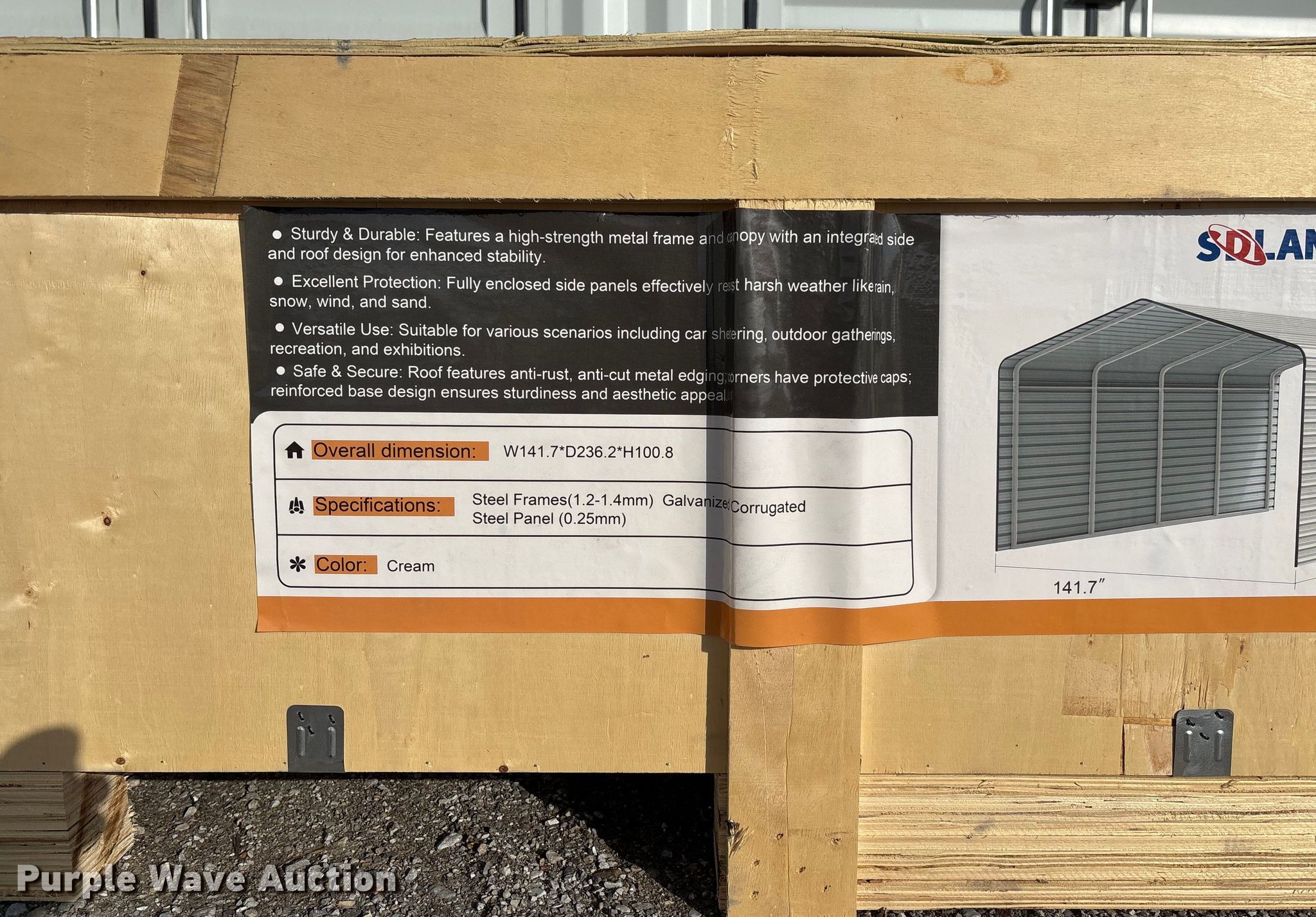 Purple Wave is selling a used Building Materials in Oklahoma. This item is a 2025 SDLANCH SDLC1220 car port with the following: Approx. 20' L x 12' W