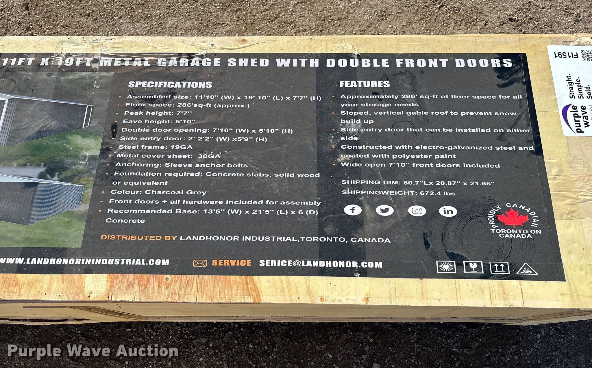 Purple Wave is selling a used Building Materials in Oklahoma. This item is a LandHonor LHR-MS1119 garage with the following: Double Doors, Approx. 286 Sq. ft, 11' 10" W x 19' 10" L x 7' 7" H