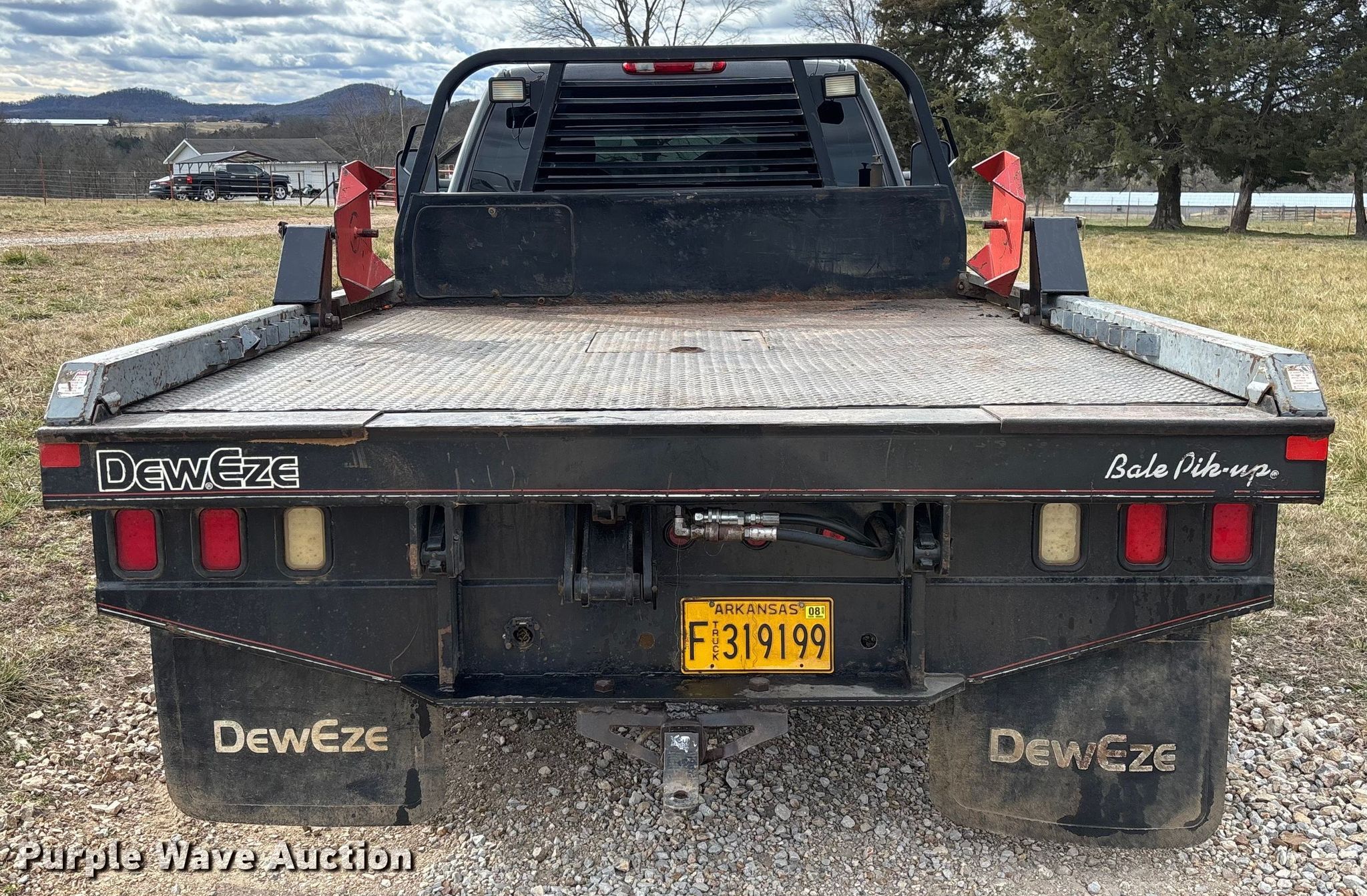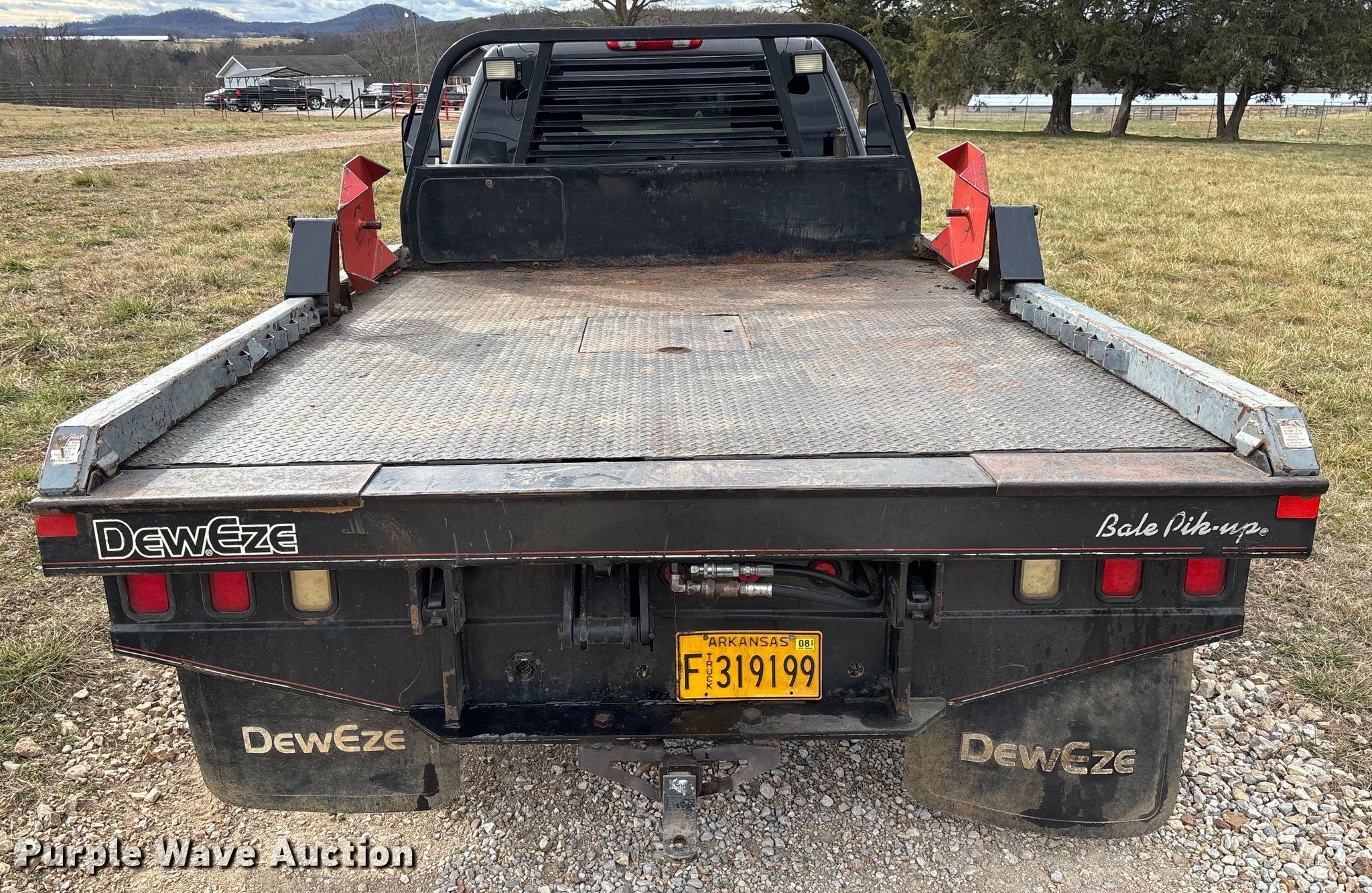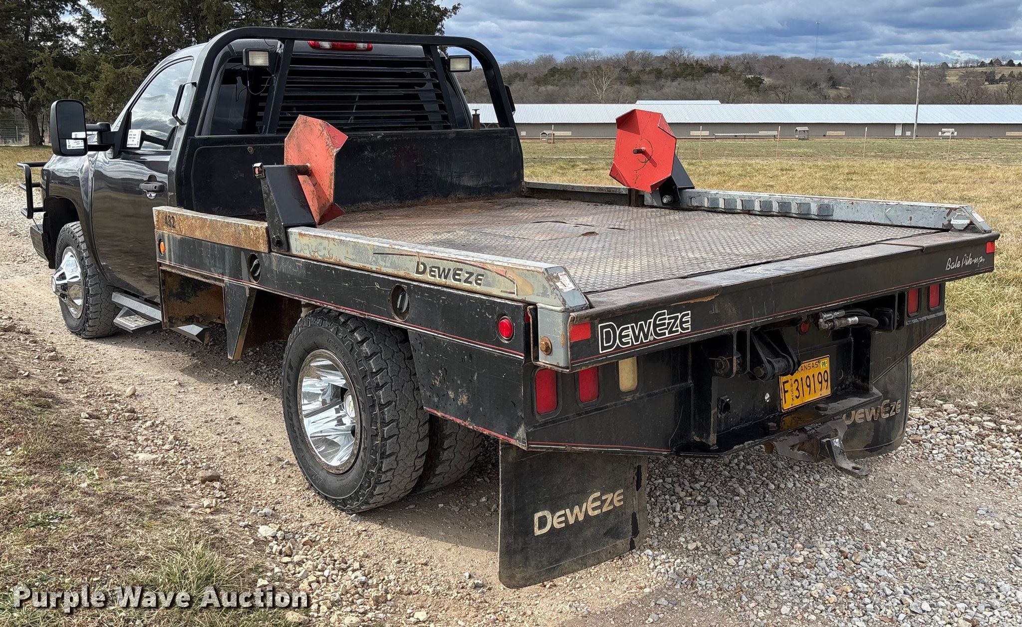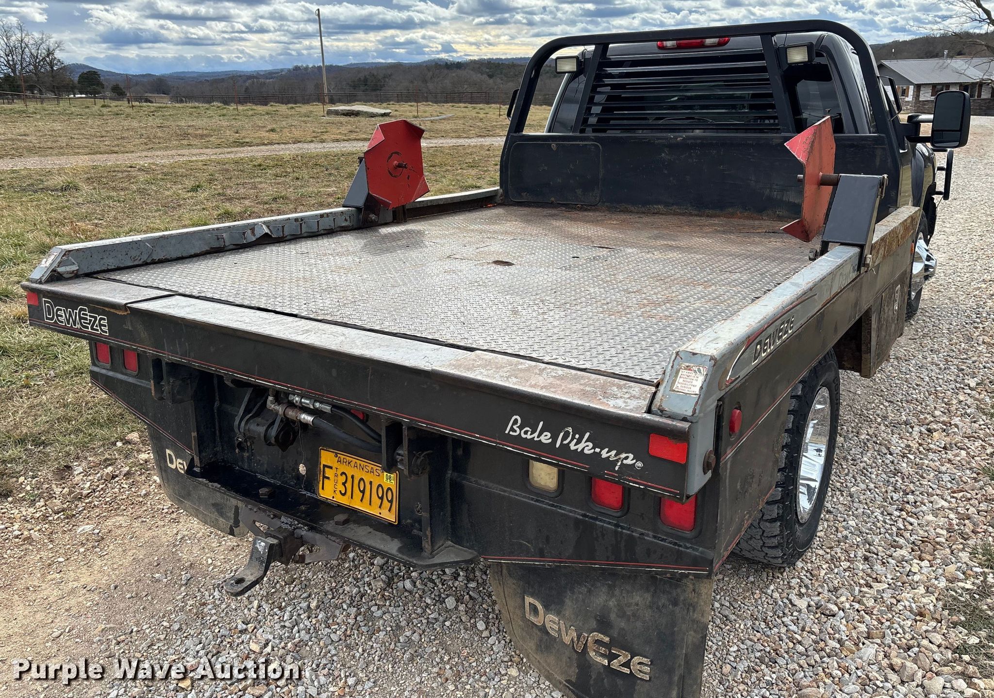 2009 Chevrolet Silverado 3500HD bale bed pickup truck. Miles: 238,740 on odometer, VIN: 1GBJK84679E114139. Engine Displacement: 6.6L, Cylinders: 8, Fuel type: Diesel. Transmission Automatic, Four wheel drive. Interior AC, Heat, Seat: Power driver, Heated mirrors, Power windows, Power locks, Cruise control, Brake controller. Features Bed Hydraulic bale bed, DewEze Bale Pik-up, Length: 9', Width: 7' 8", Bale arm, Hitch: Gooseneck. Tires Size: 235/80R17. Notes Dash warning indicator: ABS, VATS, Frame damaged, cracked Unit must be towed or hauled. Arkansas title. Title distribution may be delayed up to 14 days from verification of funds. Berryville, AR 72616