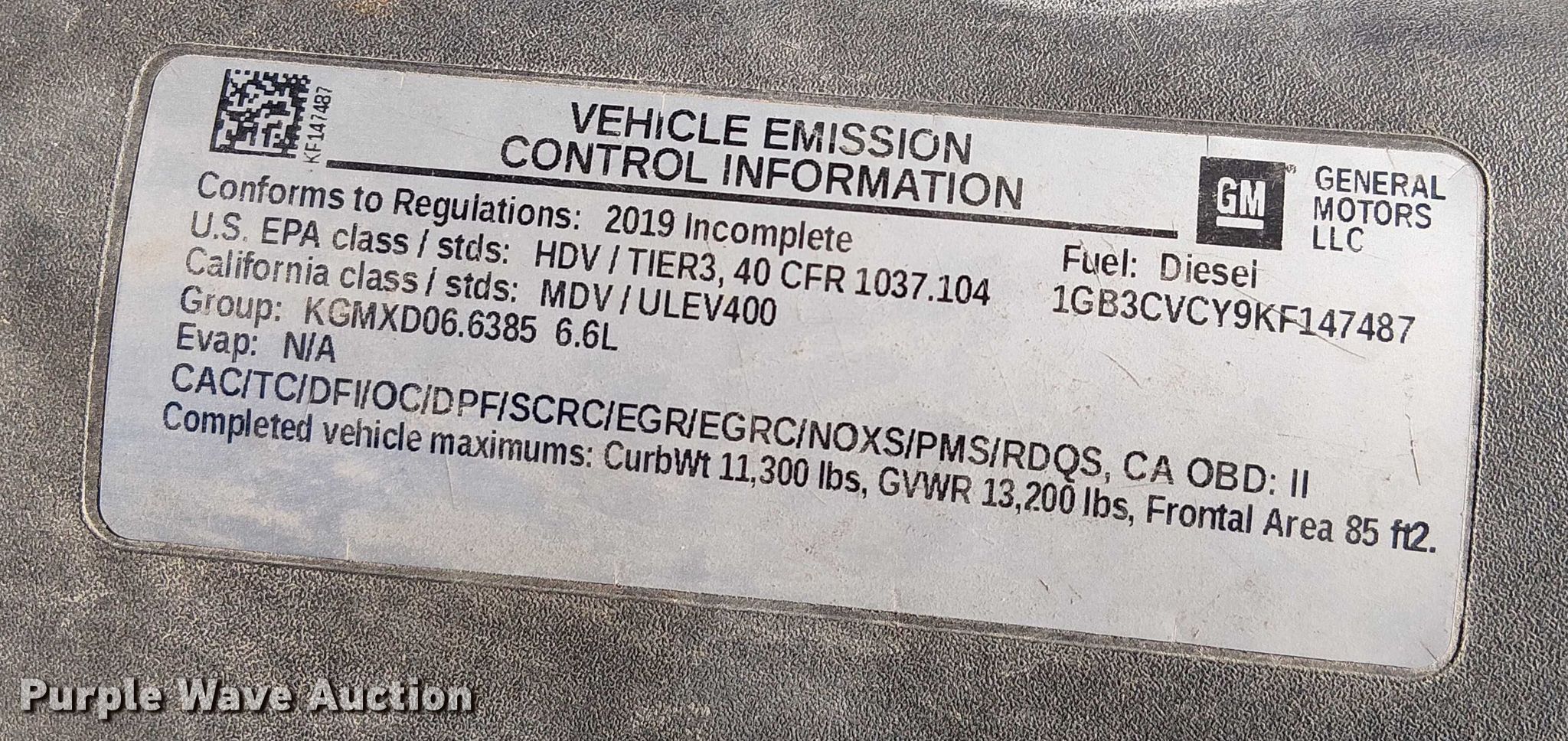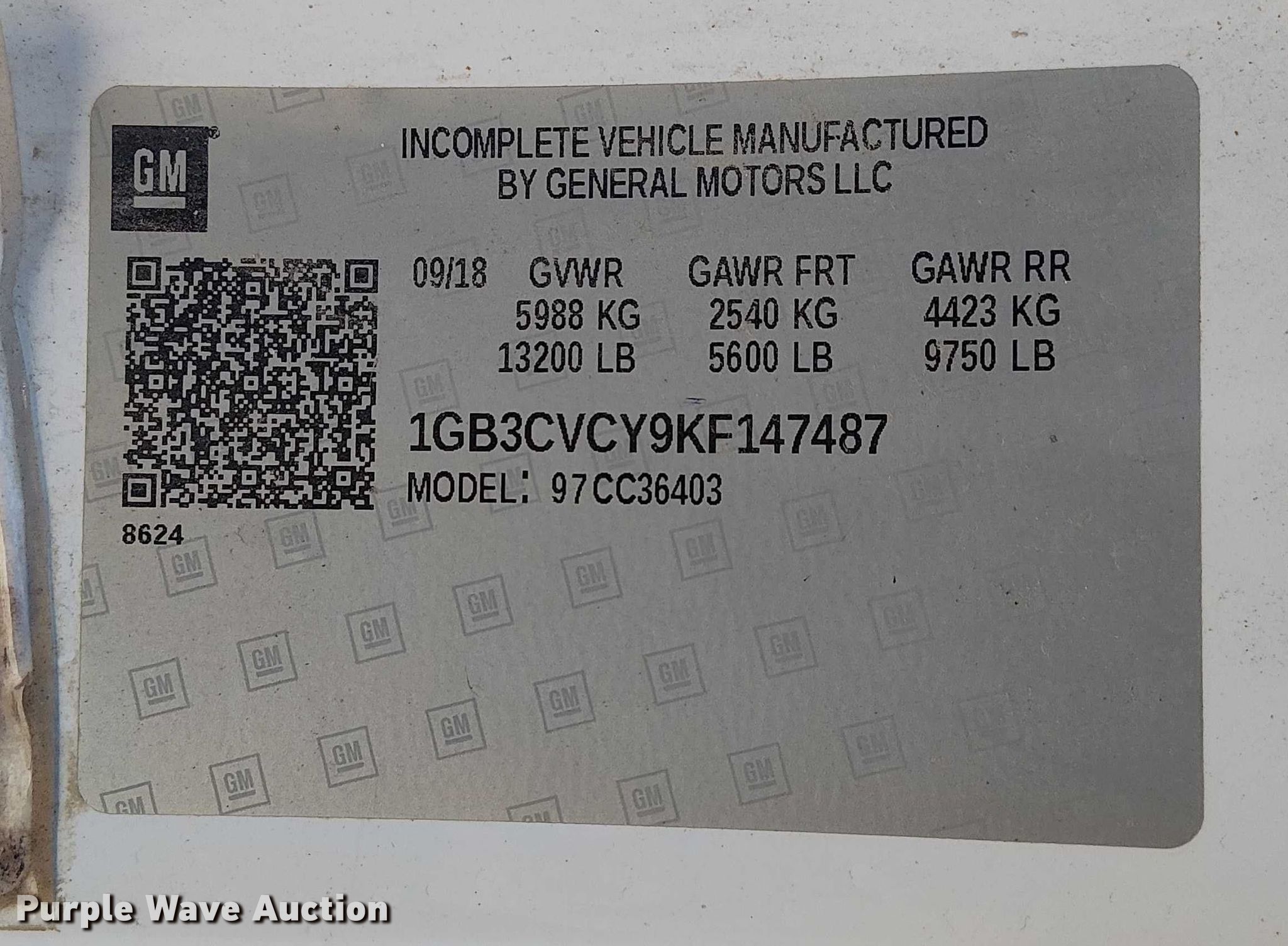 - VIN: 1GB3CVCY9KF147487
