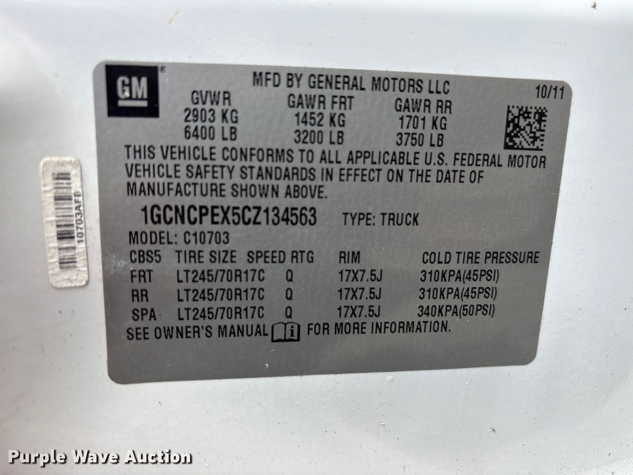 • VIN: 1GCNCPEX5CZ134563