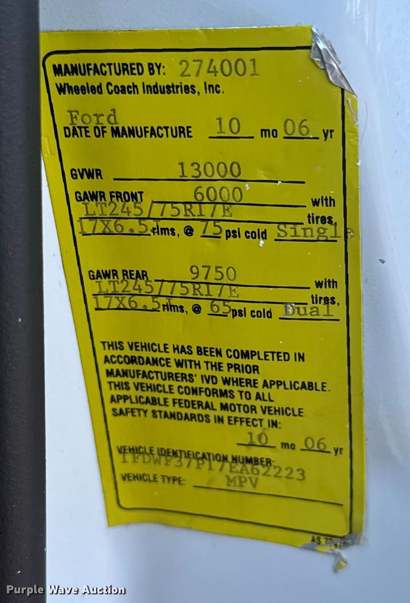 - VIN: 1FDWF37P17EA62223