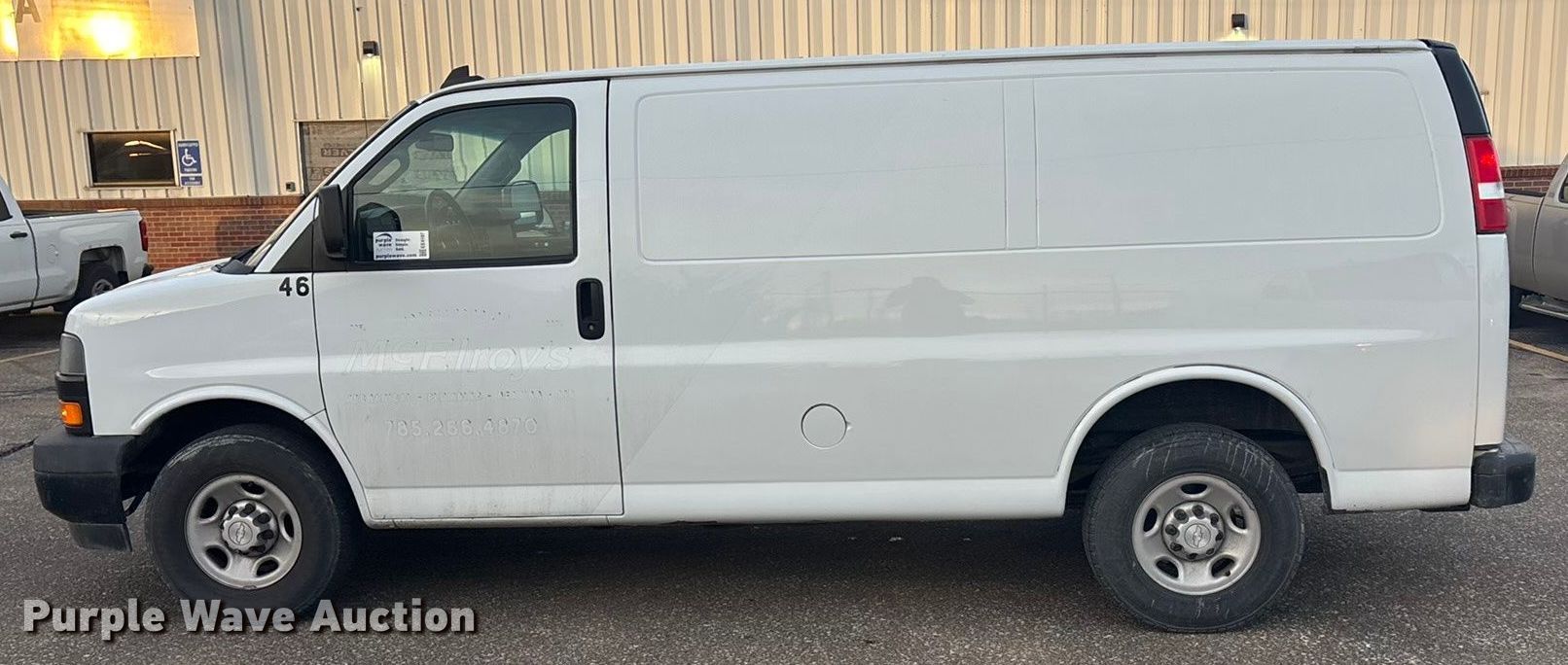 2019 Chevrolet Express 2500 van. Miles: 145,326 on odometer, VIN: 1GCWGAFG4K1253769. Engine Displacement: 6.0L, Cylinders: 8, Fuel type: Gas. Transmission Automatic. Interior AC, Heat, Power windows, Cruise control. Tires Size: 245/75R16. Notes Dash warning indicator: TPMS. Kansas title. Title distribution may be delayed up to 14 days from verification of funds. McElroy's Inc.. Topeka, KS 66611