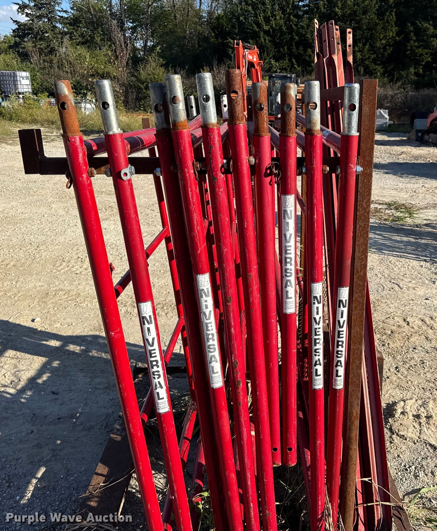 Purple Wave is selling a used Tools in Missouri. This item is a Universal Manufacturing scaffolding with the following: (21) uprights, (16) cross braces