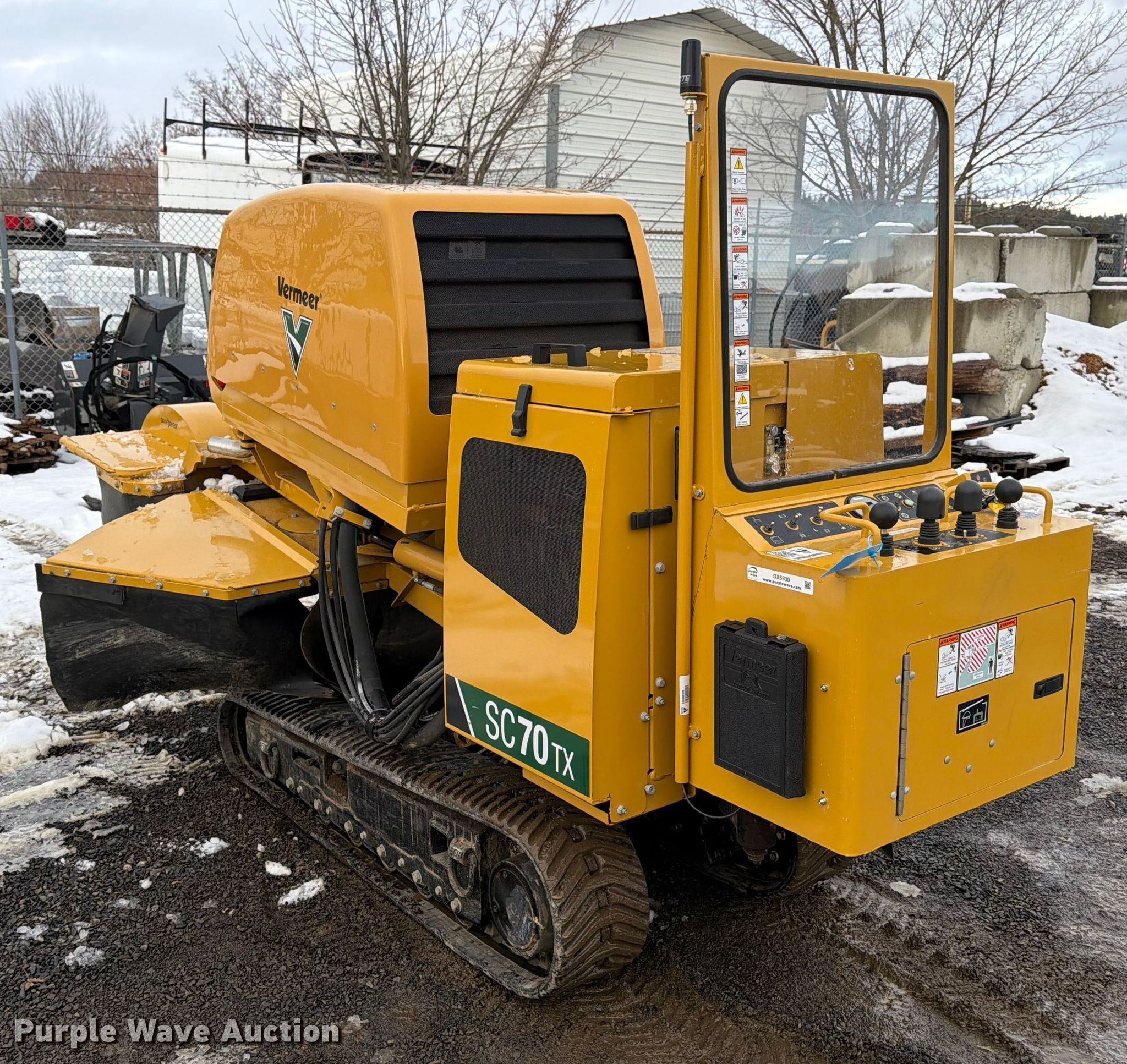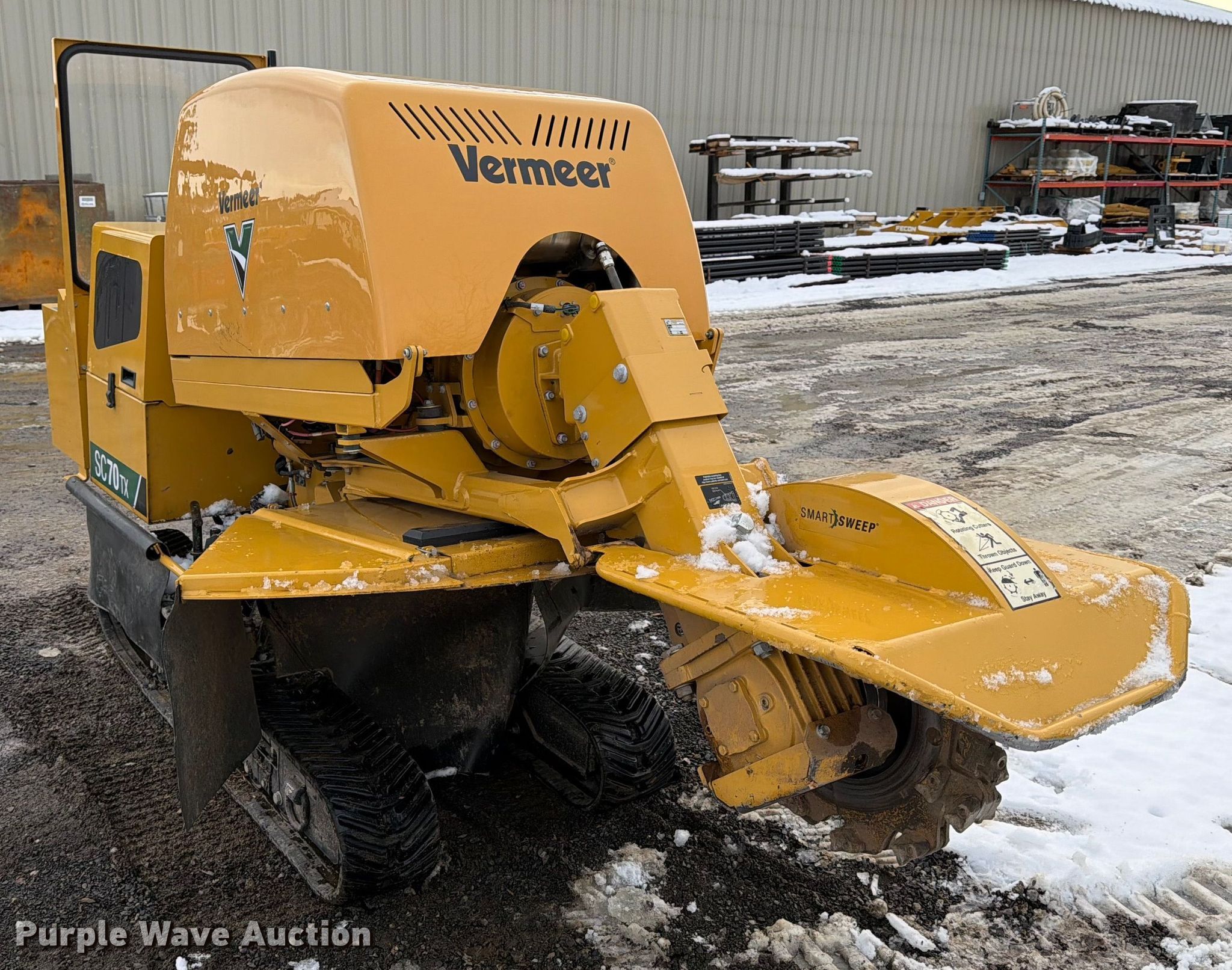 Take a look at this used 2024 Vermeer SC70TX stump grinder being sold on February 12th, 2026 in the Thursday February 12 Construction Equipment Auction made by Vermeer. Take a look at all of the item information below or take a look at similar auctions for Attachments and Parts.