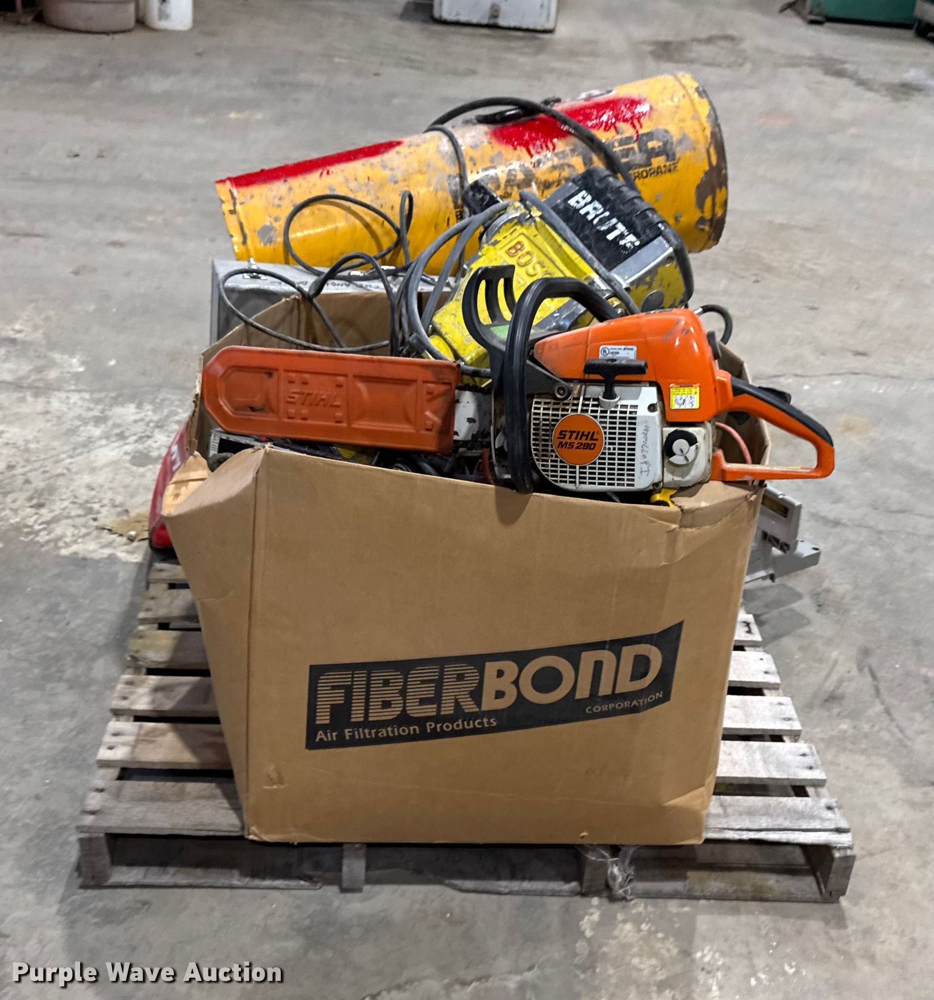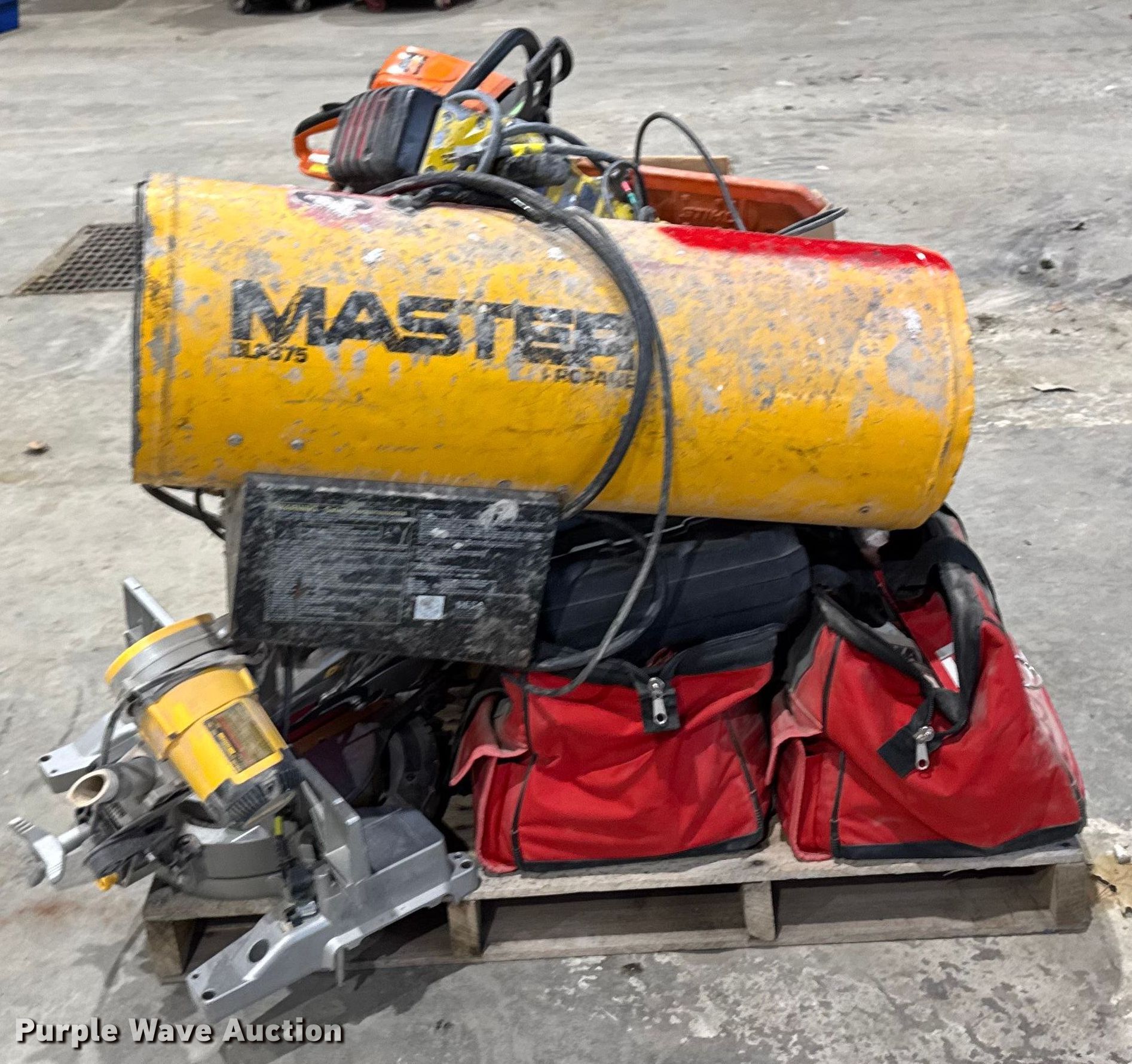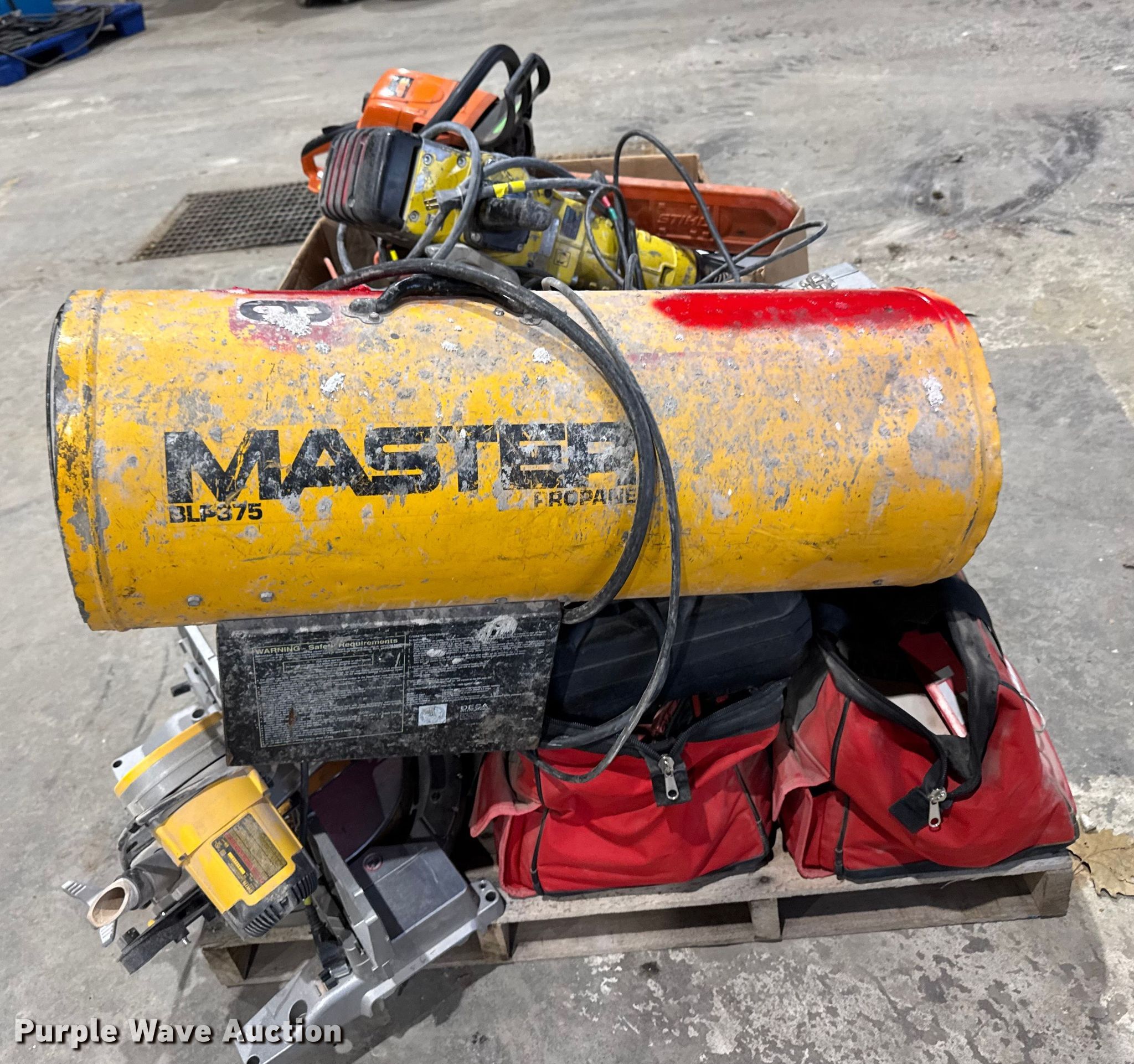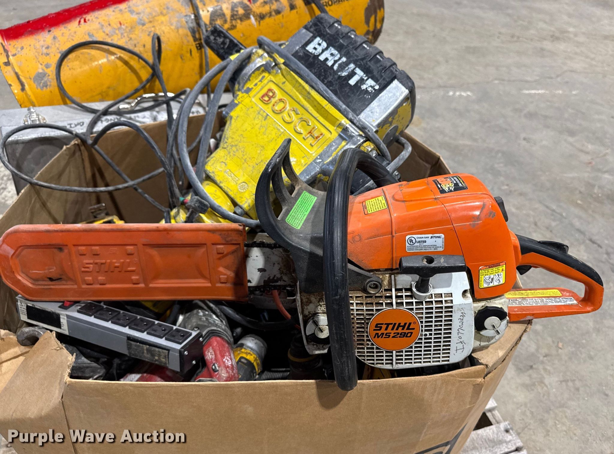 Purple Wave is selling a used Tools in Iowa. This item is a Tools with the following: Hand tools, Drills, Saws, Jack hammer, LP heater